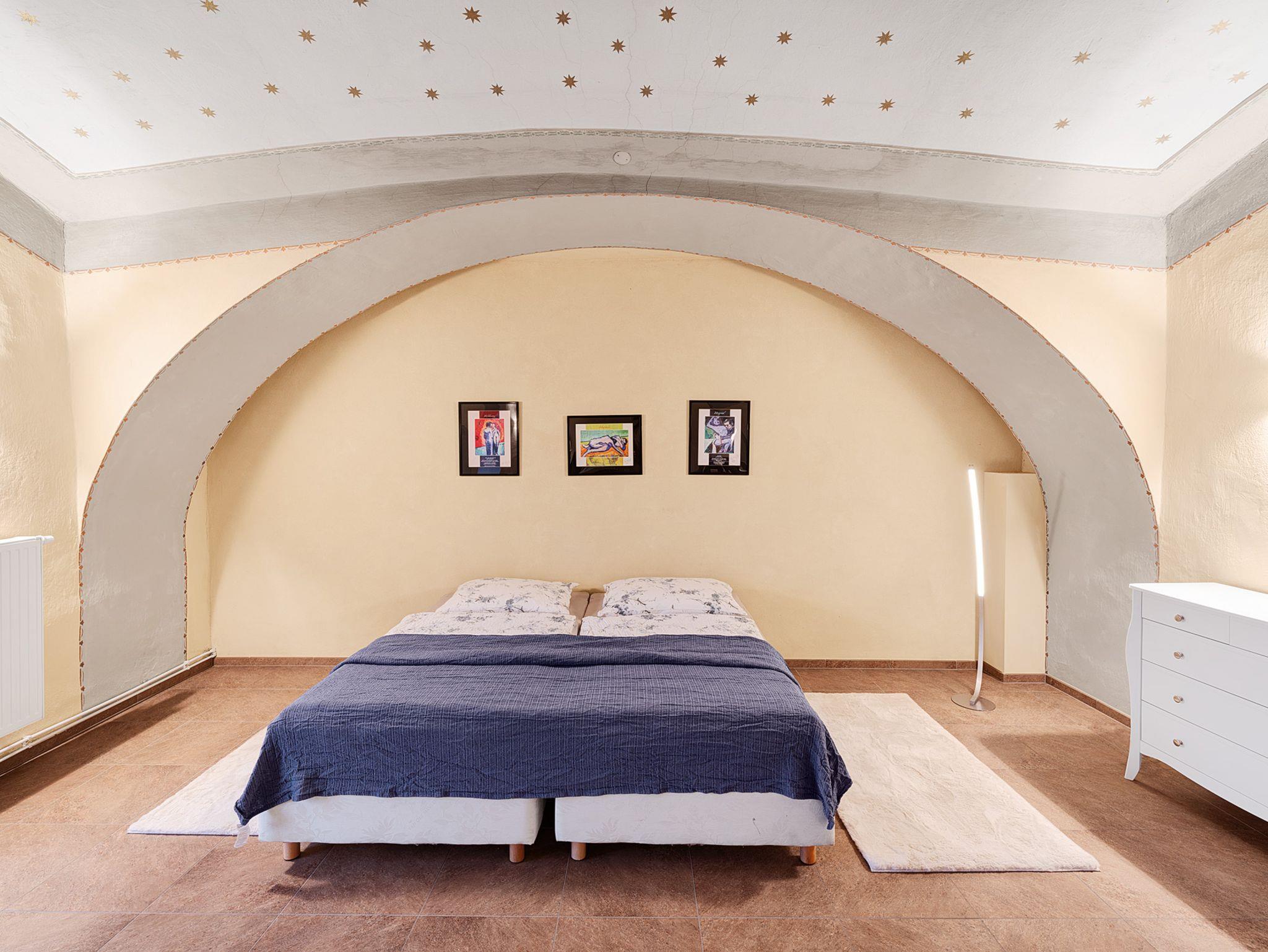 Wenn Ihr Urlaub nicht nur wunderschön, sondern einzigartig werden soll, ziehen Sie doch auch einmal unser außergewöhnliches Apartment im ersten Stock in Betracht, eine ehemalige Kapelle mit rund 150 m² Wohnfläche. Der Sternenhimmel im großzügigen Wohnschlafraum schenkt Ihnen schon morgens beim Erwachen ein luxuriöses Lebensgefühl und viele Bögen und Nischen, sowie antike Einrichtungsgegenstände vermitteln ein einzigartiges Wohnambiente. Eine mit allen Annehmlichkeiten ausgestattete Küche ladet ein zu einem genussvollen Frühstück am runden Tisch. Die restlichen Räumlichkeiten beinhalten ein Schlafzimmer mit Doppelbett, ein Bad mit Dusche und WC sowie ein großzügiger Vorraum mit altem Mobiliar. Ein Wohlfühl-Urlaub in unverwechselbarer Atmosphäre, das bekommen Sie nur bei uns.