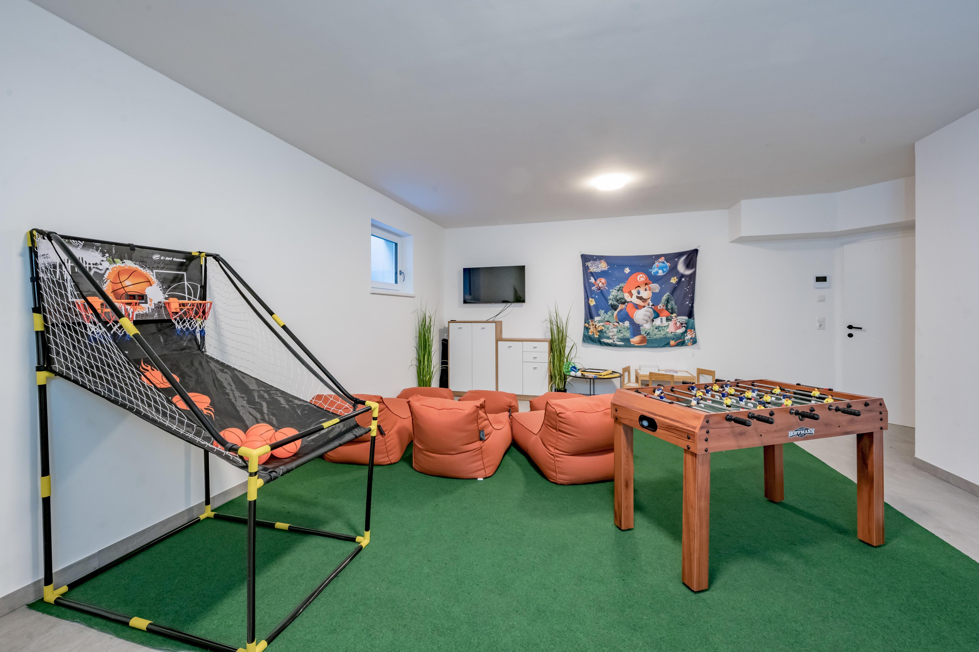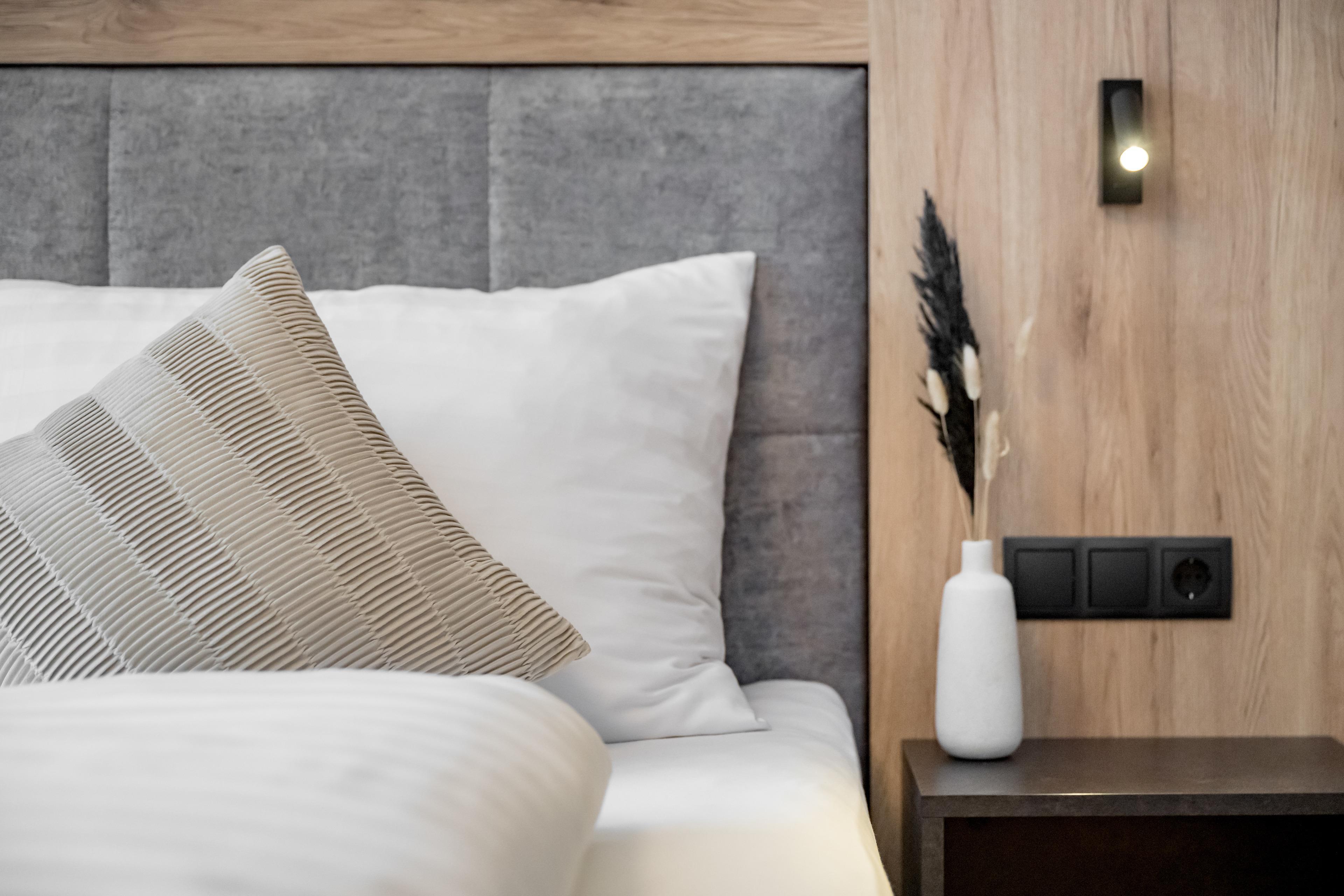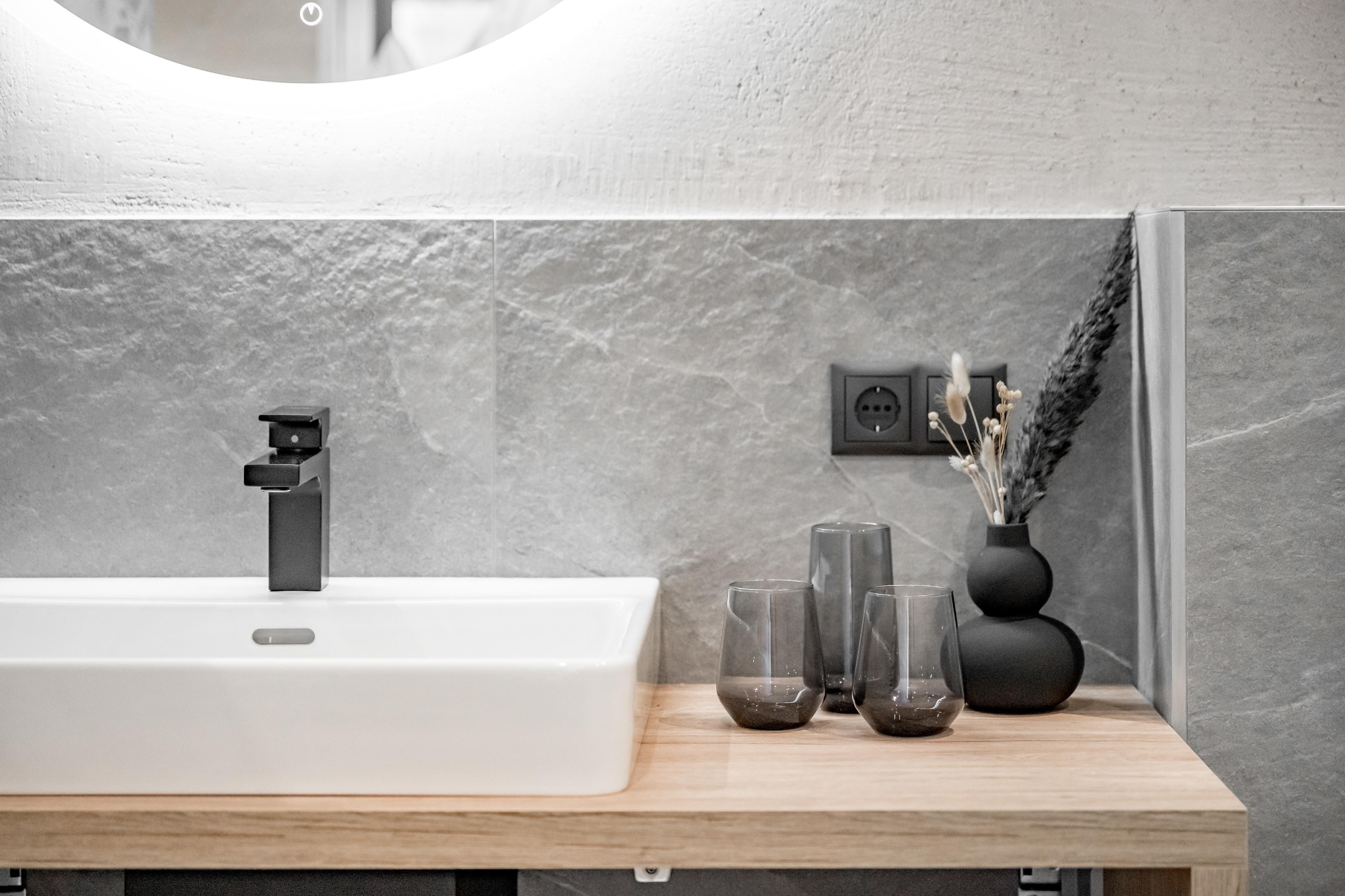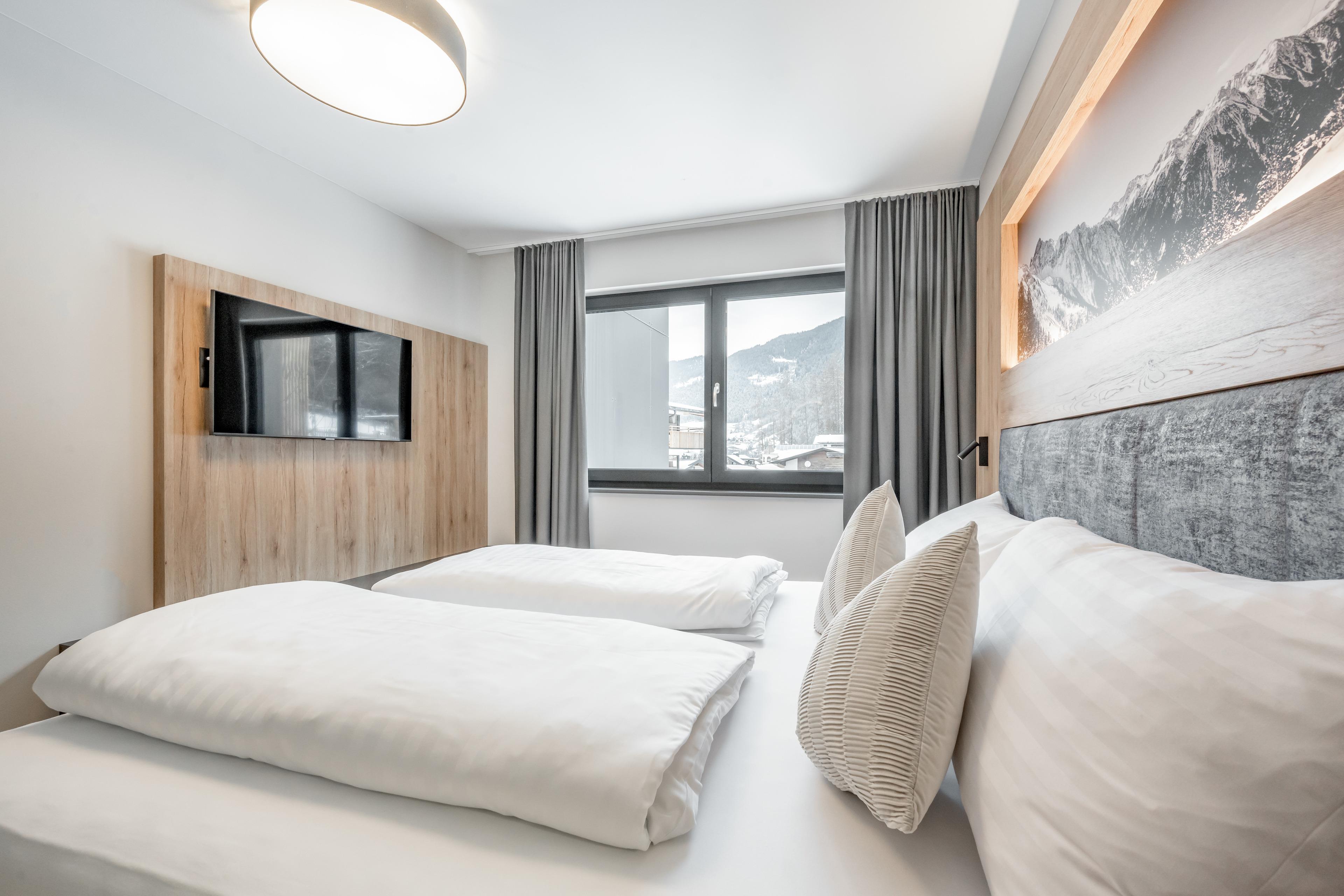 Apartment ? TWO im ersten Obergeschoß begeistert mit einem offenem Wohn-Ess-Kochbereich mit voll ausgestatteter Küche inkl. ausziehbarer Couch und einer vom Wohnbereich aus zugänglicher Zirbenholz-Sauna mit integriertem Infrarotstrahler. Es bietet zwei Schlafzimmer mit Doppel-Boxspringbetten und je einem großzügigen, modernen Badezimmer mit Dusche & WC. Das Apartment ist auch über den Personenaufzug erreichbar.
