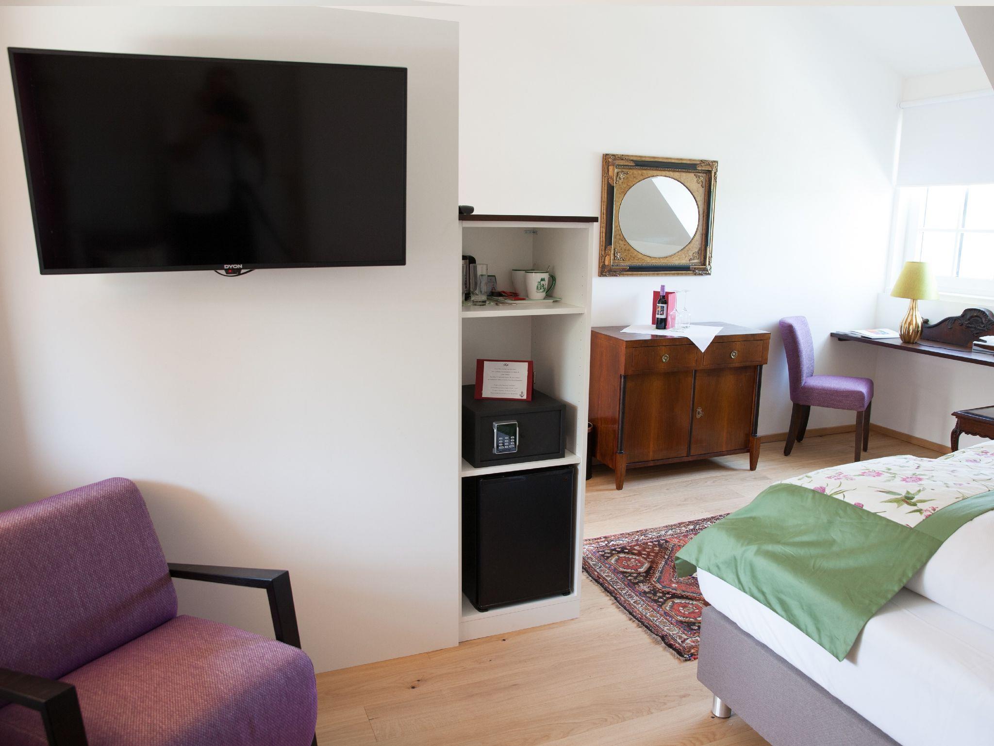 Die 2021 neu adaptierten Juniorsuiten des goldenen Ankers verfügen über Dusche oder Badewanne, WC, Flatscreen-Kabel TV, Minibar, Wasserkocher, Safe, Föhn, Telefon und Wifi.