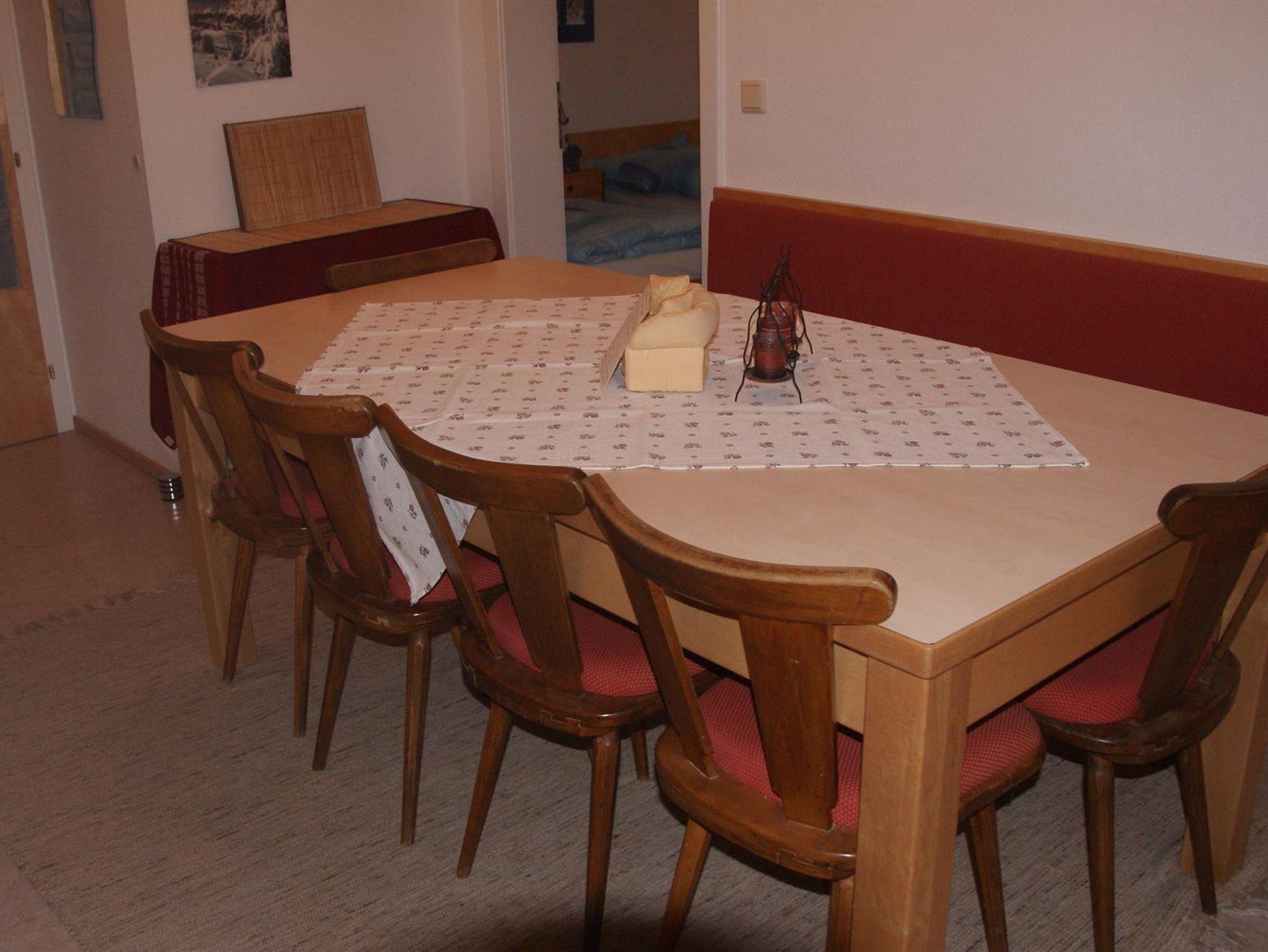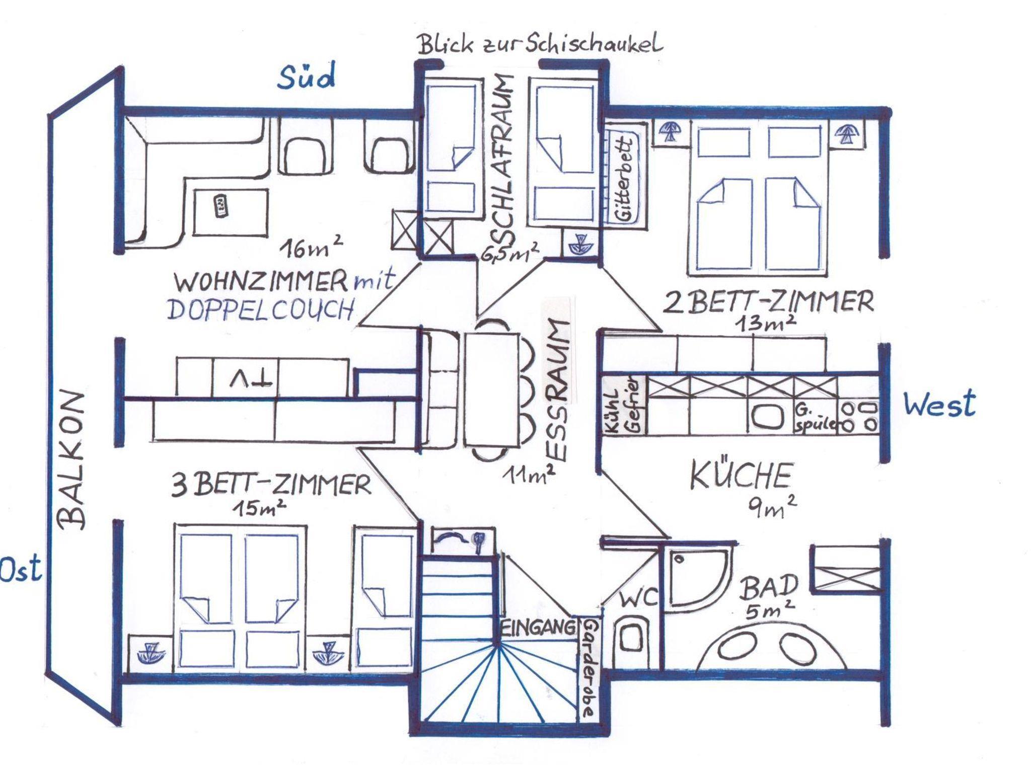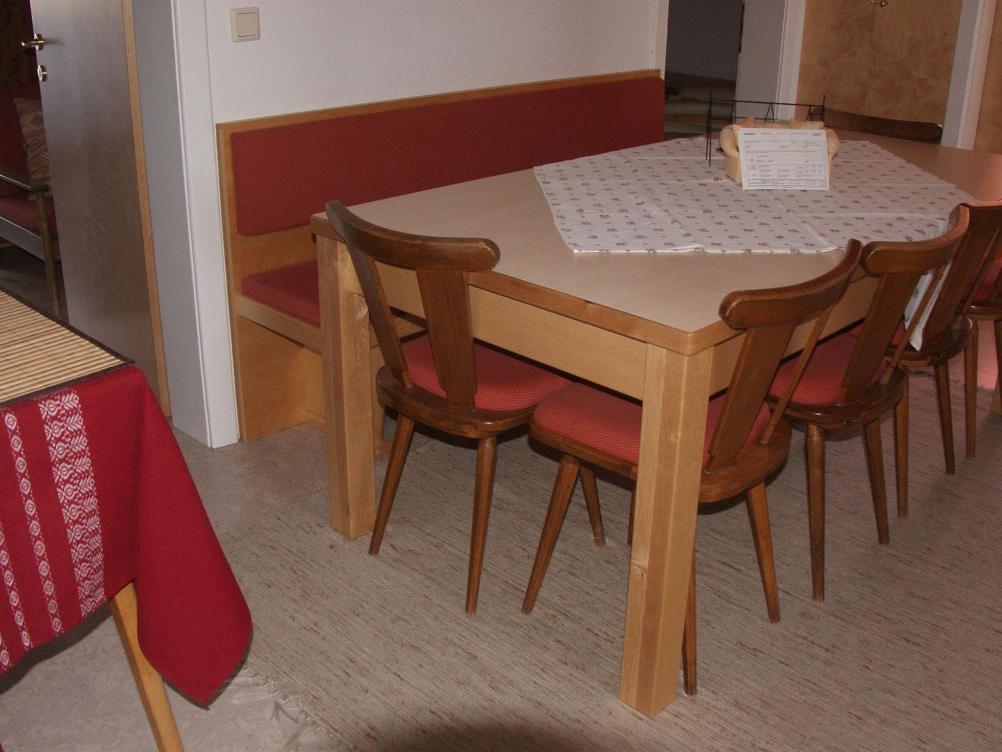 Unsere gemuetliche Dachgeschoßwohnung ist mit viel Liebe zum Detail ausgestattet. 2 Zweibettzimmer(+1 Gitter-bzw.Zustellbett), 1 Dreibettzimmer und 1 Wohnschlafraum (Doppelliege) bieten Rueckzugsbereich für alle Personen. Eine modern ausgestattete Kueche, ein Essraum, 1 Bad mit Doppelwaschtisch und 1 WC komplettieren die 80m2 Wohnung. Unser Kücheninventar ist besonders reichhaltig ausgestattet, doppelt vorhandenes Geschirr, mehr als 30 Gewürze, Raclette, Grill oder Fonduegeschirr erleichtern Ihnen Ihre Essensplanung und garantieren Ihnen gemütliche Stunden im Familienkreis oder in der Freundesrunde.