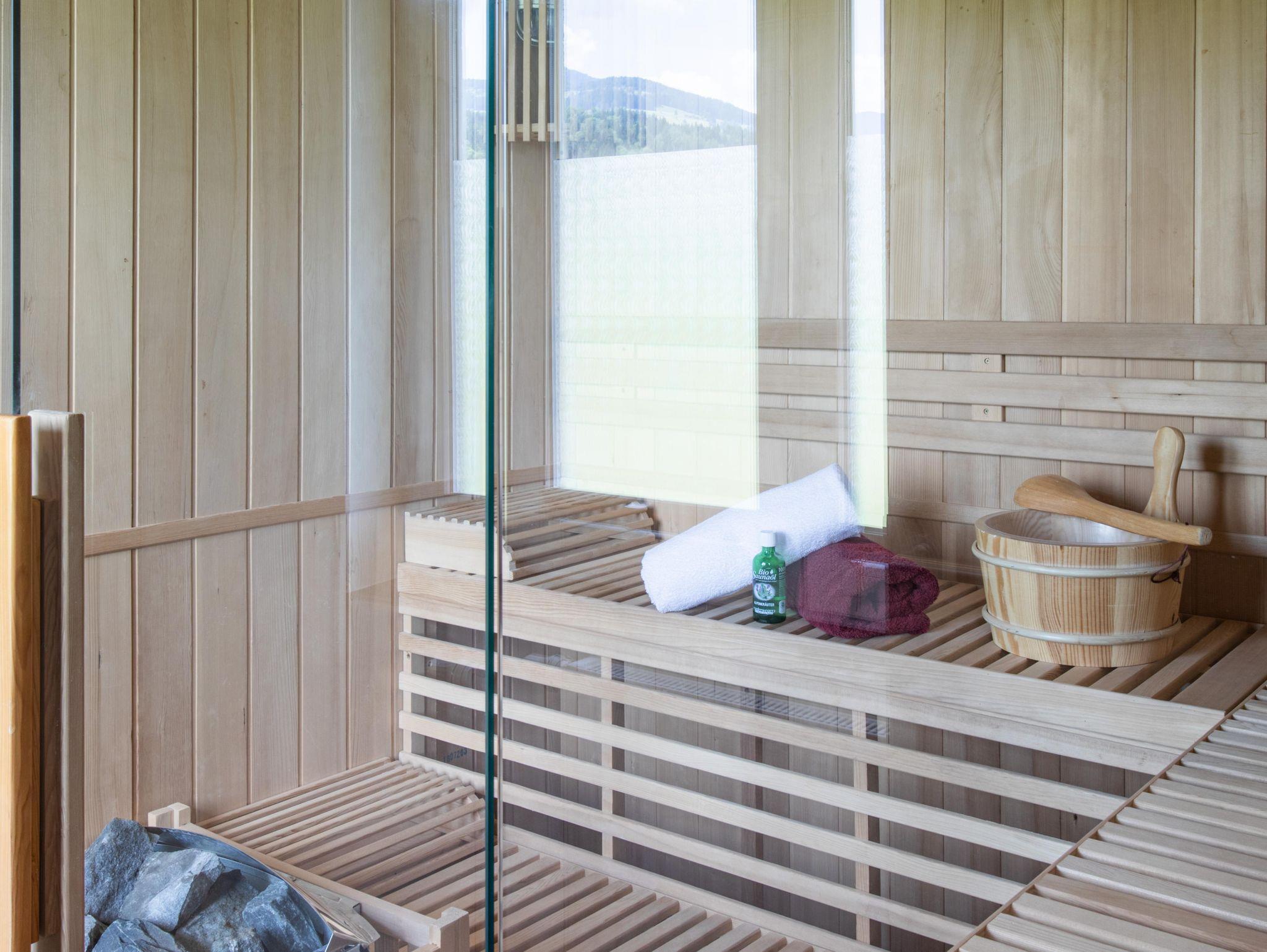 Appartement mit 1 Dreibettzimmer und 2 Doppelzimmer. Jedes Zimmer verfügt über ein eigenes Bad mit Dusche/WC. Für das gemütliche Zusammensein eignet sich die Küche mit Sitzecke. Gratis W-Lan. Eigene Sauna im Appartement.