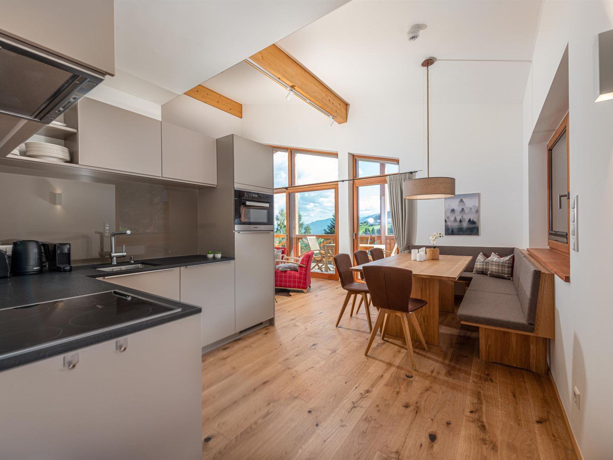 Mit der Komplettausstattung genießt du viele Annehmlichkeiten deines Urlaubsrefugiums. Eine Wohltat für Körper und Geist ist die Entspannung im feinen Wellnessbereich mit Panoramasauna, Infrarot und Ruhebereichen im Innen und Außen der Skylodge.