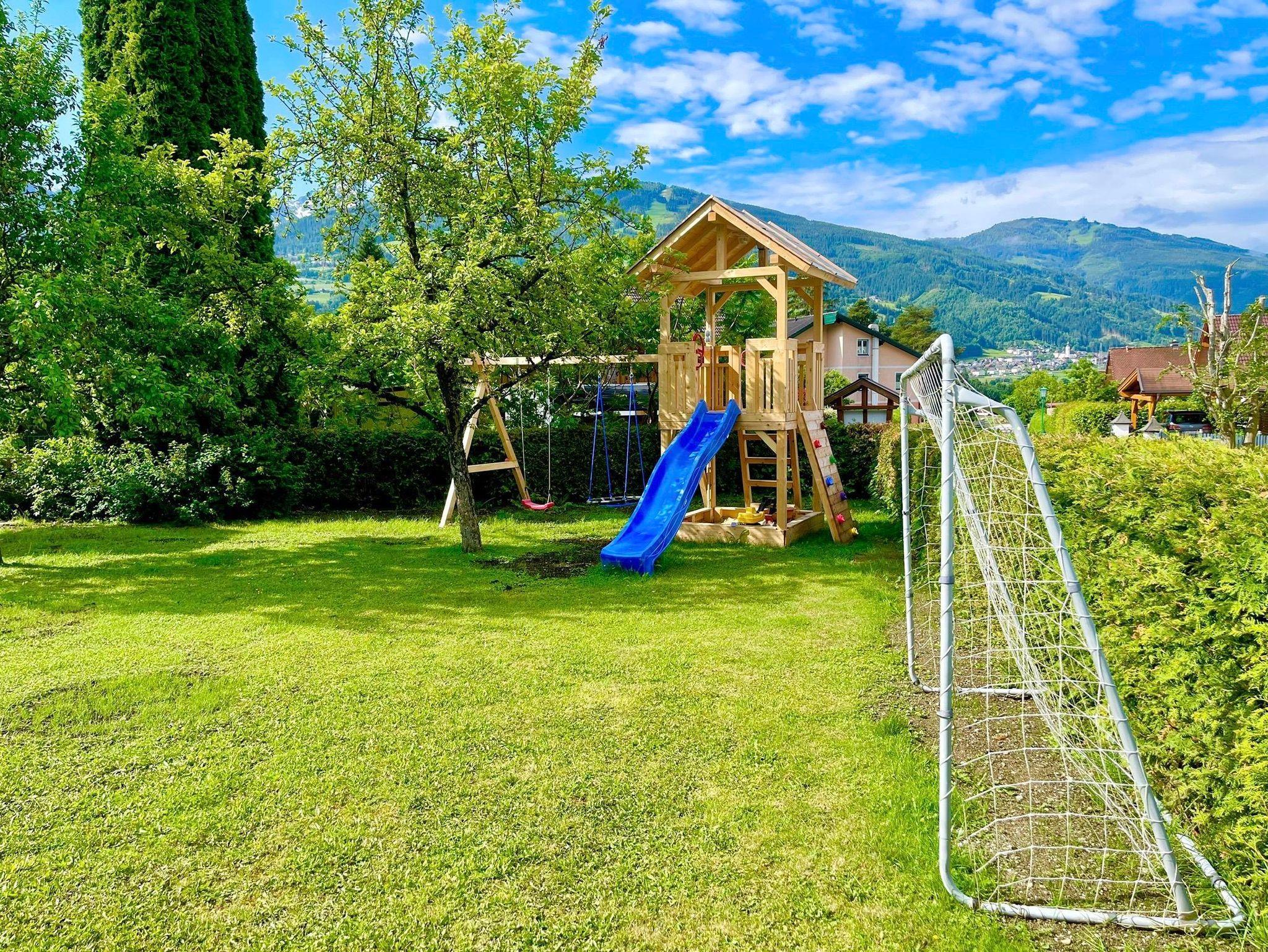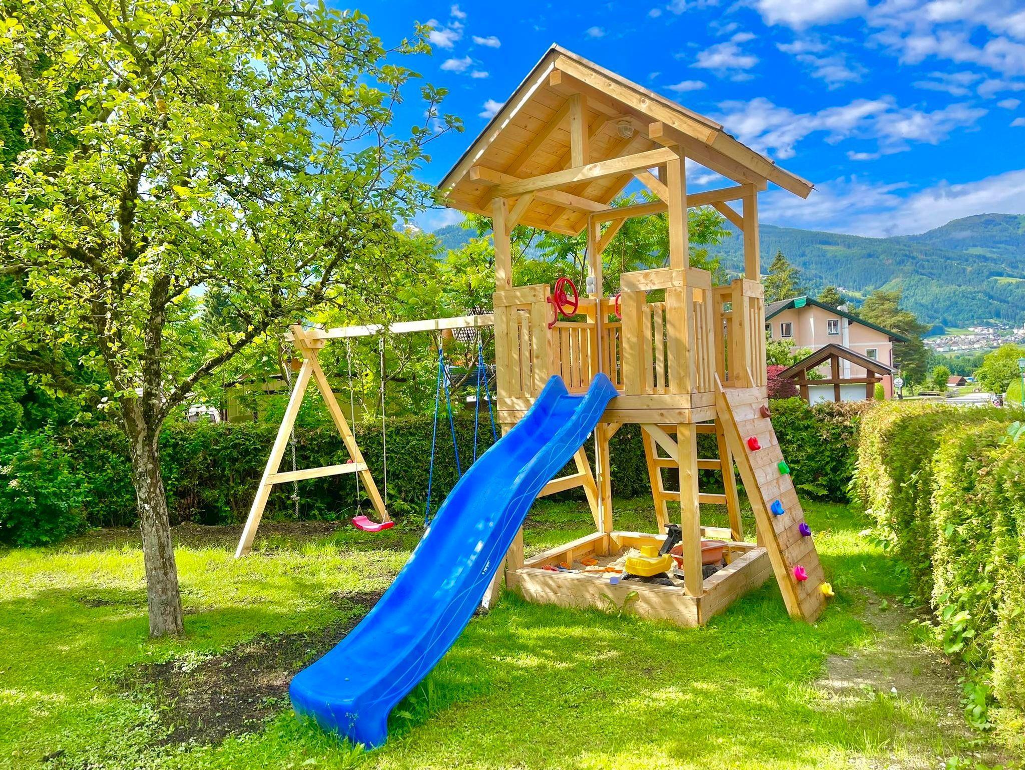 Rutsche, Sandkiste, Spielturm, Schaukel, Tischtennisplatte, Fußballtore, Riesen-Vier-Gewinnt