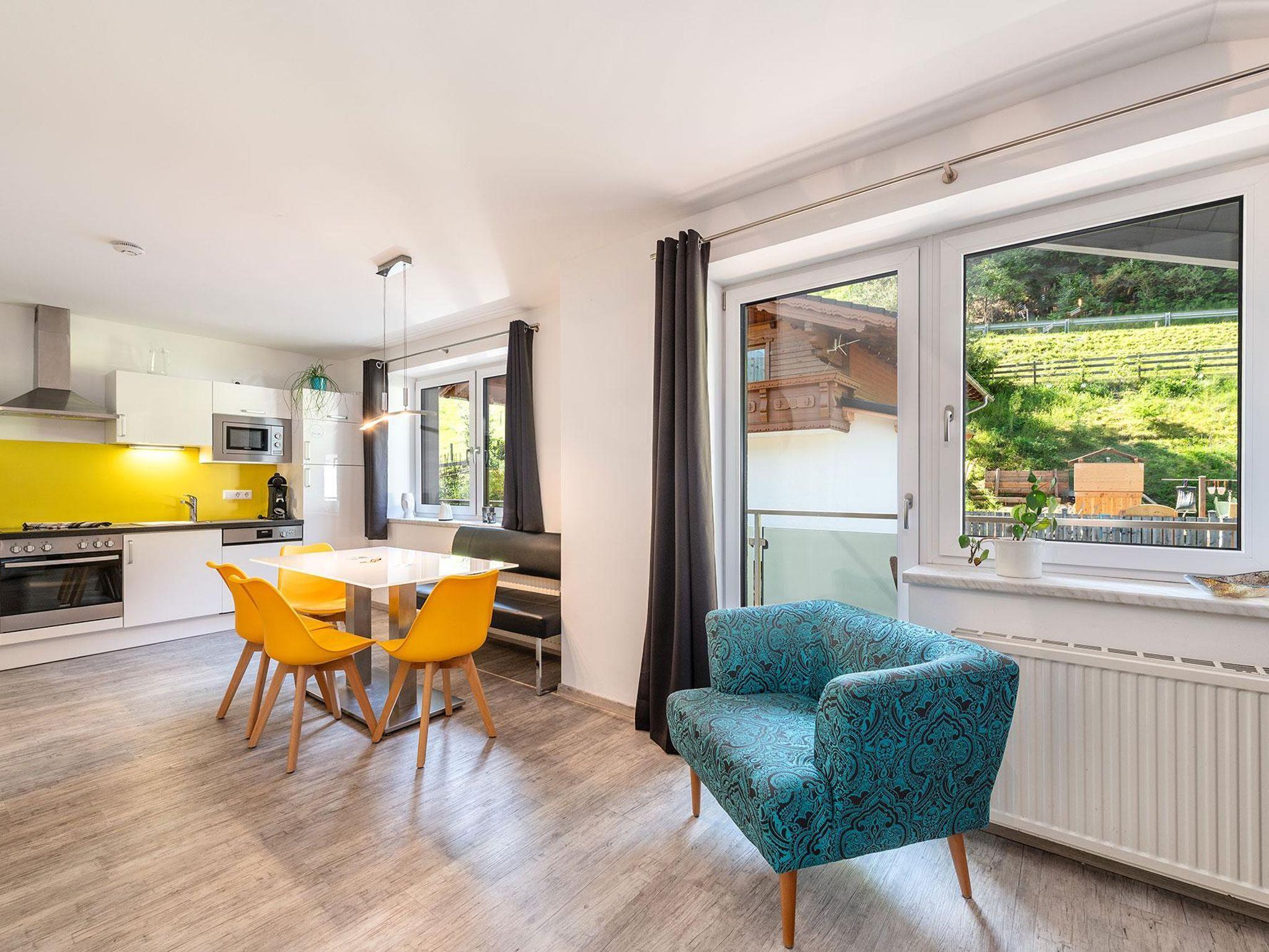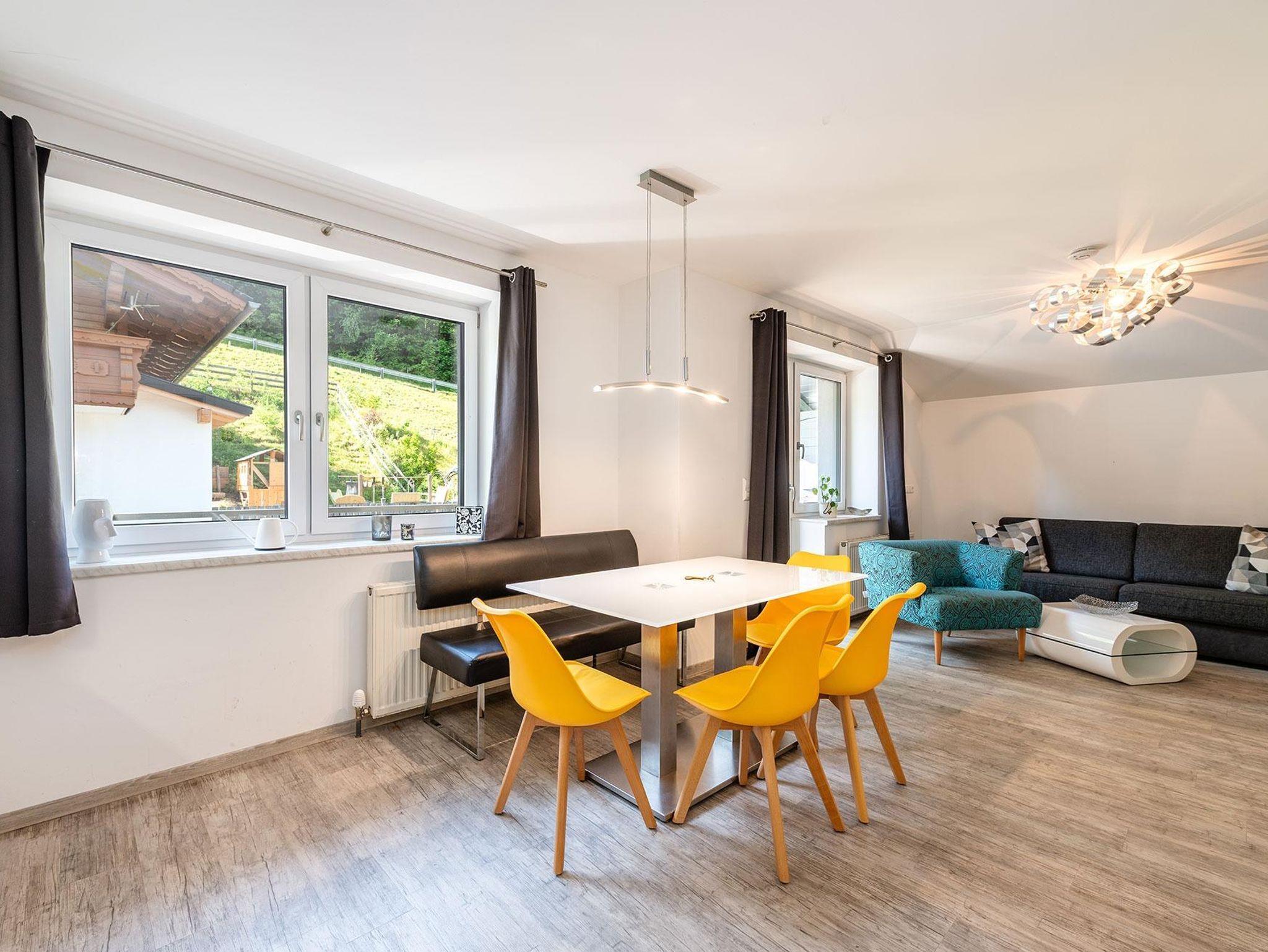 Unser 70 m² großes Mountain Love Appartement I im 1. OG bietet Ihnen einen großen Wohn-/Essraum mit voll eingerichteter Küche, ein Badezimmer mit Dusche sowie ein separates WC. Die Ferienwohnung verfügt über zwei getrennte Schlafzimmer mit Doppelbett, sowie einer hochwertigen Schlafcouch mit inkludierter Matratze für zwei weitere Personen. Für Ihr Baby oder Kleinkind stellen wir gerne ein Bettchen kostenlos zur Verfügung!