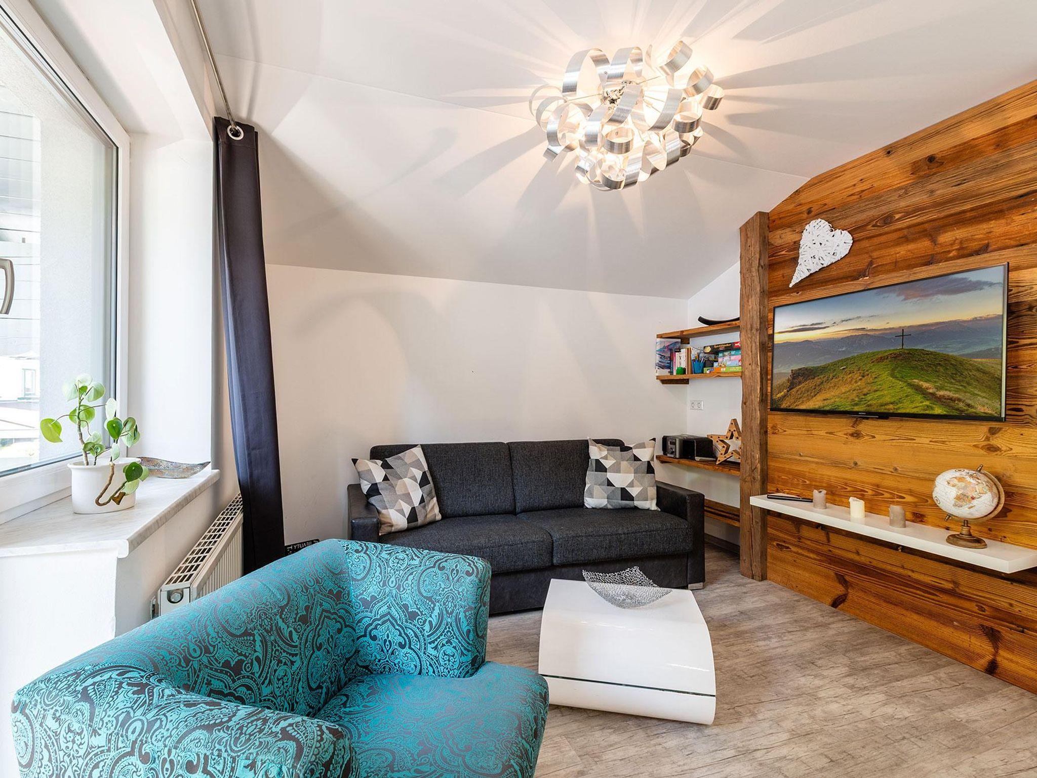 Unser 70 m² großes Mountain Love Appartement I im 1. OG bietet Ihnen einen großen Wohn-/Essraum mit voll eingerichteter Küche, ein Badezimmer mit Dusche sowie ein separates WC. Die Ferienwohnung verfügt über zwei getrennte Schlafzimmer mit Doppelbett, sowie einer hochwertigen Schlafcouch mit inkludierter Matratze für zwei weitere Personen. Das WLAN im gesamten Appartement und den Privatparkplatz benutzen Sie bei uns kostenfrei. Eine Sauna gehört ebenso zu unserer Appartement-Ausstattung. Unsere großzügige Terrasse, der separate Balkon und der Garten mit Blick auf die umliegende Berglandschaft laden im Sommer zum Grillen ein.