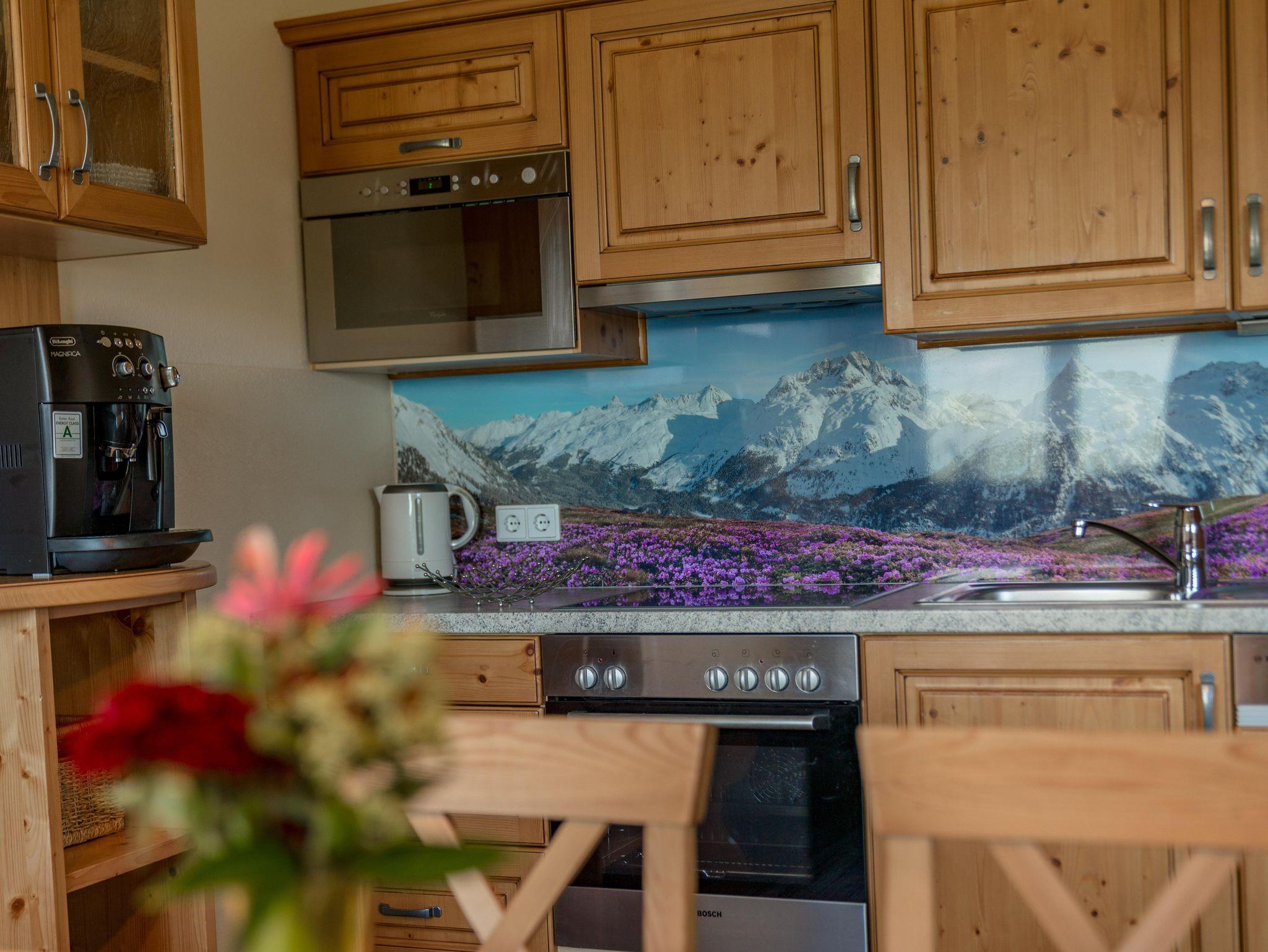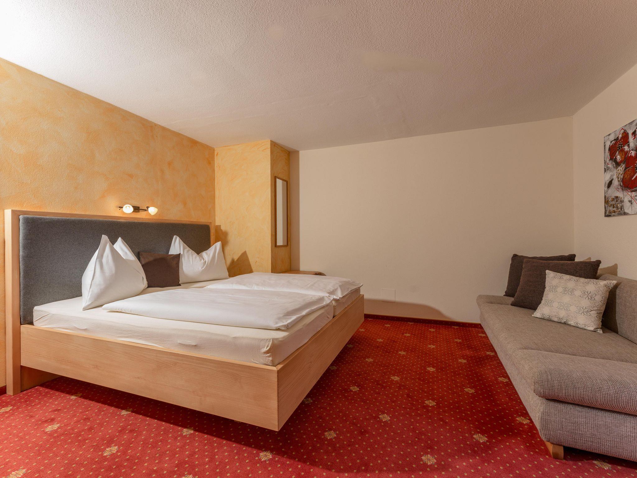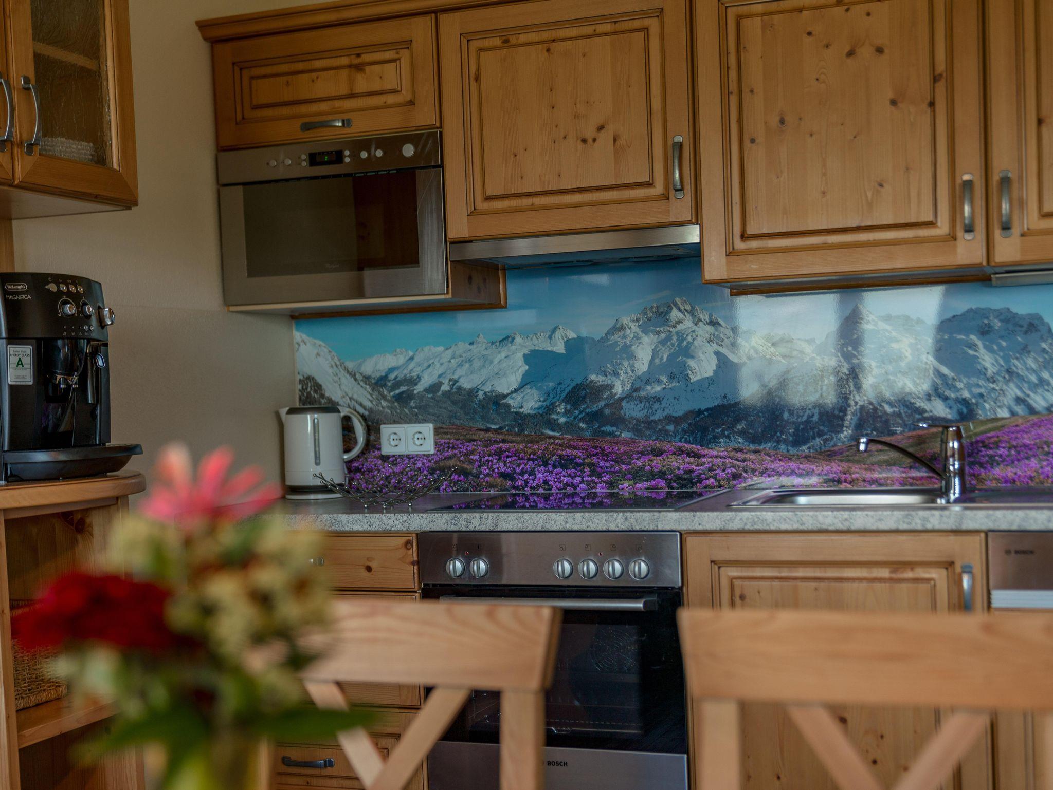 Unsere Nichtraucher-Appartements Dachstein für 4 bis 7 Personen ist mit einem großen Vorraum einem Doppel- und einem Dreibettzimmer sowie einem Wohnzimmer mit ausziehbarem Sofa, Küche (mit E-Herd, Backrohr, Geschirrspüler,Mikrowelle, Kühlschrank, Geschirr, Saeco-Kaffeemaschine, Wasserkocher, Toaster sowie Spül- und Reinigungsmittel), Bad, WC und Balkon ausgestattet. Sat-TV und gratis W-Lan!