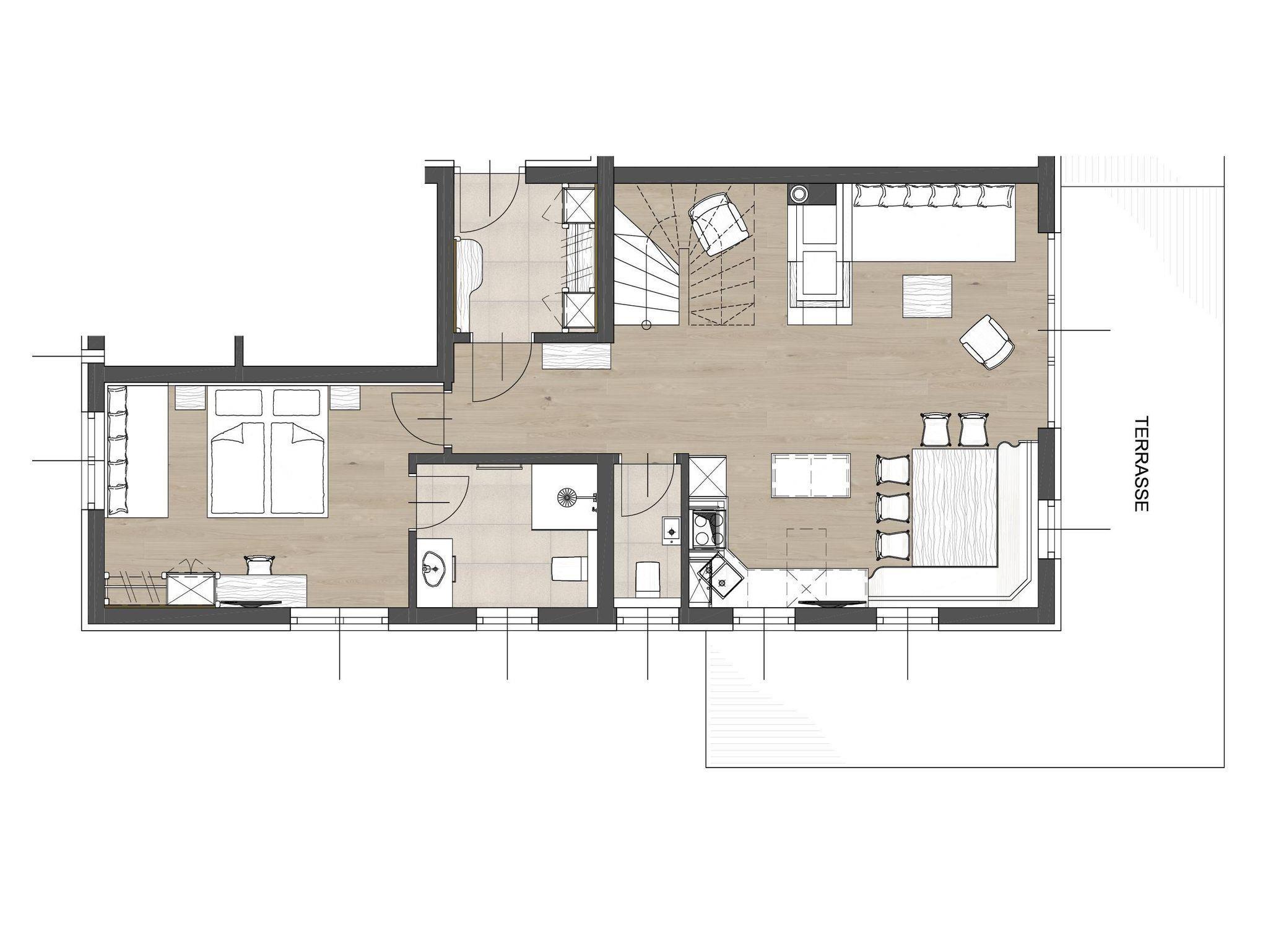 - Gut ausgestattete Wohnküche (Geschirr, Geschirrspüler, E-Herd mit Backofen, Kühlschrank mit Gefrierfach, Filter- und Nespressomaschine) und großzügiger Esstisch für wohltuende Gespräche