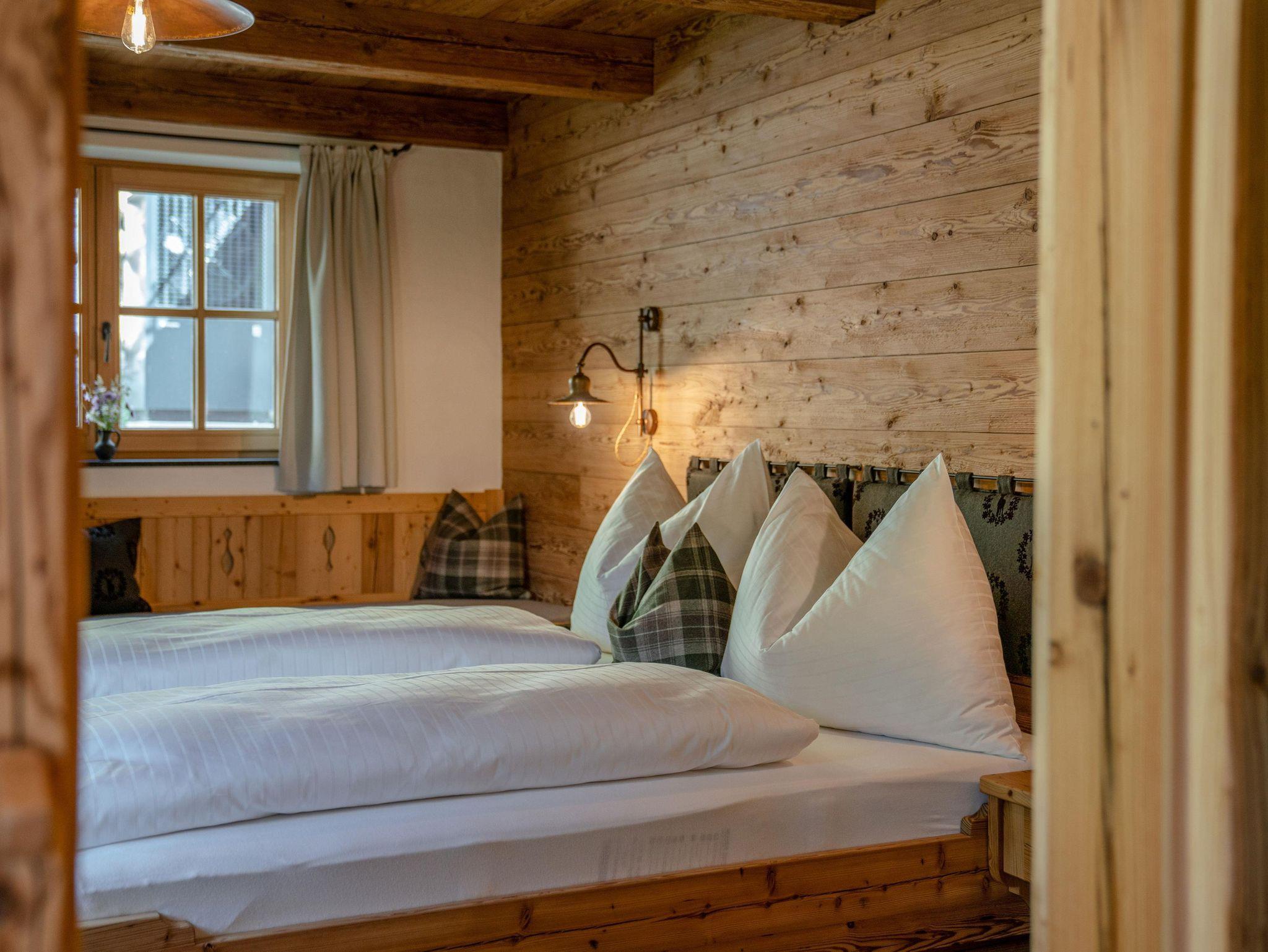 Warme Farben, weich kuschelige Stoffe, das Knistern des Kachelofens sowie natürliche Materialien wie Altholz, Naturstein und Loden aus unserer Heimat machen aus den Räumen Rückzugsorte mit Charme und bereiten unvergessliche Glücksmomente in den Bergen.