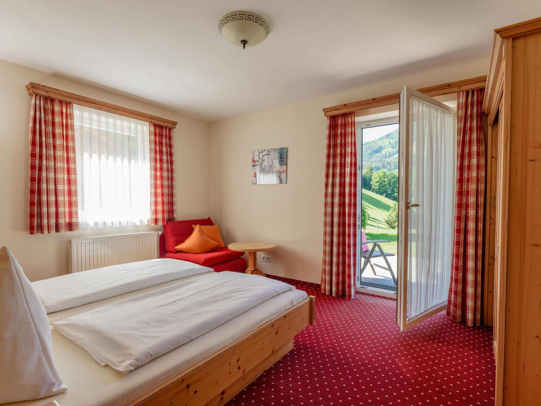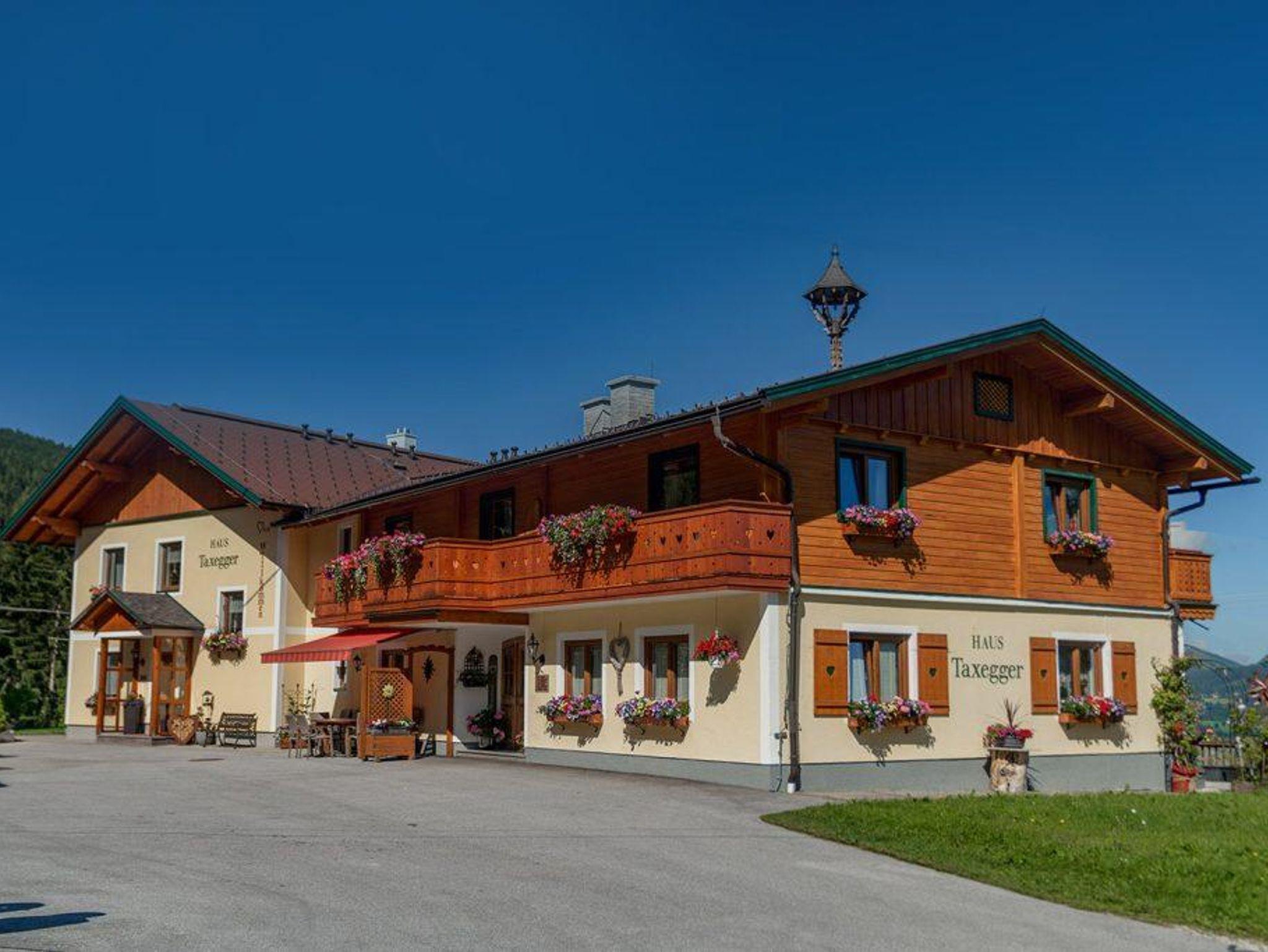 Umgeben von Wiesen und Wäldern in ruhiger, sonniger Lage auf 1.100 m Seehöhe wohnen Sie in unseren 5 neu errichteten Nichtraucher-Appartements. Wir bieten verschiedene Wohnungstypen für 2 bis 7 Personen an. Je nach Wohnungsgröße stehen Ihnen ein bis zwei getrennte Schlafzimmer zur Verfügung. Jedes Appartement hat zusätzlich ein Wohn-Schlafzimmer, eine voll ausgestattete Küche sowie Badezimmer mit Dusche und WC. Sat-TV und gratis W-Lan sind im Haus Taxegger selbstverständlich vorhanden. Was Sie aber ganz besonderes genießen werden, ist die faszinierende Aussicht vom Balkon der Appartements auf das Dachstein-Massiv.