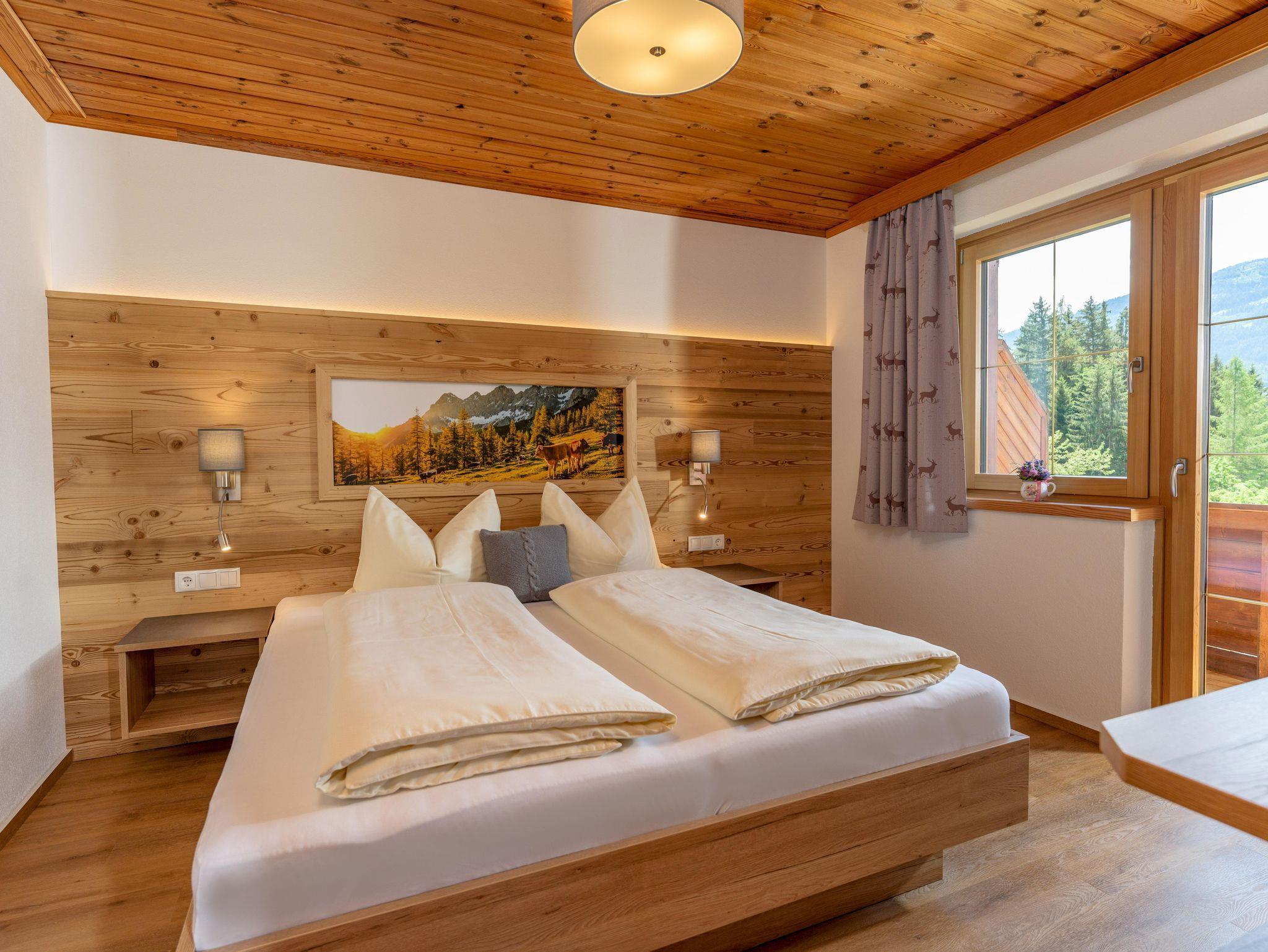 Gemütliches Komfortzimmer mit Dusche, WC, Fernseher, W-LAN und herrlichem Ausblick auf den Hauser Kaibling und auf die Planai. Kann auch zu den einzelnen Appartements dazugebucht werden.