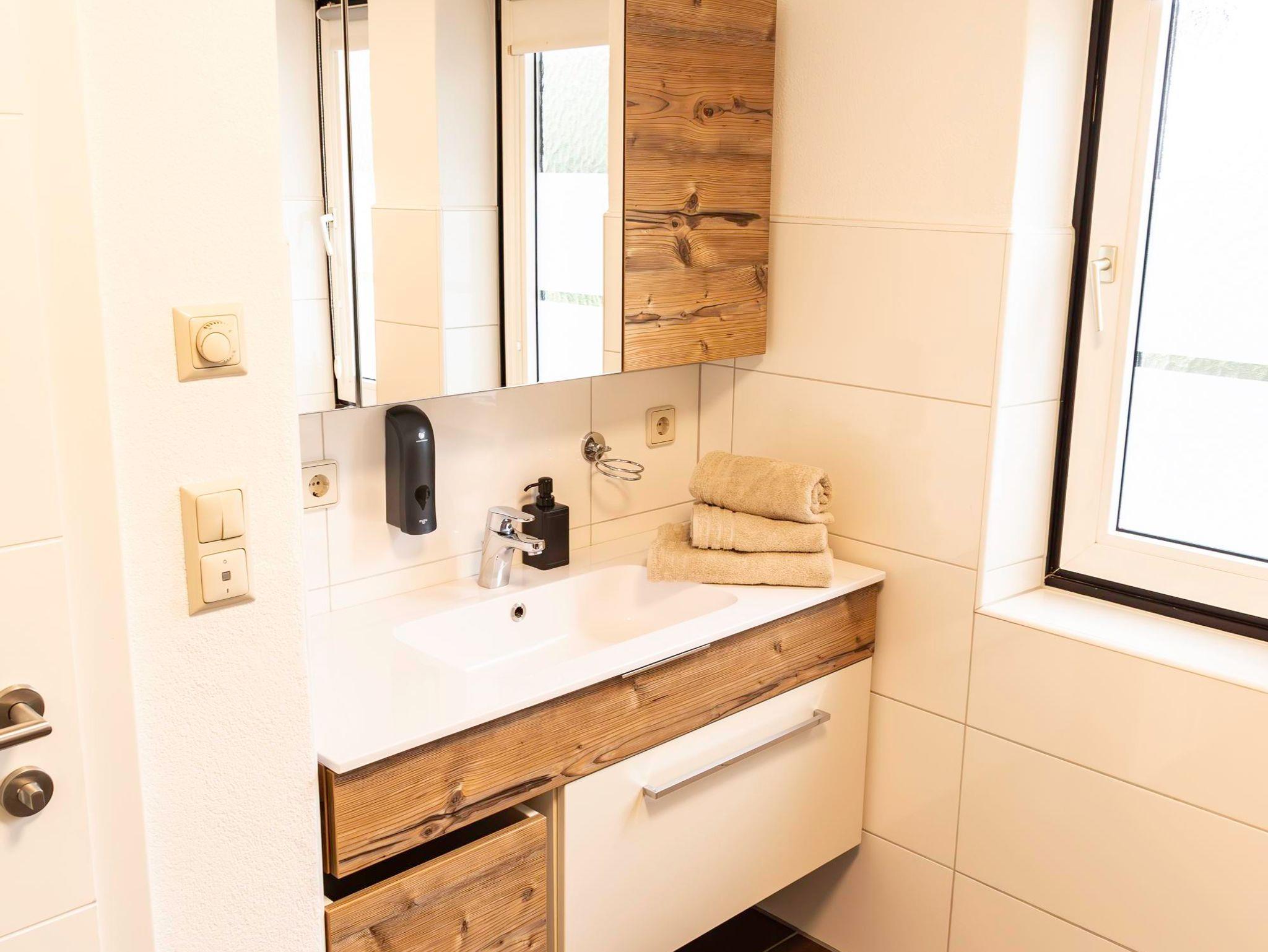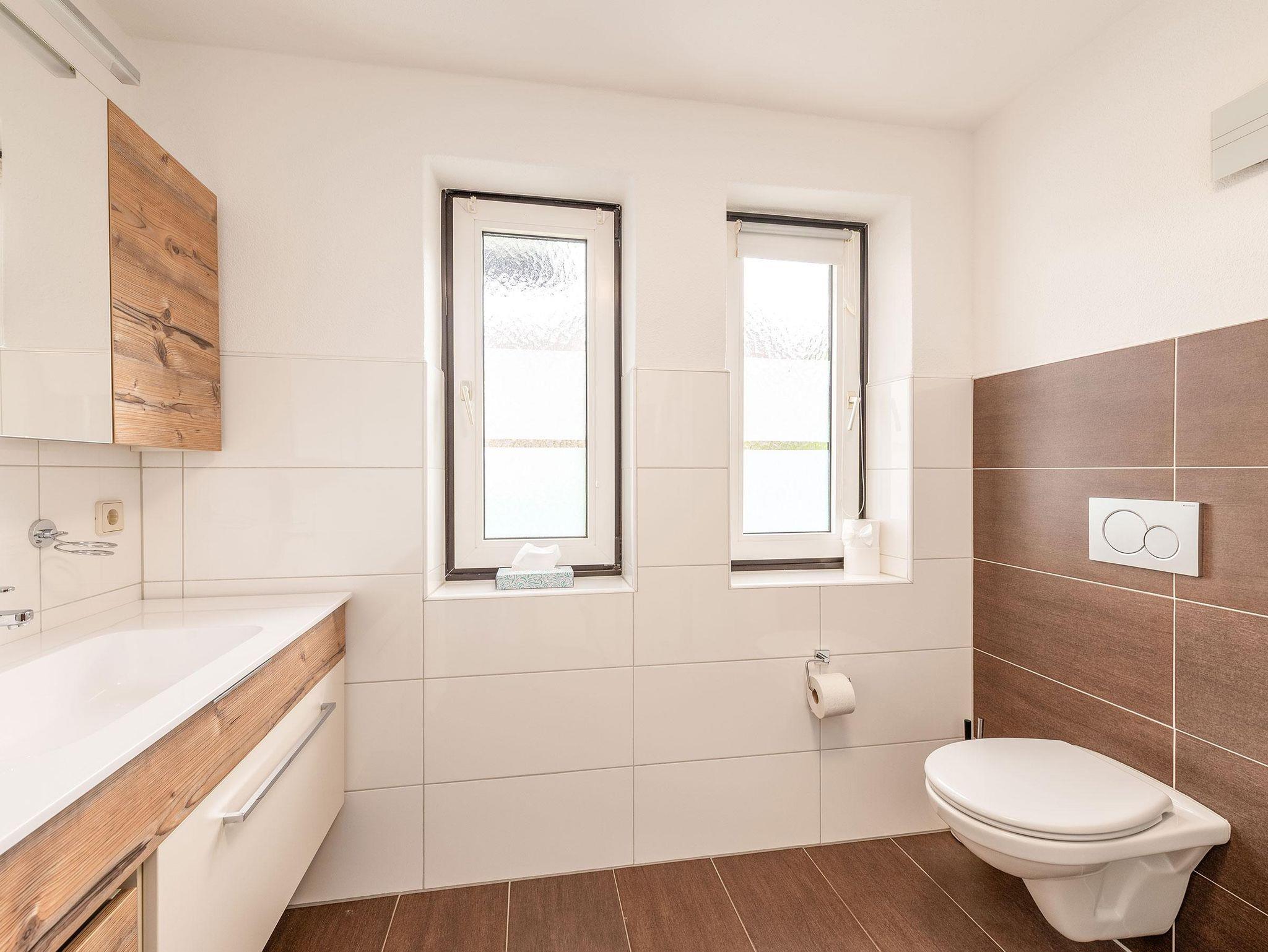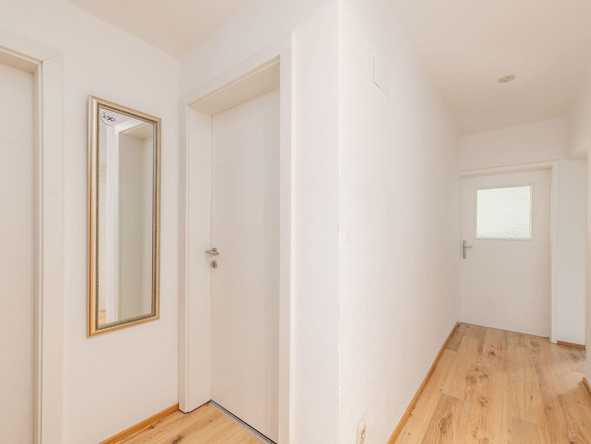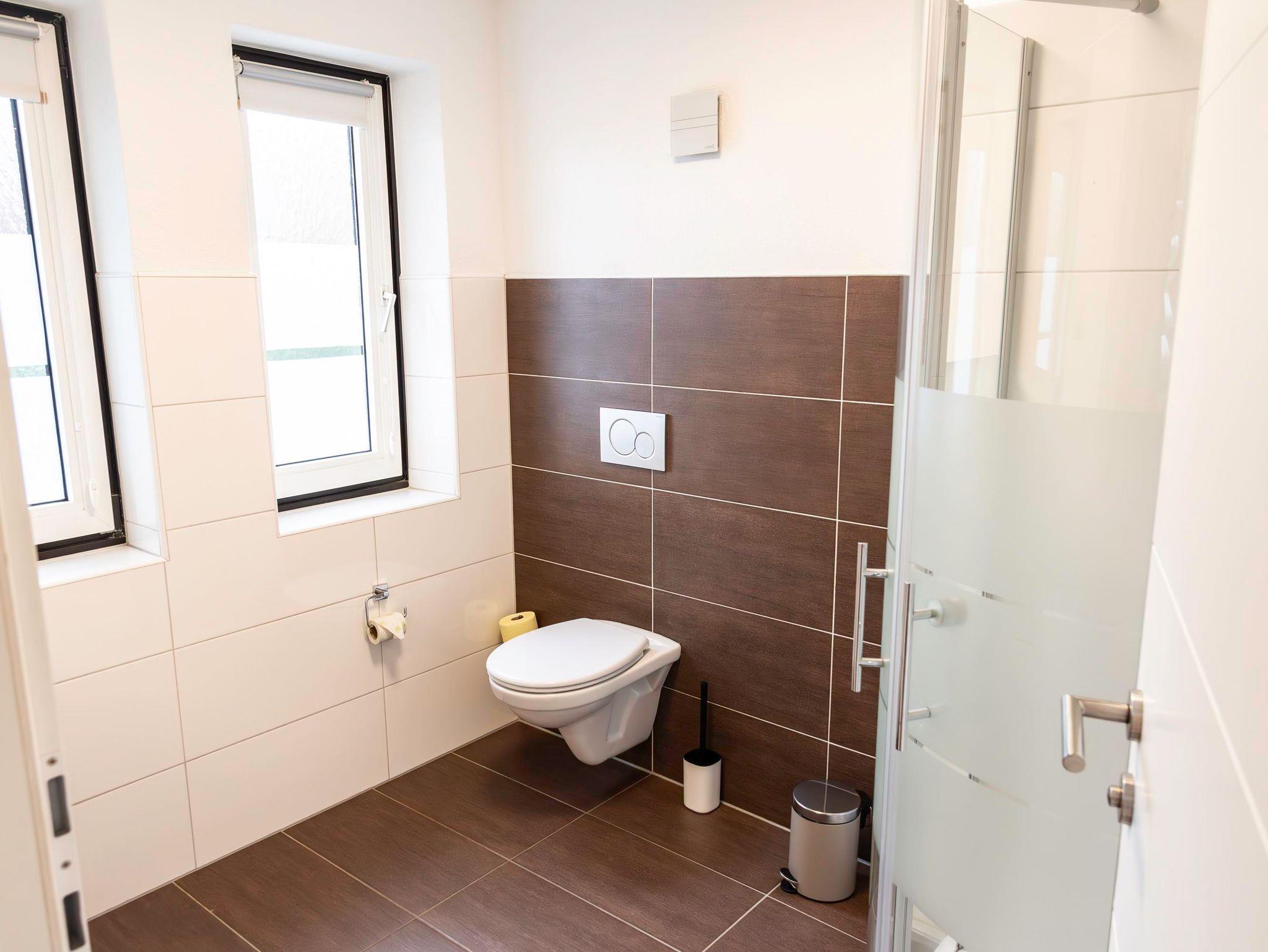Unsere 60 m² großes Apartment 1 im Erdgeschoss bietet Platz für bis zu 4 Personen. Sie verfügt über 2 getrennte Schlafzimmer (jeweils mit Flat-TV) und eine voll ausgestattete Küche mit gemütlicher Essecke. Die Wohnung verfügt außerdem über ein Badezimmer mit großer Dusche und WC.