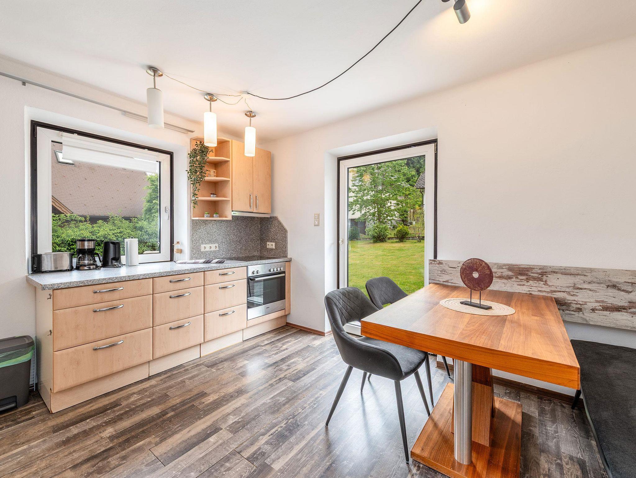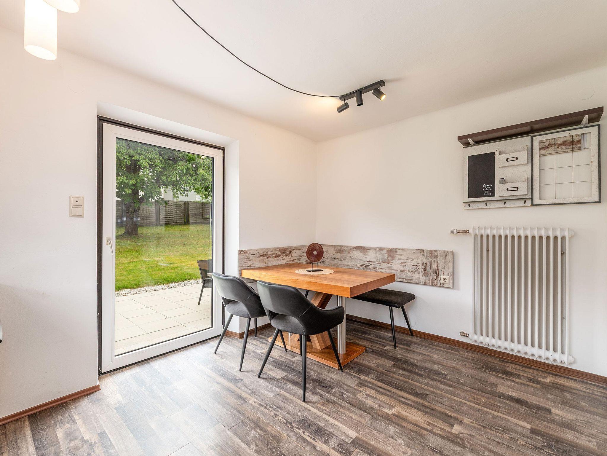 Außerdem gibt es einen direkten Zugang ins Grüne. Eine große Terrasse mit Essgruppe und ein riesiger Garten mit Grill, laden zum Verweilen ein.