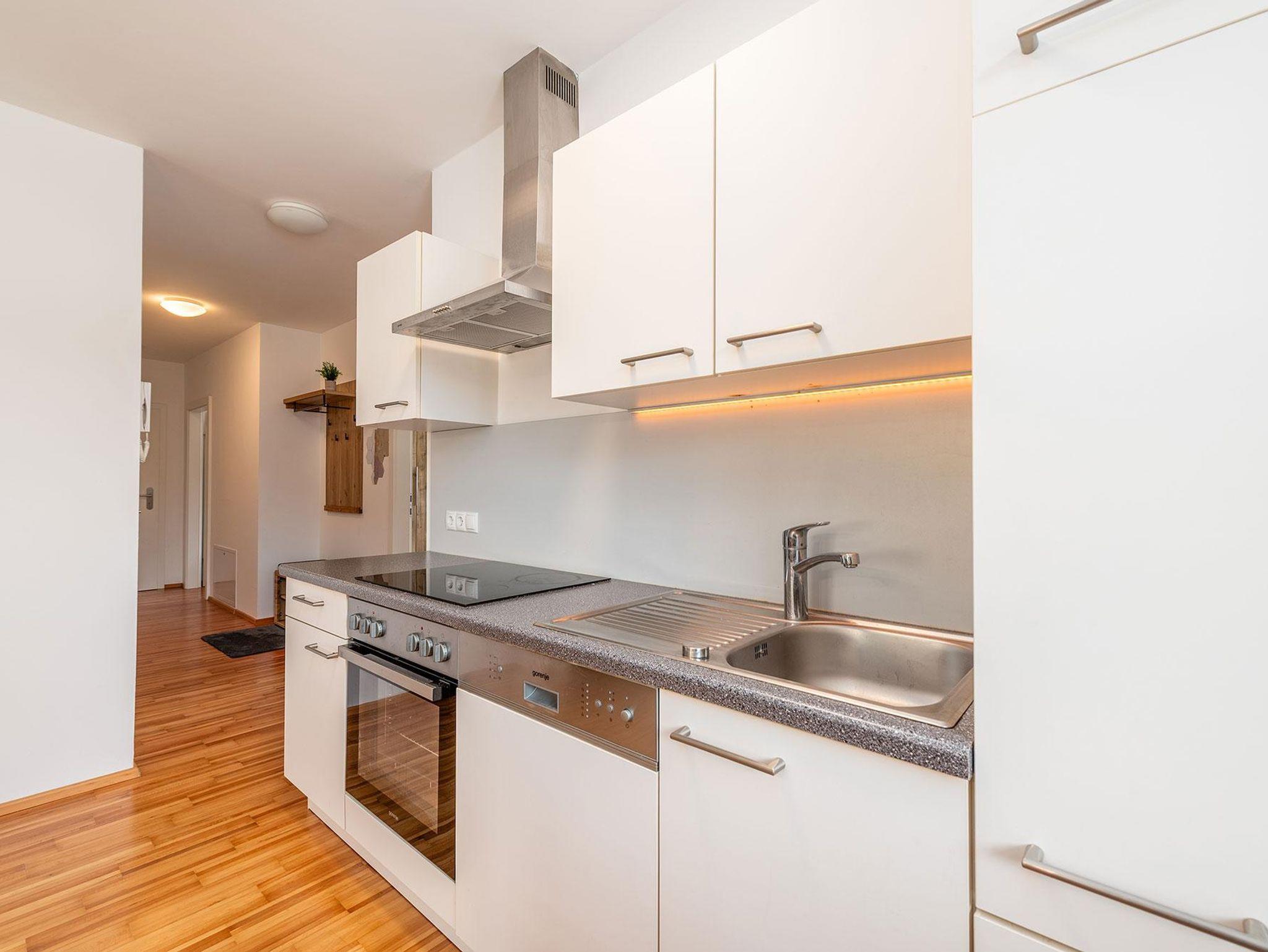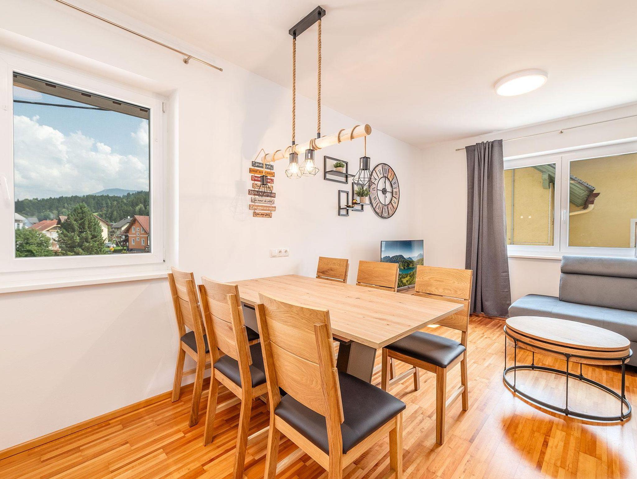 Das Apartment befindet sich im Erdgeschoss und verfügt über ein Schlafzimmer mit einem komfortablen 180 cm Doppelbett sowie einem praktischen Etagenbett. Im Wohnbereich bietet eine gemütliche Schlafcouch zusätzlichen Schlafplatz. Die voll ausgestattete Küche lädt zu gemeinsamen Mahlzeiten ein, während die private Terrasse ein wunderbarer Ort für entspanntes Frühstücken oder gemütliche Abende im Freien ist.
