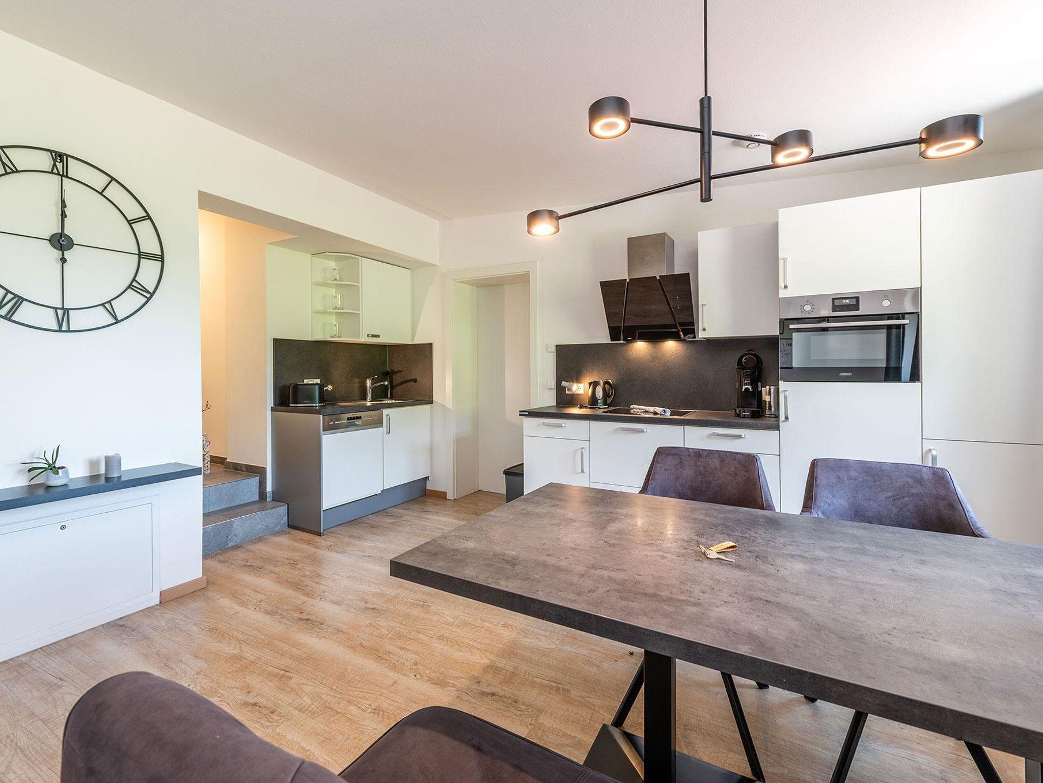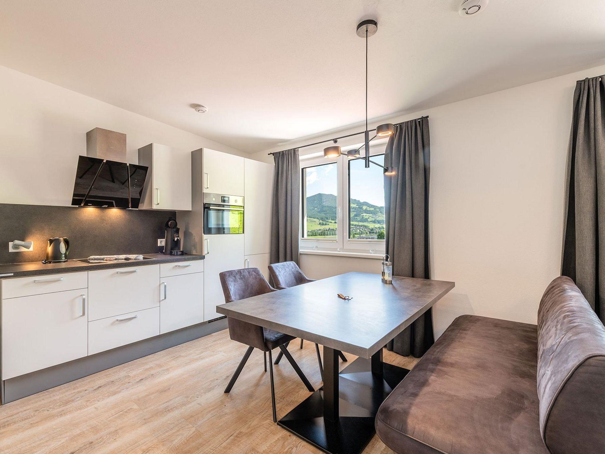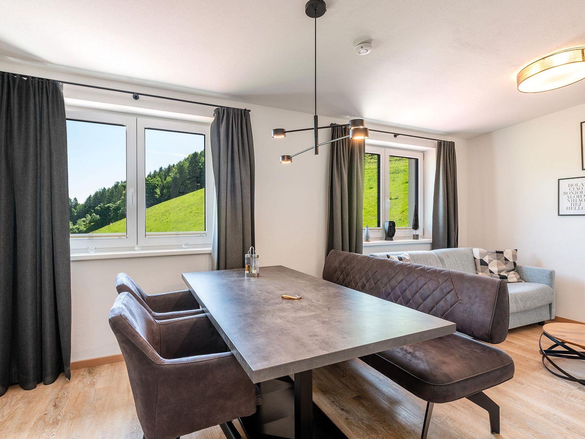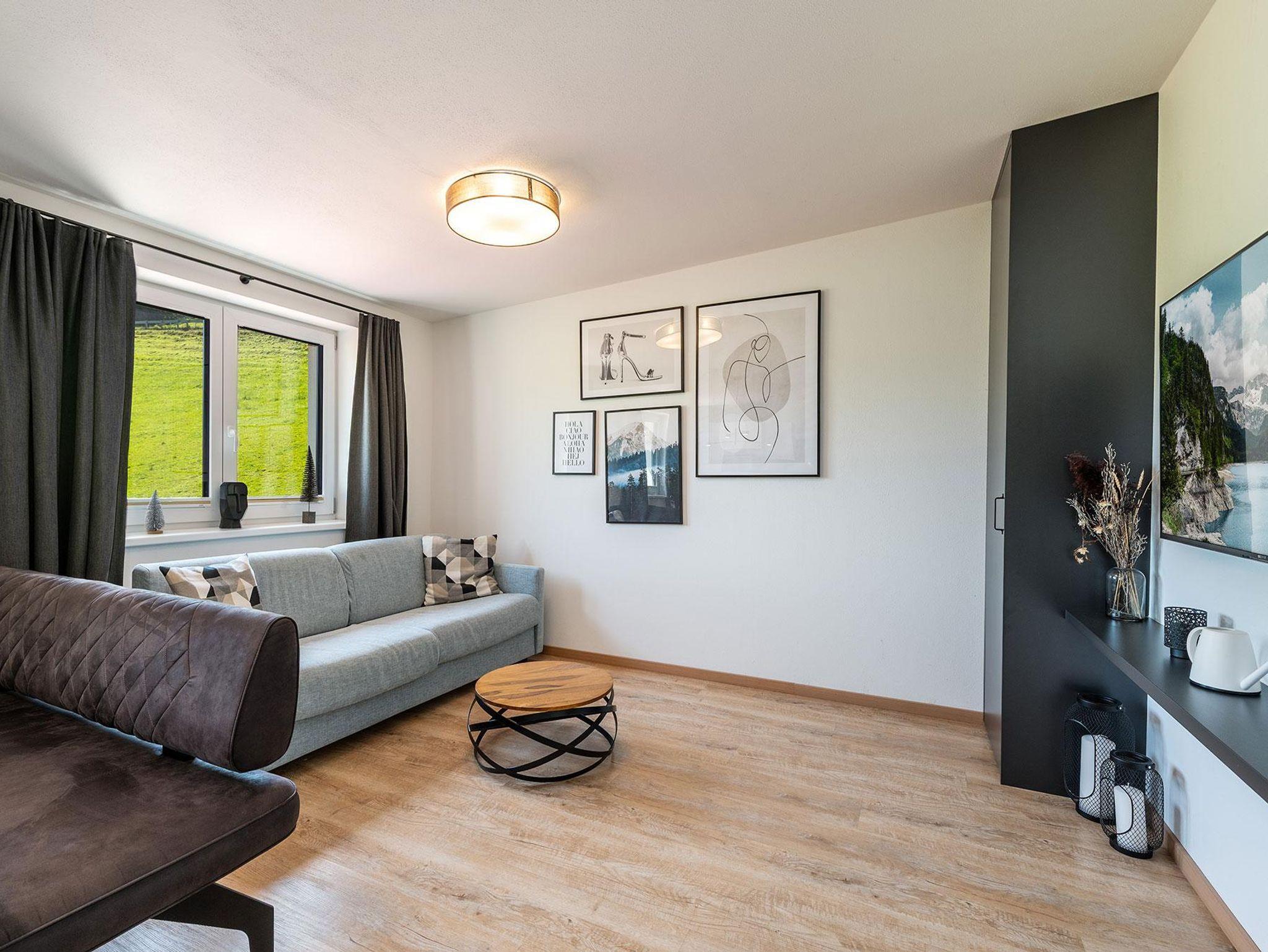 Unser 70 m² großes Mountain Love Appartement I im 1. OG bietet Ihnen einen großen Wohn-/Essraum mit voll eingerichteter Küche, ein Badezimmer mit Dusche sowie ein separates WC. Die Ferienwohnung verfügt über zwei getrennte Schlafzimmer mit Doppelbett, sowie einer hochwertigen Schlafcouch mit inkludierter Matratze für zwei weitere Personen. Für Ihr Baby oder Kleinkind stellen wir gerne ein Bettchen kostenlos zur Verfügung!