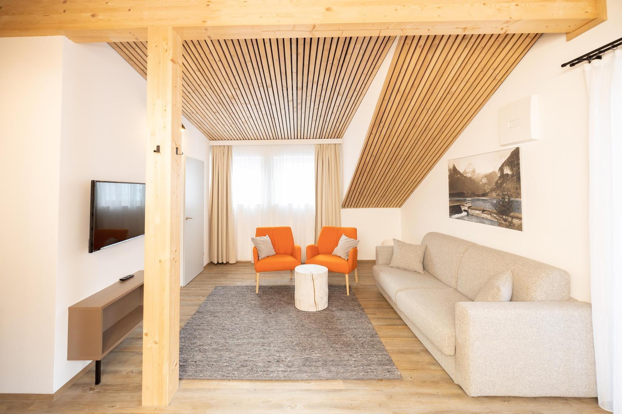 Belägen i hjärtat av de österrikiska Alperna erbjuder denna lägenhet på bottenvåningen den perfekta blandningen av bergscharm och modern komfort. Designad för upp till åtta gäster, är det en lugn tillflyktsort där morgnarna börjar med dimma som stiger över topparna och kvällarna slutar på den möblerade balkongen, omgiven av alpin tystnad. Inuti inbjuder det rymliga vardagsrummet dig att varva ner med en Smart-TV, mysiga sittplatser och en matplats perfekt för gemensamma måltider. Det moderna pentryt, utrustat med en Nespresso-maskin, diskmaskin och kombinerad mikrovågsugn, gör livet enkelt oavsett om du lagar frukost eller njuter av ett sent kvällsmellanmål. Med gratis Wi-Fi, ett värdeskåp och parkering precis utanför dörren finns allt du behöver nära till hands. Lägenheten har tre ljusa och inbjudande sovrum, inklusive ett med dubbelsäng och TV, ett annat med två enkelsängar och en enkel högsäng, och ett tredje med en dubbel våningssäng och en upphöjd enkelsäng. Två eleganta badrum med duschkabin, plus en separat toalett, garanterar bekvämlighet och avskildhet för alla. Den mjuka färgpaletten och den genomtänkta designen skapar en känsla av värme och lugn, medan den privata balkongen är den perfekta platsen att smutta på kaffe och se bergen förändras i ljuset. Stig ut, och Hinterstoders alpina skönhet väntar. På vintern erbjuder det närliggande skidområdet Hinterstoder-Wurzeralm backar för alla nivåer, medan sommaren bjuder på oändliga vandrings- och cykelleder genom skogar och dalar. Besök den hisnande Schiederweiher-sjön, utforska den natursköna Stodertal-dalen eller koppla helt enkelt av i hotellets hälsoavdelning med bastur och gym.