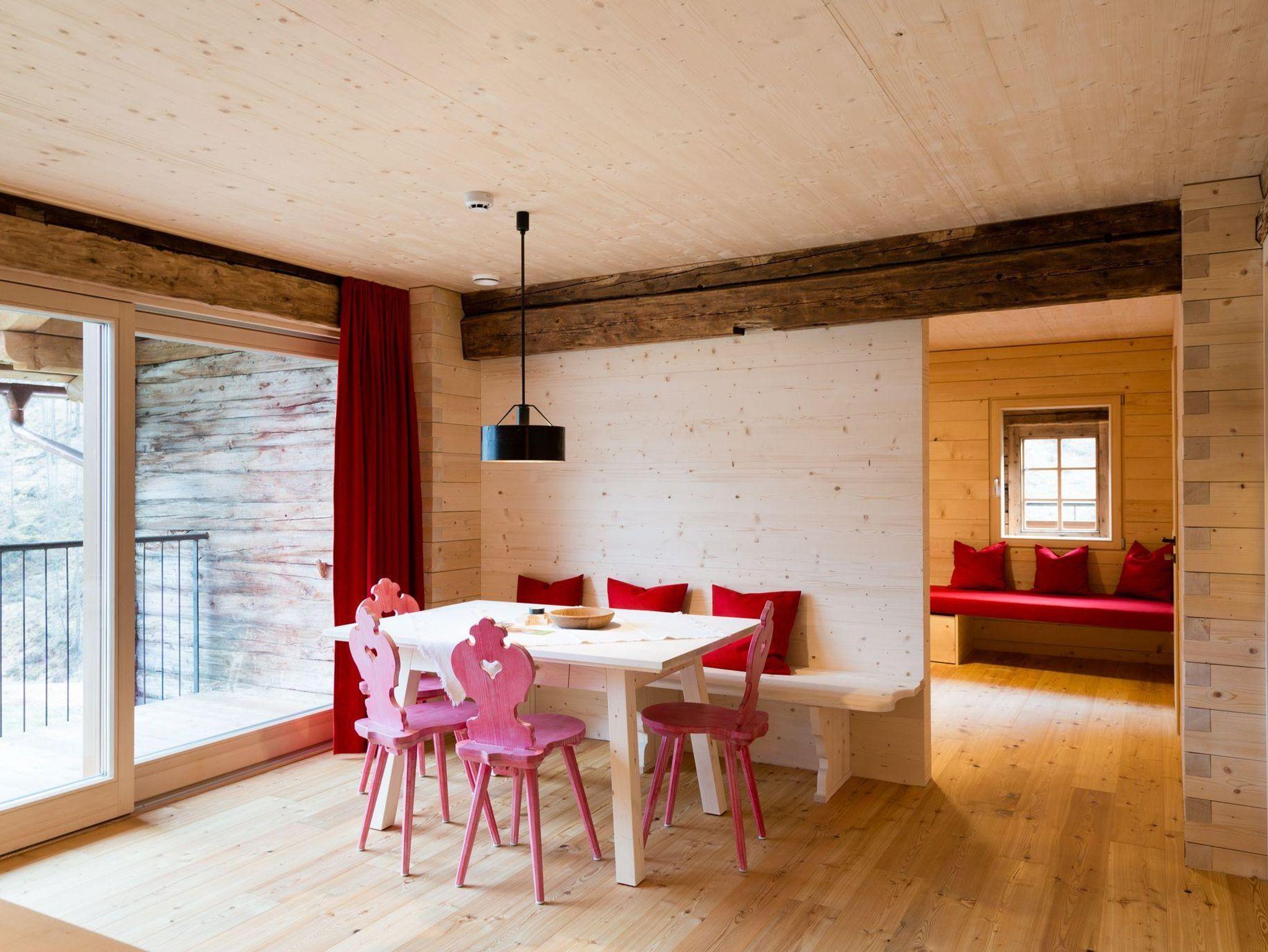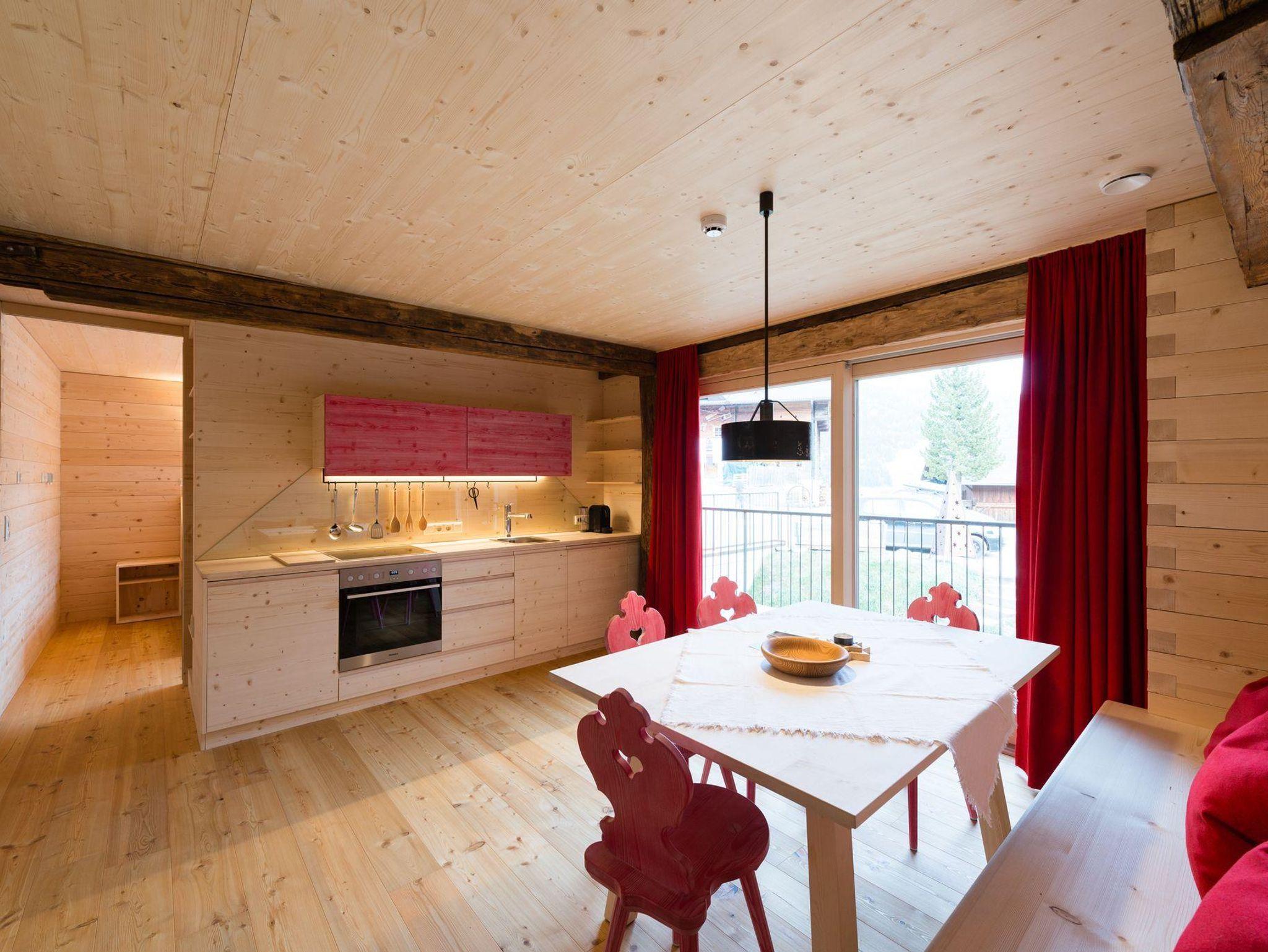 Diese Ferienwohnung im Giatla Haus ist Natur pur. Gebaut rein biologisch, ohne chemische Stoffe. Die Wände sind aus Holz und Glas, die Böden aus Holz oder hochwertigen Fliesen, die Dämmung und die Betten aus Schafwolle. Gesund und einzigartig in Europa. Mit modern gestalteten Möbelstücken aus Zirbenholz, einem fantastischen Ausblick auf die umliegende Villgrater Bergwelt und einer durchgehenden Massivholzausstattung bieten die vier Wohneinheiten alles was das Herz begehrt.