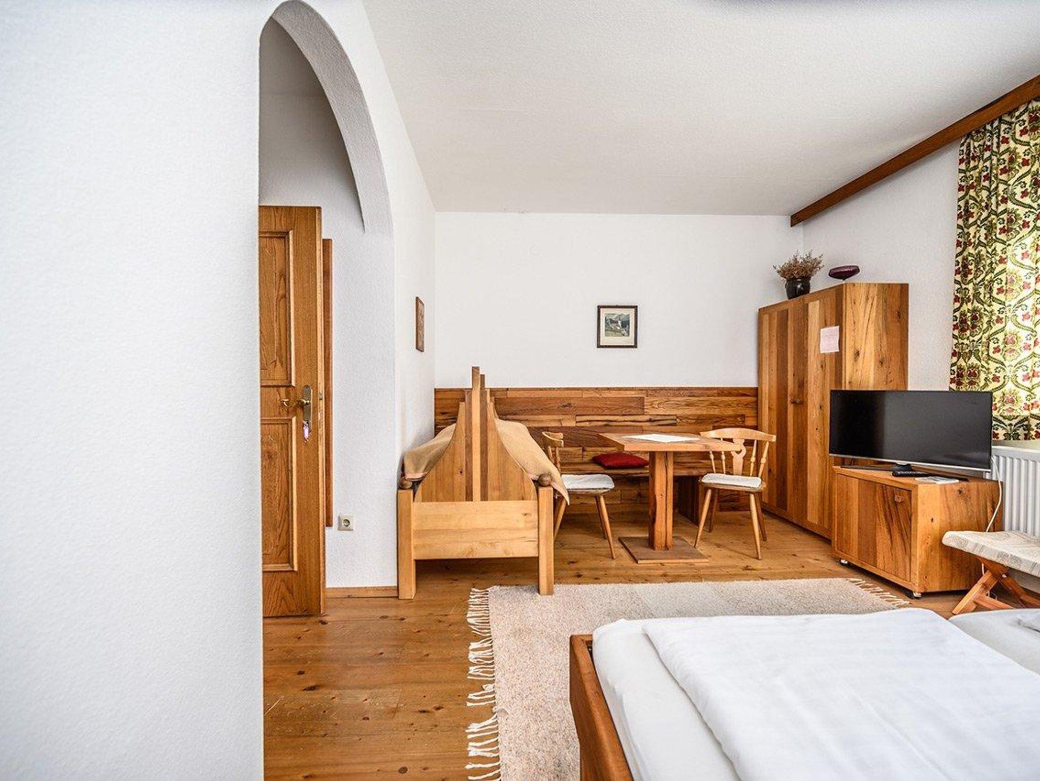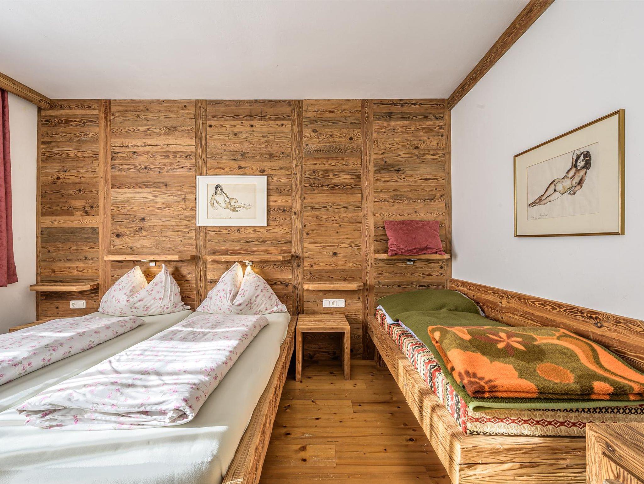 Das Duo bietet ein großes Doppelbett aus Altholz sowie bei Bedarf ein Kinderbett. Das Panoramafenster ist Richtung Norden ausgerichtet, was dem Duo eine erfrischende, klare Energie verleiht. Bad mit Dusche im Zimmer, WC am Gang.
