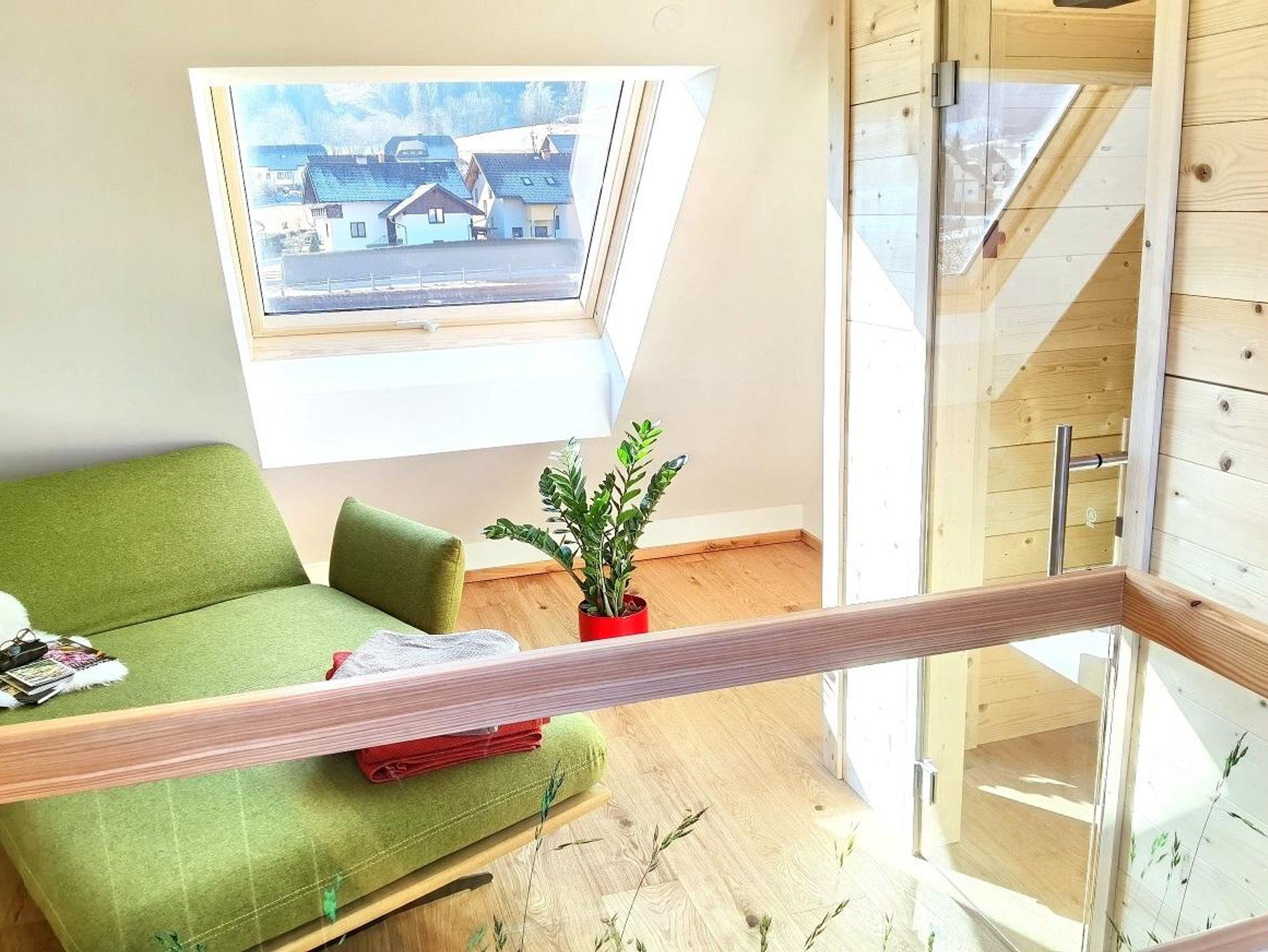Ein harmonisches Miteinander aus alten und neuen Möbeln verleiht der Wohnung eine gemütliche Atmosphäre. In der Dachgalerie lädt die wohnungseigene Infrarotkabine zum Entspannen ein.