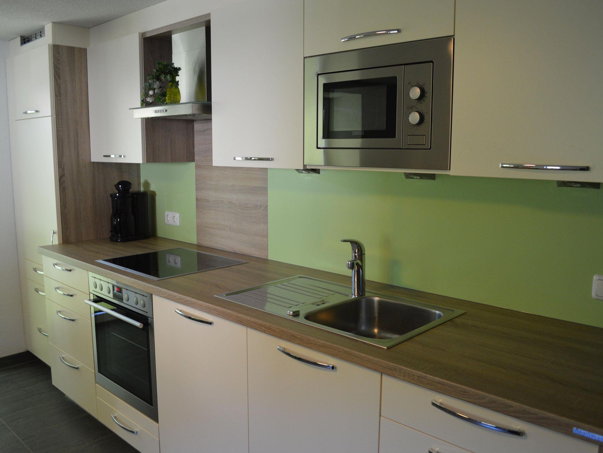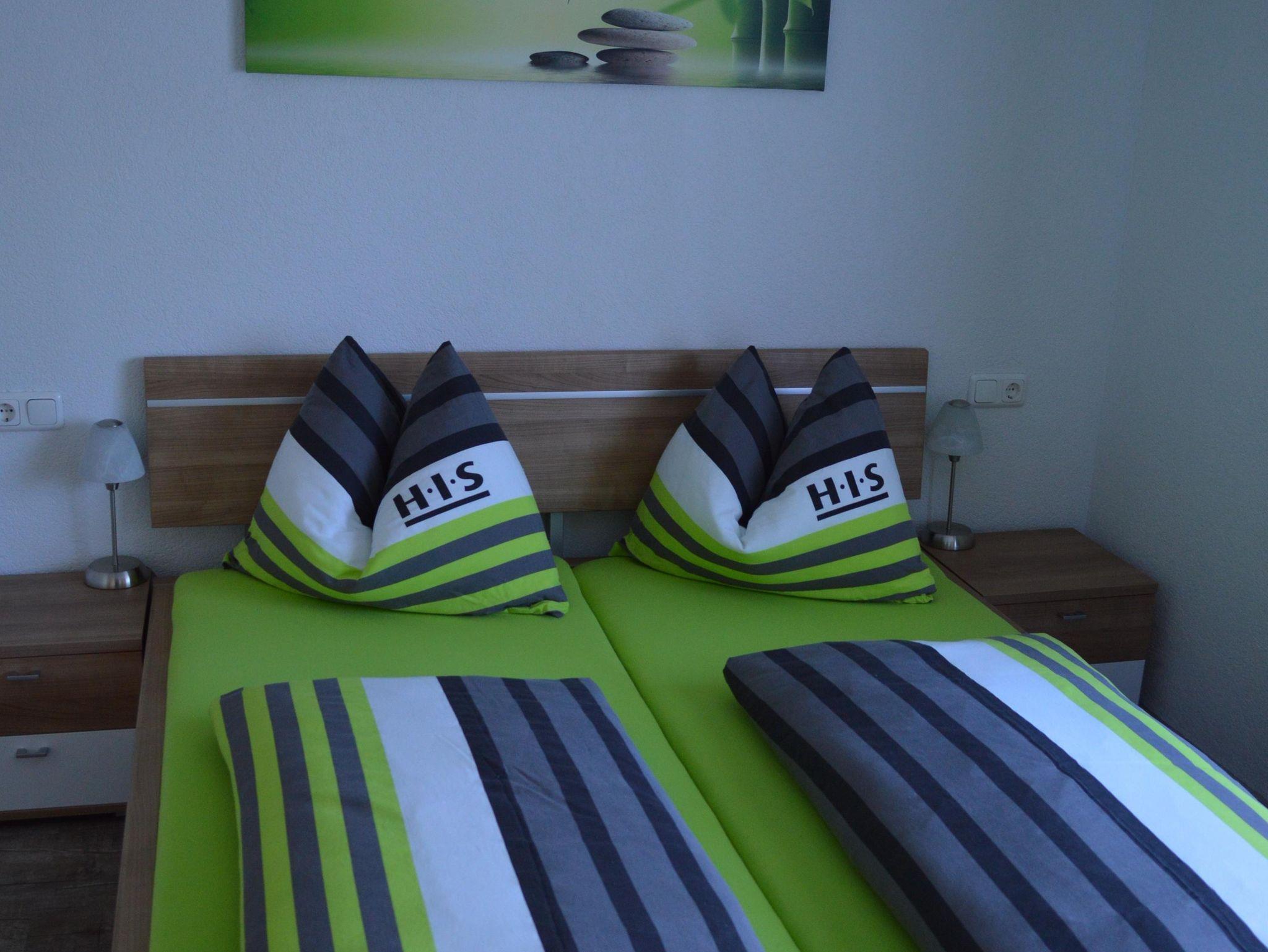 Komfort Appartement (65 m²) für bis zu 5 Personen, große Küche, 1 Schlafzimmer für 2 Personen, 1 Schlafzimmer für 3 Personen, Bad mit Badewanne und Dusche, separates WC, Digital-SAT-TV, gratis W-Lan, großer Balkon südseitig, Parkplatz