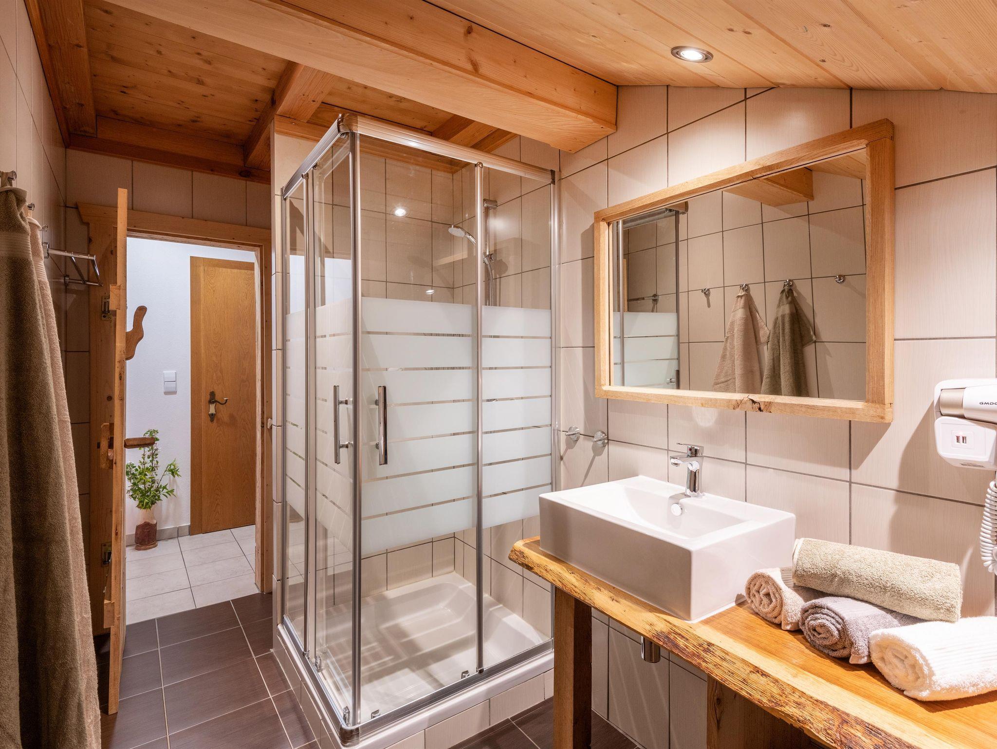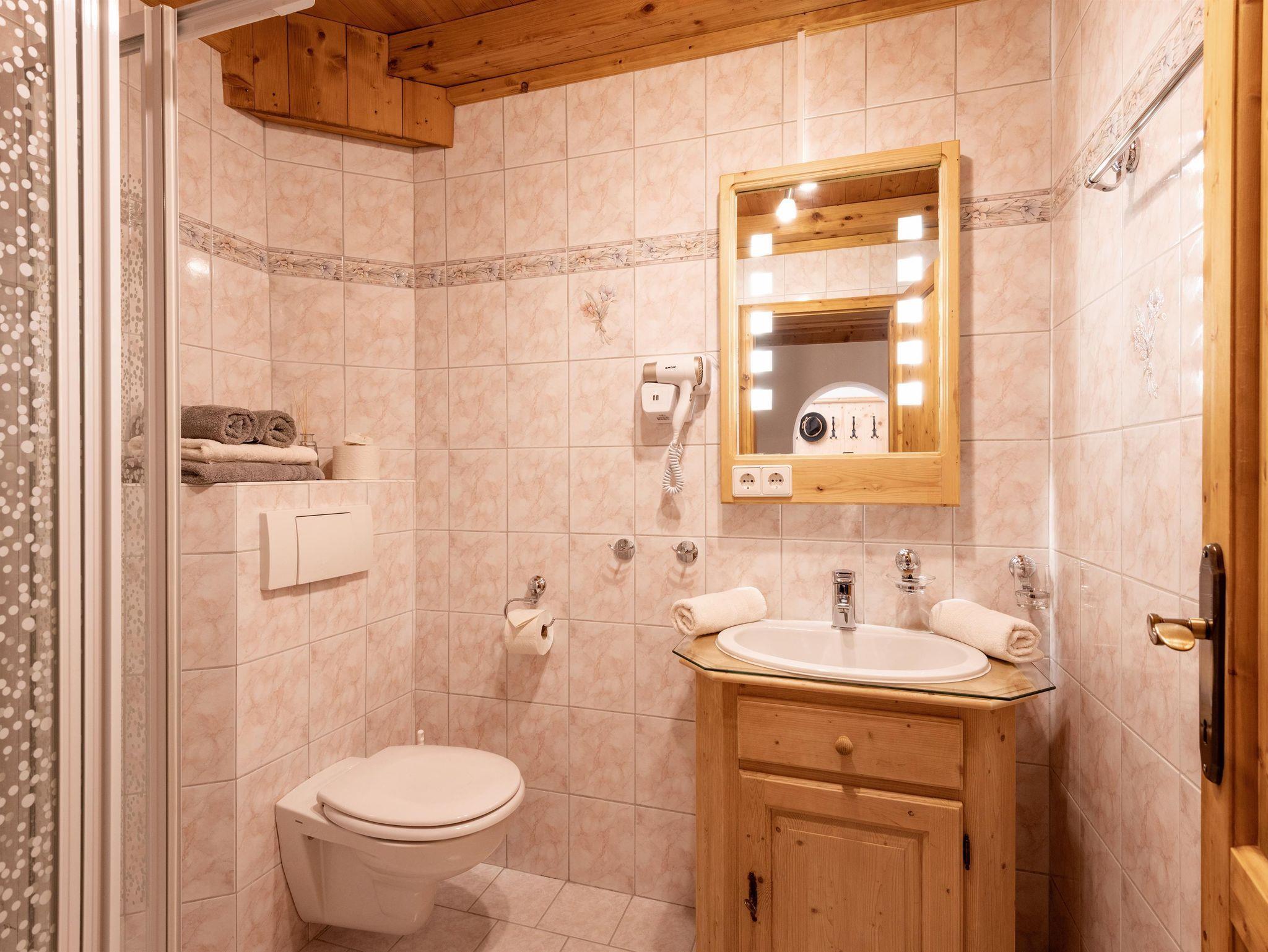 Die Dusche ist inklusive WC und Haarföhn und pro Person ein Hand- und Badetuch.
