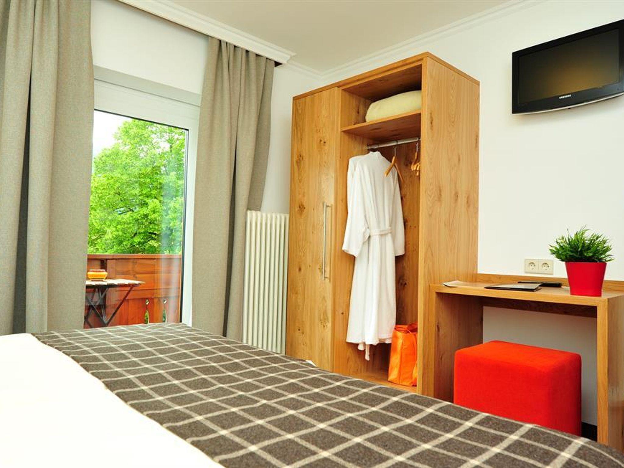 Doppelzimmer mit Dusche, WC und teilweise Balkon. Kabel-TV,Haarföhn,Zimmersafe und Radiowecker. Bademantel u. Badepantoffel