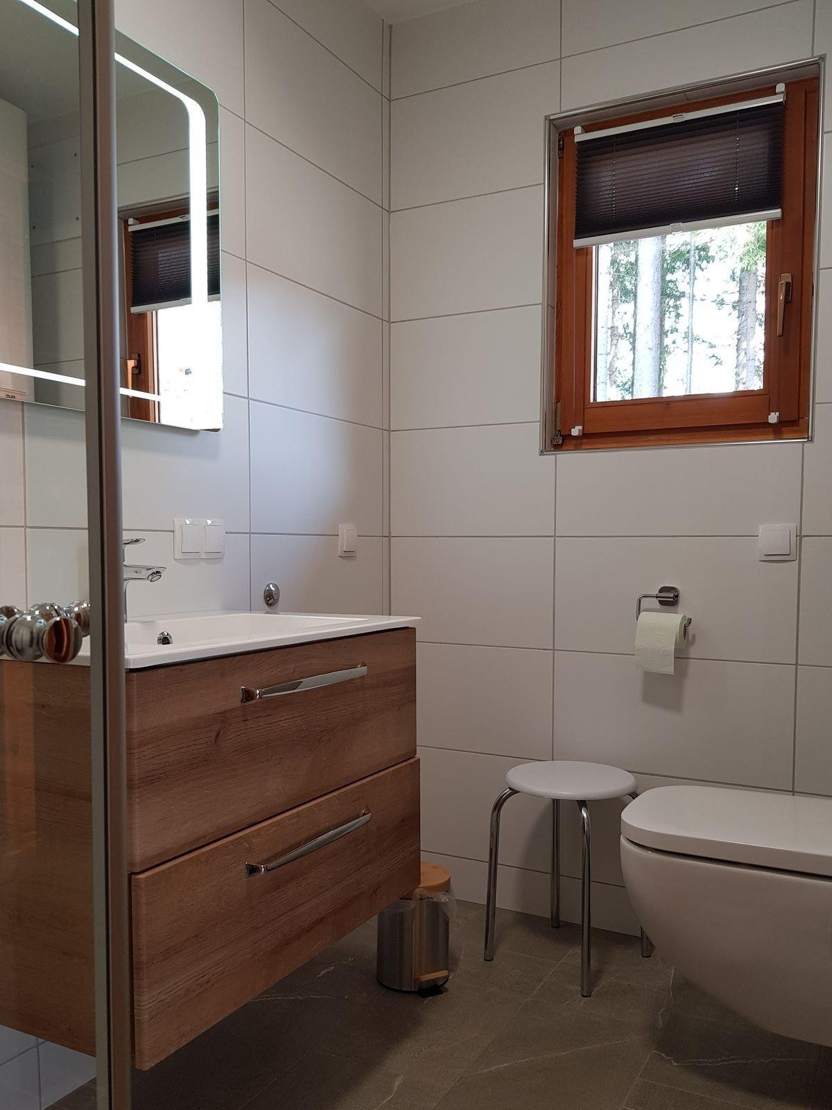 Ein Badezimmer mit Dusche und WC sorgt für Komfort während des Aufenthalts.