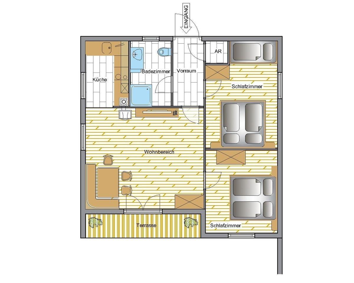 Die Langhans Hütte bietet auf 57 m² Platz für bis zu 6 Personen:
