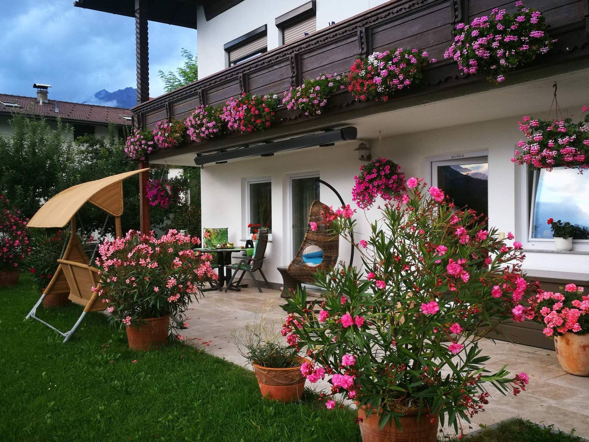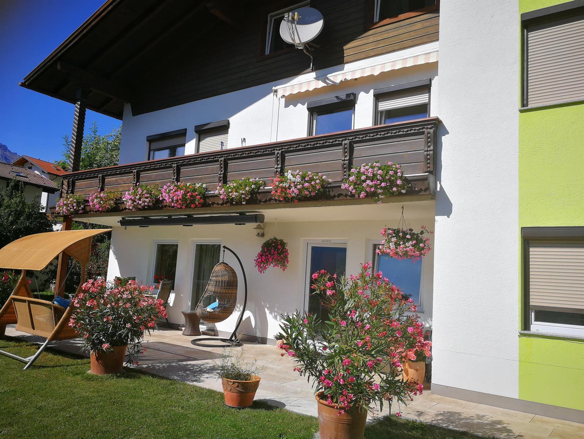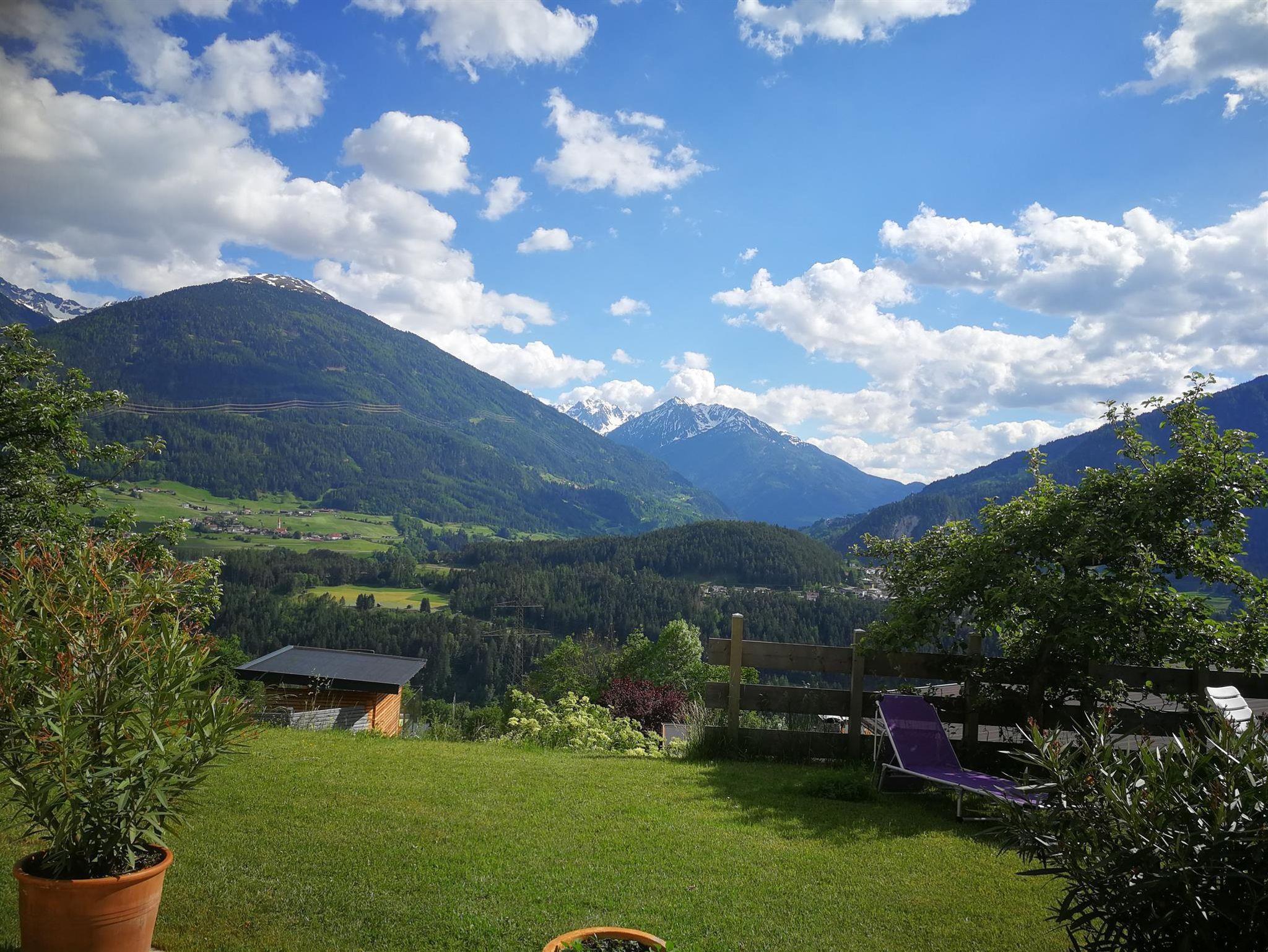 Unser Haus liegt auf dem Sonnenplateau Karrösten mit wunderschönem Rundblick auf die umliegenden Berge auf ca. 1000 hm.