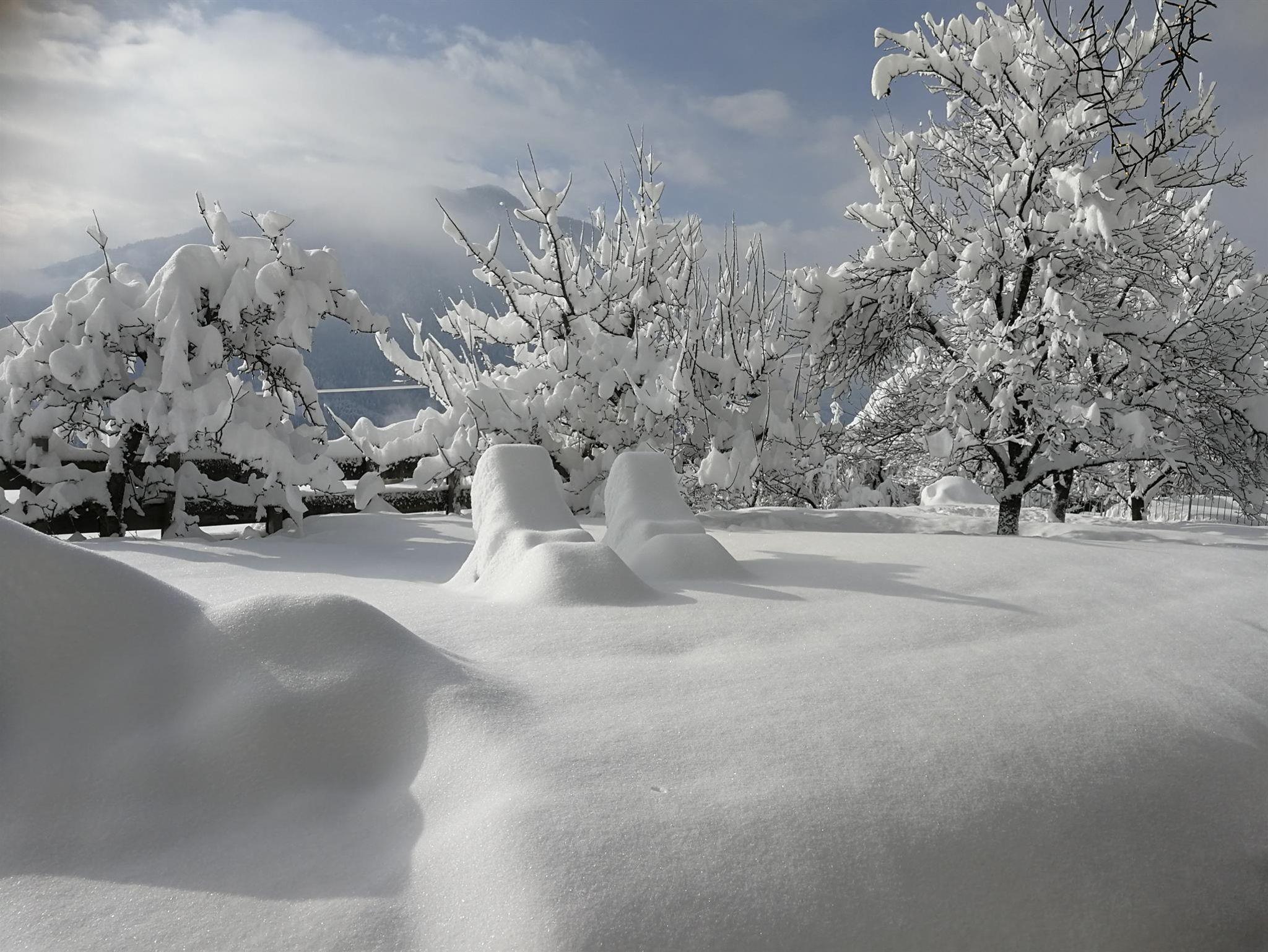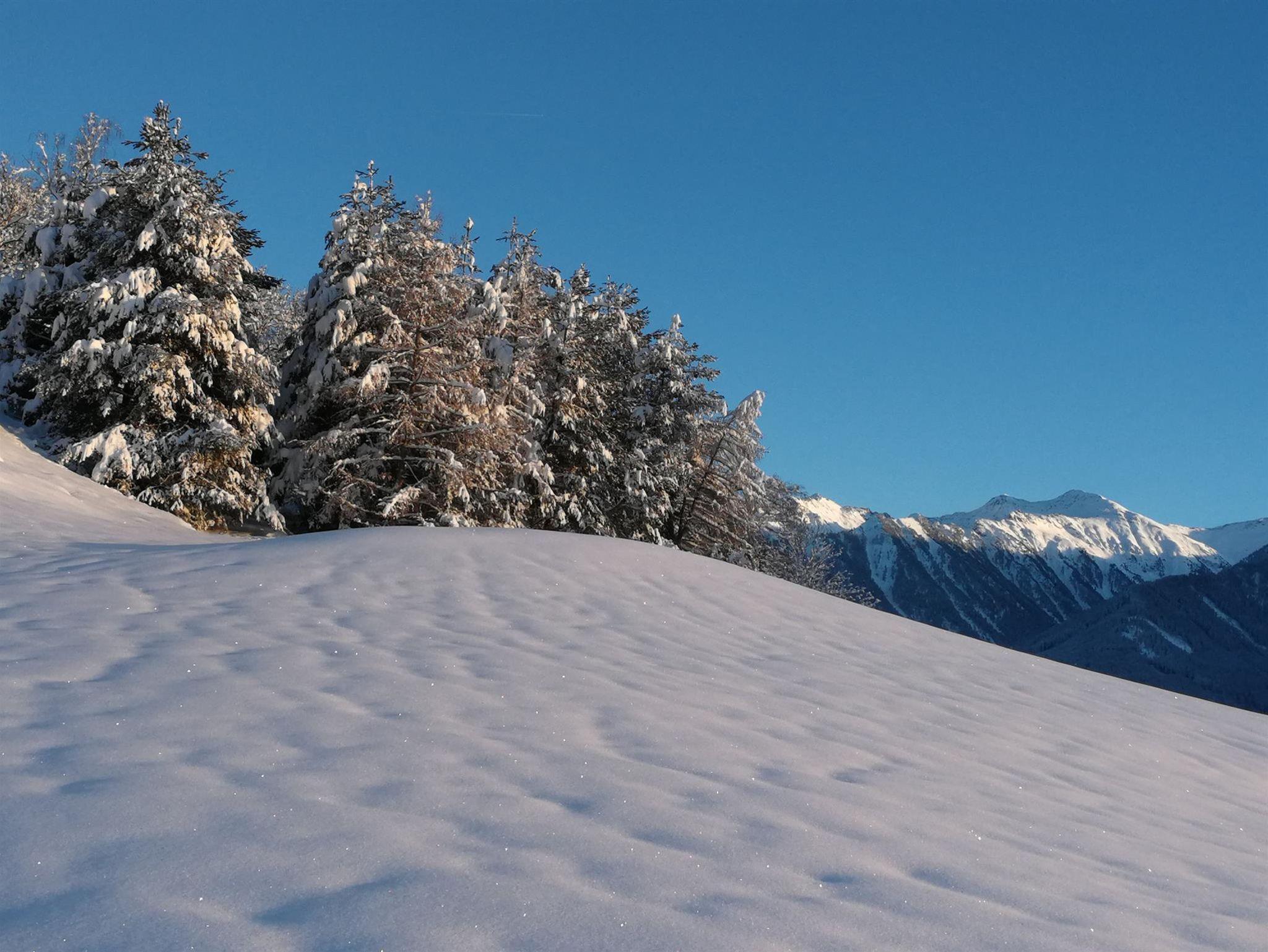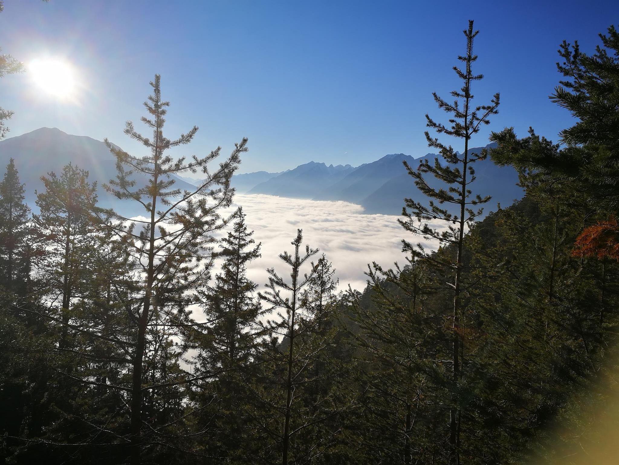Unser Haus liegt auf dem Sonnenplateau Karrösten mit wunderschönem Rundblick auf die umliegenden Berge auf ca. 1000 hm.