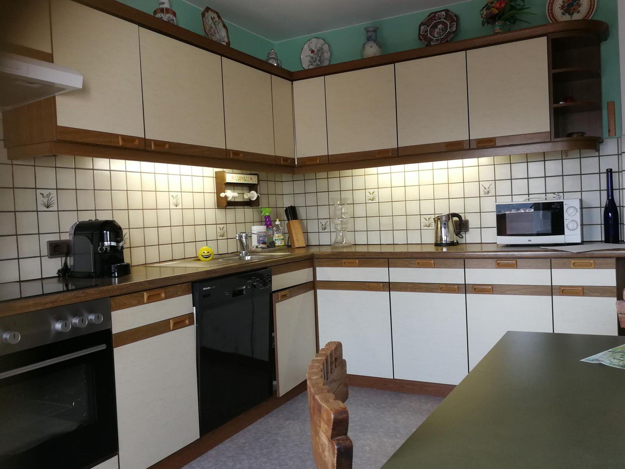 - voll eingerichtete und möblierte Küche mit Zugang zum Panoramabalkon (Geschirrspülmaschine, Kaffeemaschine mit Kapseln, Esstisch mit Eckbank, E-Herd mit Backofen und Cerankochfeld, Dunstabzug, Mikrowelle, Kühlschrank, Wasserkocher, komplette Geschirr und Besteck, Basisgewürze, Küchenrolle, Geschirrtücher, Spülmittel, Mixer)