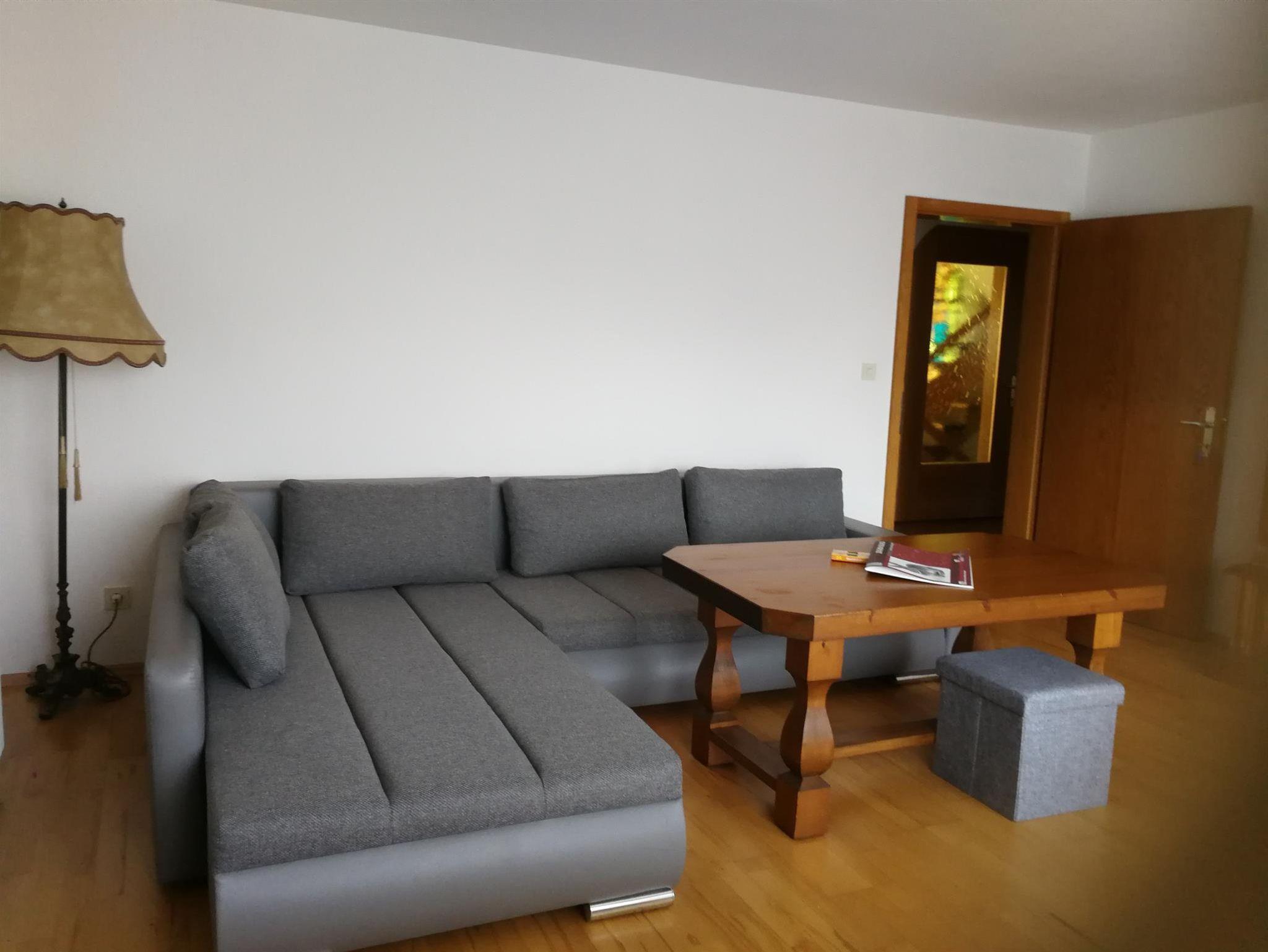 - Wohnzimmer mit Panoramafenster, Schlafsofa für 2 Personen und Sat - TV, Zugang zum Panoramabalkon