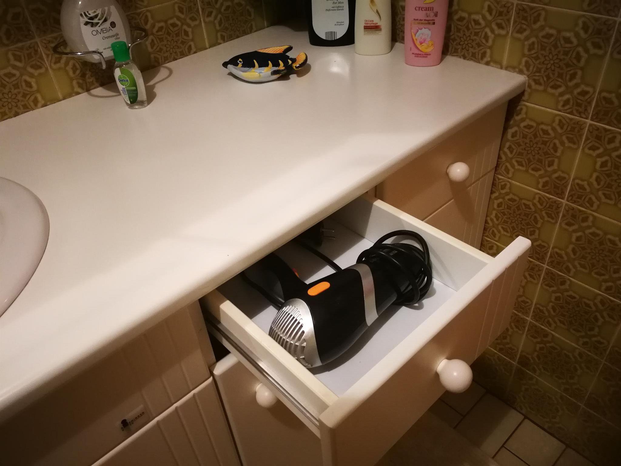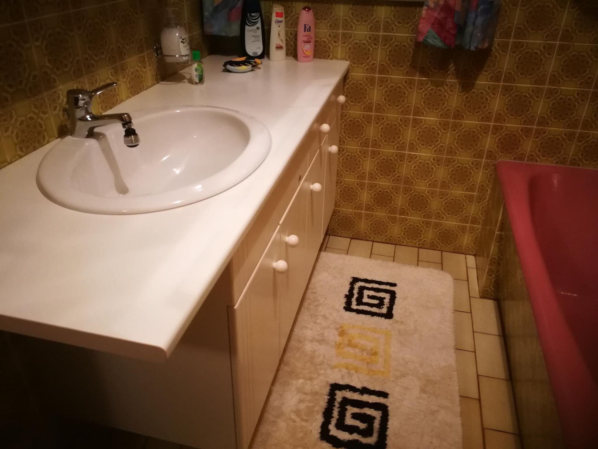 - Badezimmer (Waschtisch, Badewanne mit Dusche, Badeschrank, Bade- und Handtücher, Haartrockner, Pflegeprodukte, Desinfektionsmittel)
