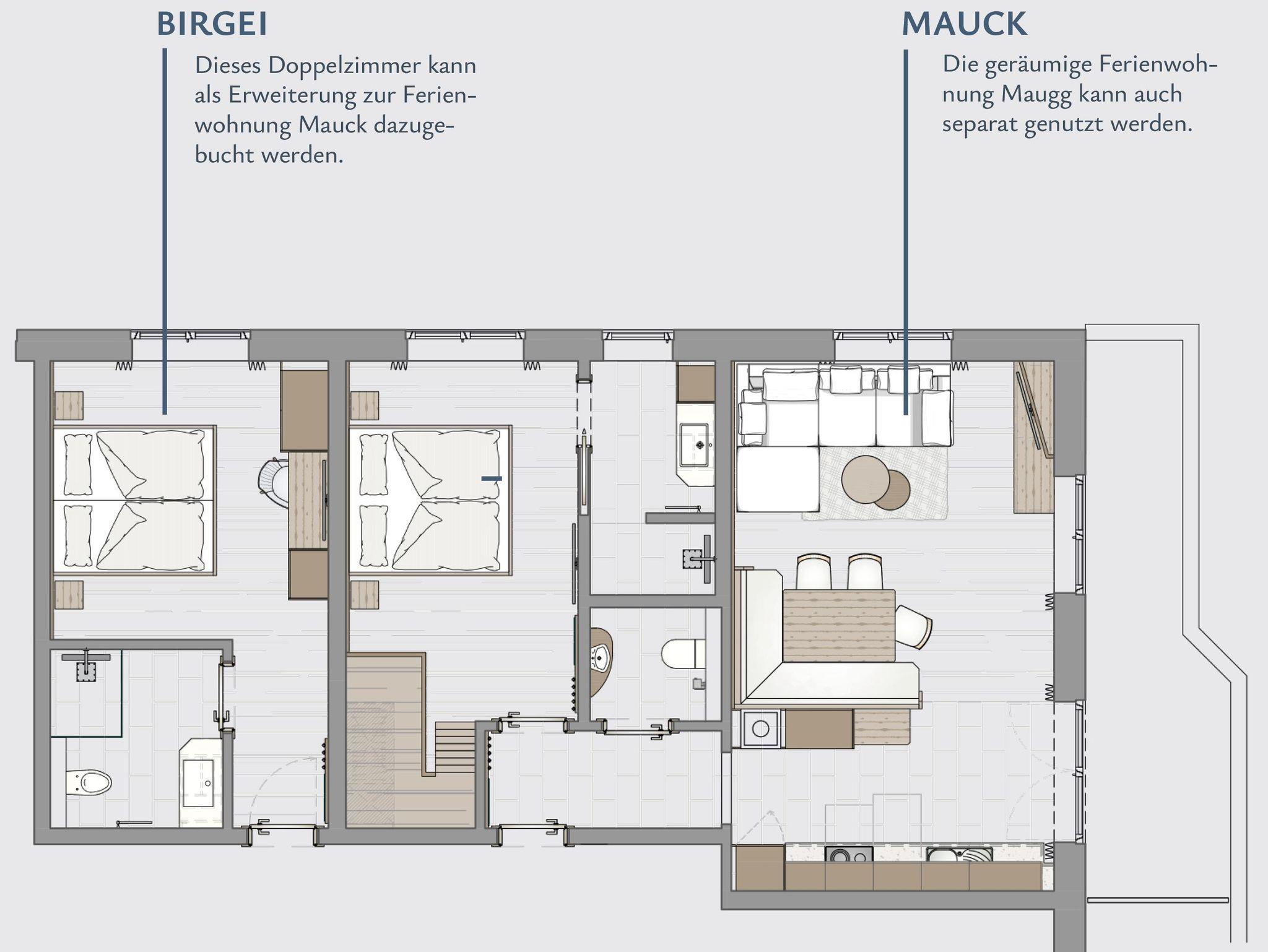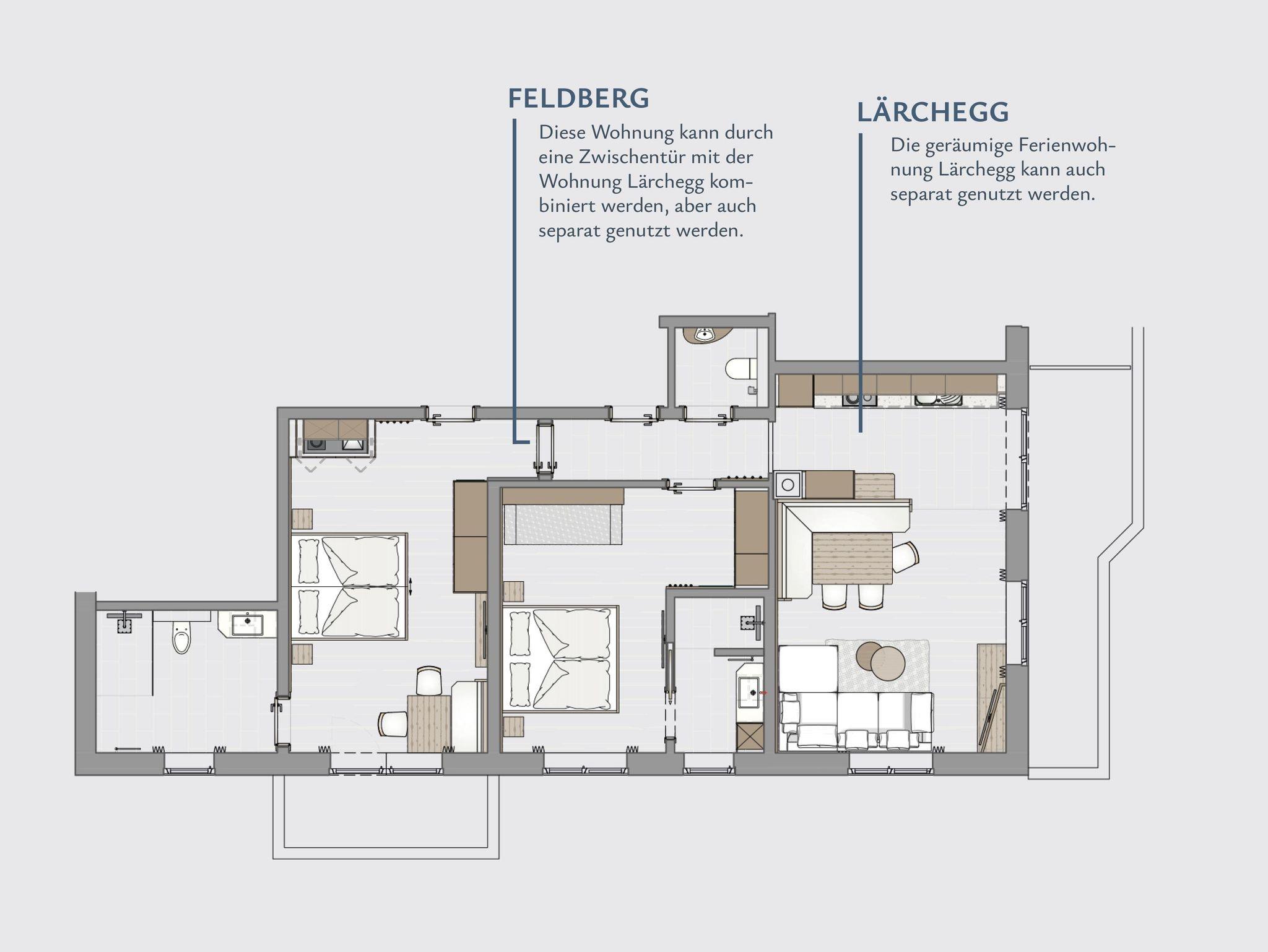 Mix & Match Diese Wohnung ist für bis zu 6 Personen durch Erweiterung mit Wohnung Feldberg möglich. Sprechen Sie uns gerne an.