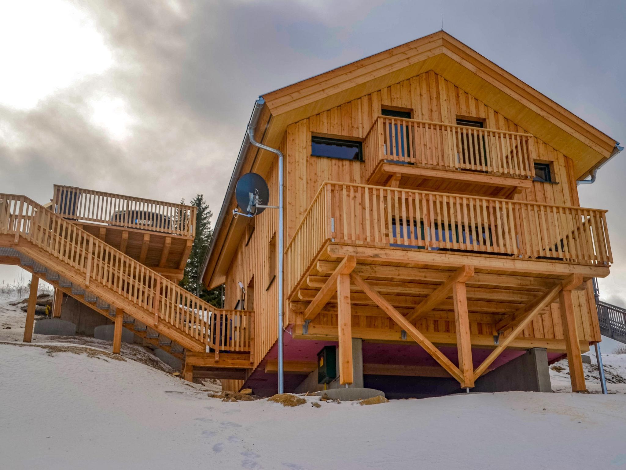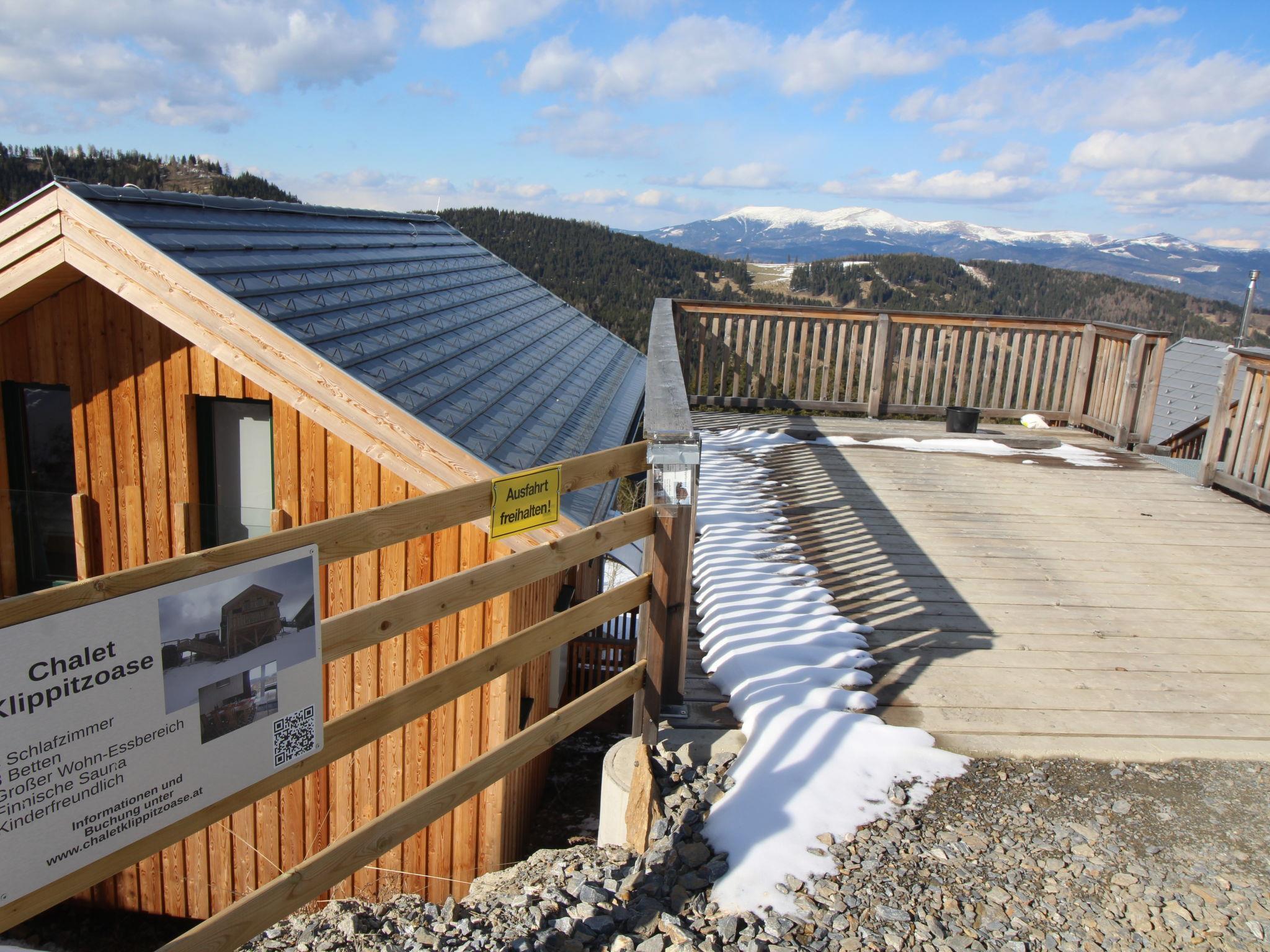 Klippitztörl: Cosy, comfortable chalet "Klippitzoase", 1'600 m a.s.l., 2 storeys. In the district of Kliening, in a sunny position on a slope, 600 m from the skiing area. For shared use: natural state property. Private: natural state property. In the house: WiFi, sauna, sun terrace. Bumpy motor access to the house (1 km via unmade road). In Winter: please take snow chains. Parking at the house. Grocery 15 km, restaurant 1 km, bus stop "Bad St. Leonhard Moosweg (West)" 14.9 km, bathing lake "Längssee" 35 km. Walking paths from the house 10 m, chair lift 600 m, slopes 300 m, ski rental 300 m, ski school 2 km, sled run 2 km. Nearby attractions: Sommerrodelbahn, Klettergarten 2 km. Hiking paths: Koralm, Saualm, Lavanttaler Alpen. Please note: car recommended. In case of good snow conditions, the house is accessible on skis. Self-service machine for food and everyday items in 500m. According to information from the provider, due to the geographical location on the mountain, WiFi reception cannot be guaranteed continuously and is highly dependent on the weather. Please note that the key handover takes place directly at the house.