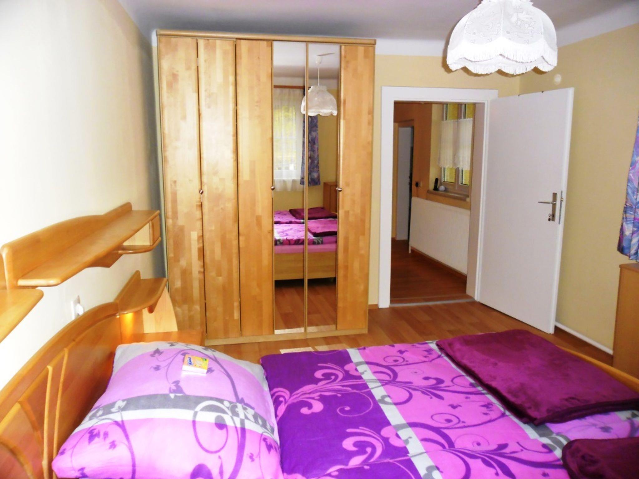 Die Ferienwohnung befindet sich im 1. Stock des Einfamilienhauses. Sie hat ein Schlafzimmer mit Doppelbett und ein getrenntes Schlafzimmer mit 2 getrennten Betten. Daher ist diese Wohnung ideal für Familien mit 2 Kindern. In der dazwischen liegenden Wohnküche kann man gemütlich zusammen sitzen und schöne Stunden mit seiner Familie verbringen. Außerdem kann man sich nach einem schönen Schitag in der Badewanne entspannen und zu neuen Kräften kommen. Ausgestattet ist die Küche mit einer Filterkaffeemaschine, Teekocher, Toaster, Mikrowelle, Minibackofen, und mit einem Kühlschrank mit kleinem Gefrierfach.
