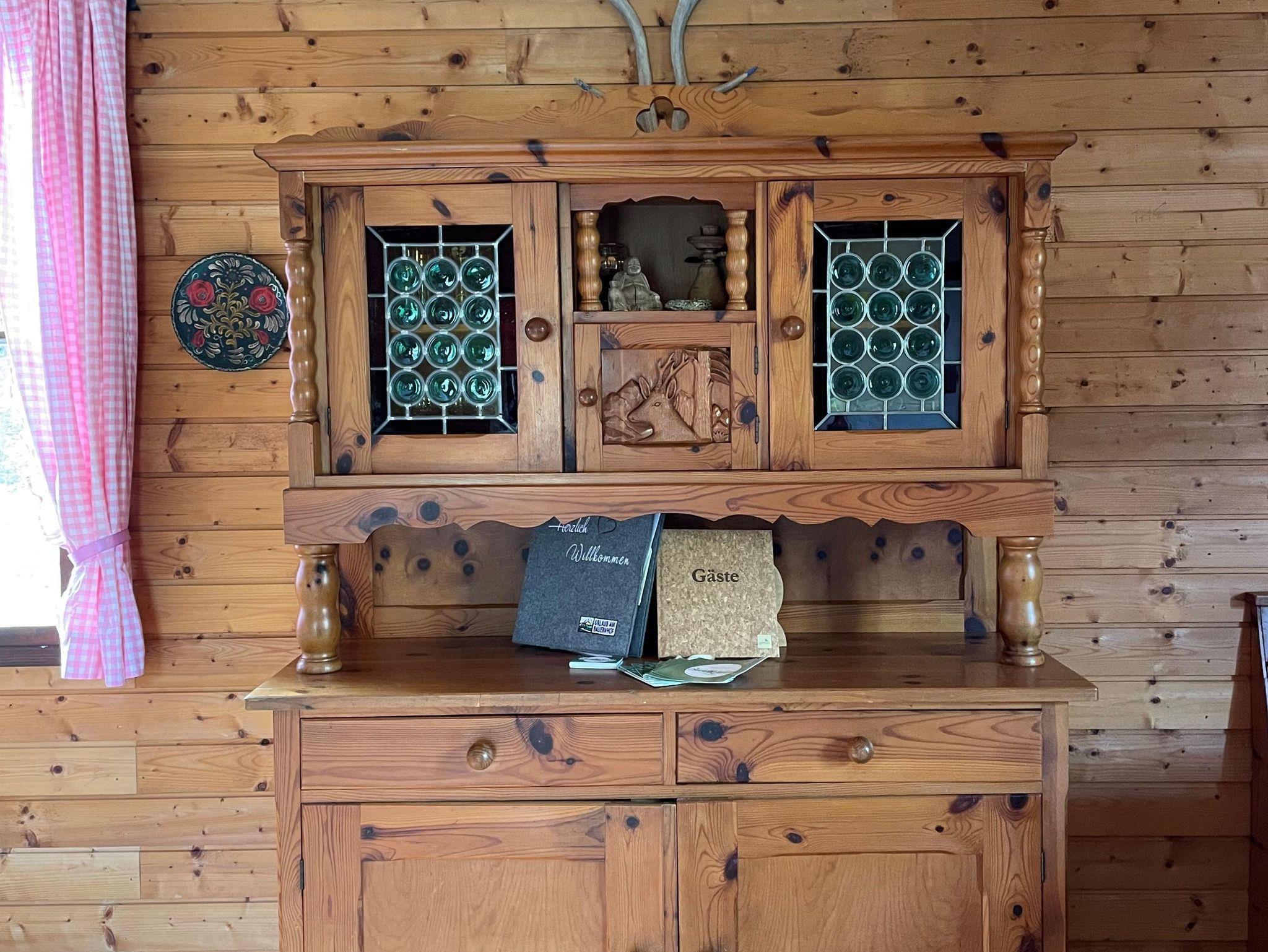 Das im Frühjahr 2023 erbaute Holzhaus wurde direkt am Waldrand des Ostrong-Massivs, der höchsten Erhebung im Waldviertel, erbaut und vermittelt eine gemütliche und nostalgische Stimmung, die durch das Innendesign des Hauses nochmals unterstützt wird. Die Stockbetten aus Holz für die Nachtruhe, die für insgesamt 4 Menschen Platz bieten, die mit Schnitzereien verzierte Anrichte und der knisternde Holzofen, auf dem auch gekocht werden kann, runden die einladende und angenehme Atmosphäre ab.