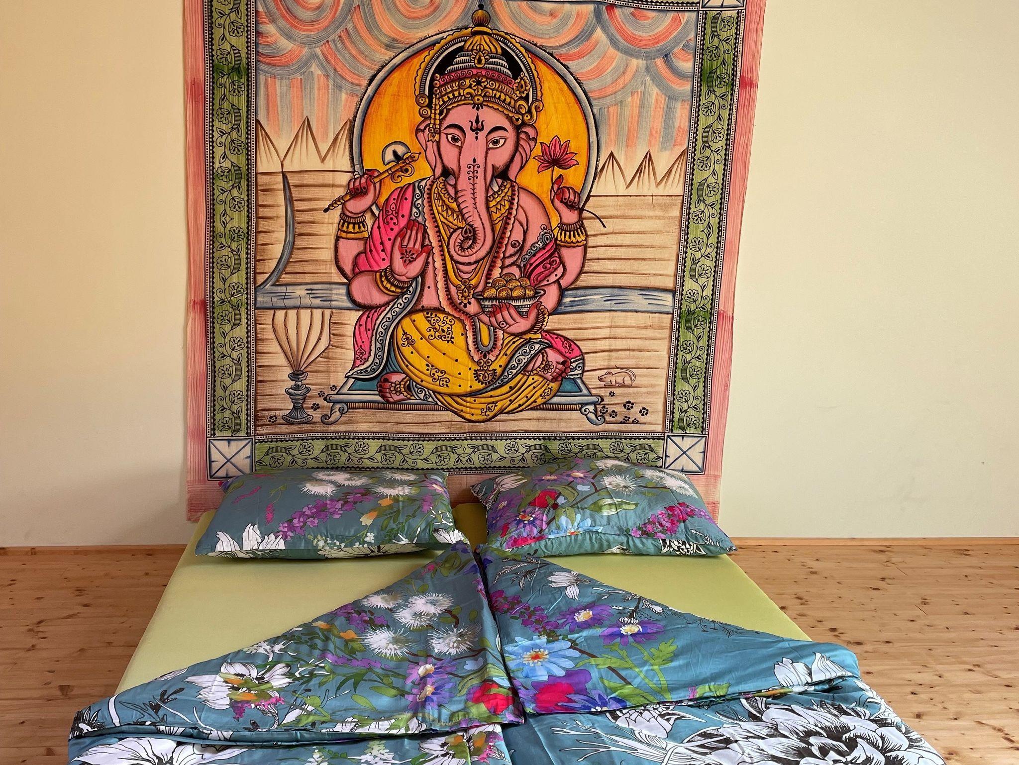 Das Schlafzimmer bietet auf Matratzenlager-basis eine Schlafmöglichkeit für bis zu 6 Personen (größere Gruppen auf Anfrage), die Bettwäsche wird von uns kostenlos zur Verfügung gestellt. Ein Bad sowie eine getrennte Toilette vervollständigen den Komfort.