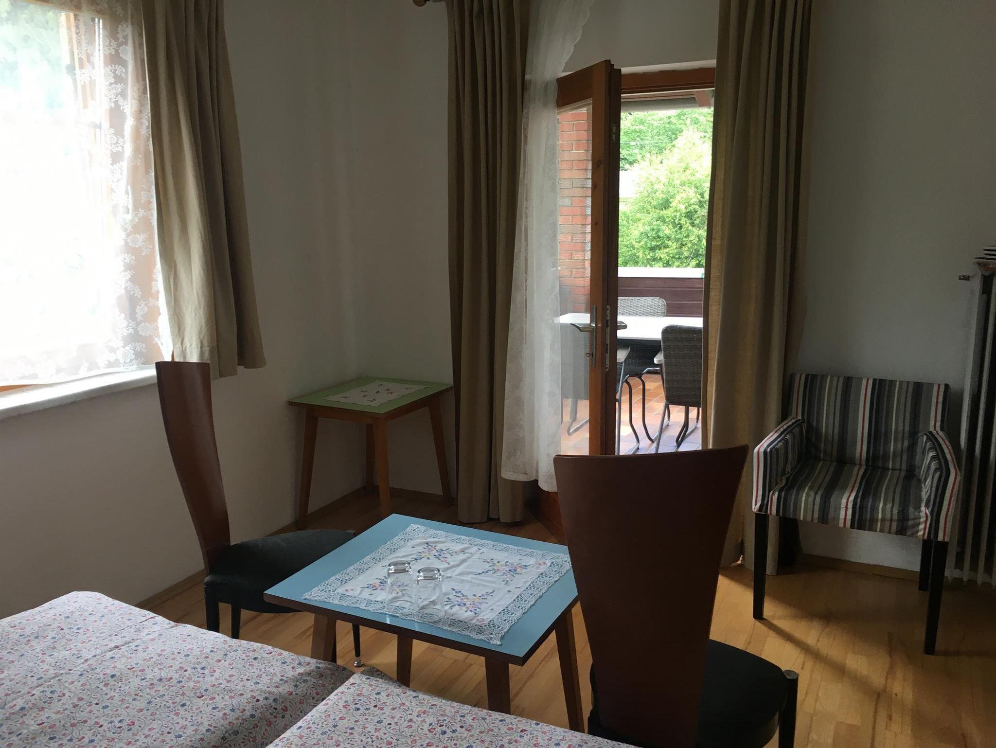 Die Gästezimmer sind gemütlich eingerichtet und verfügen über einen Balkon sowie Dusche/WC.