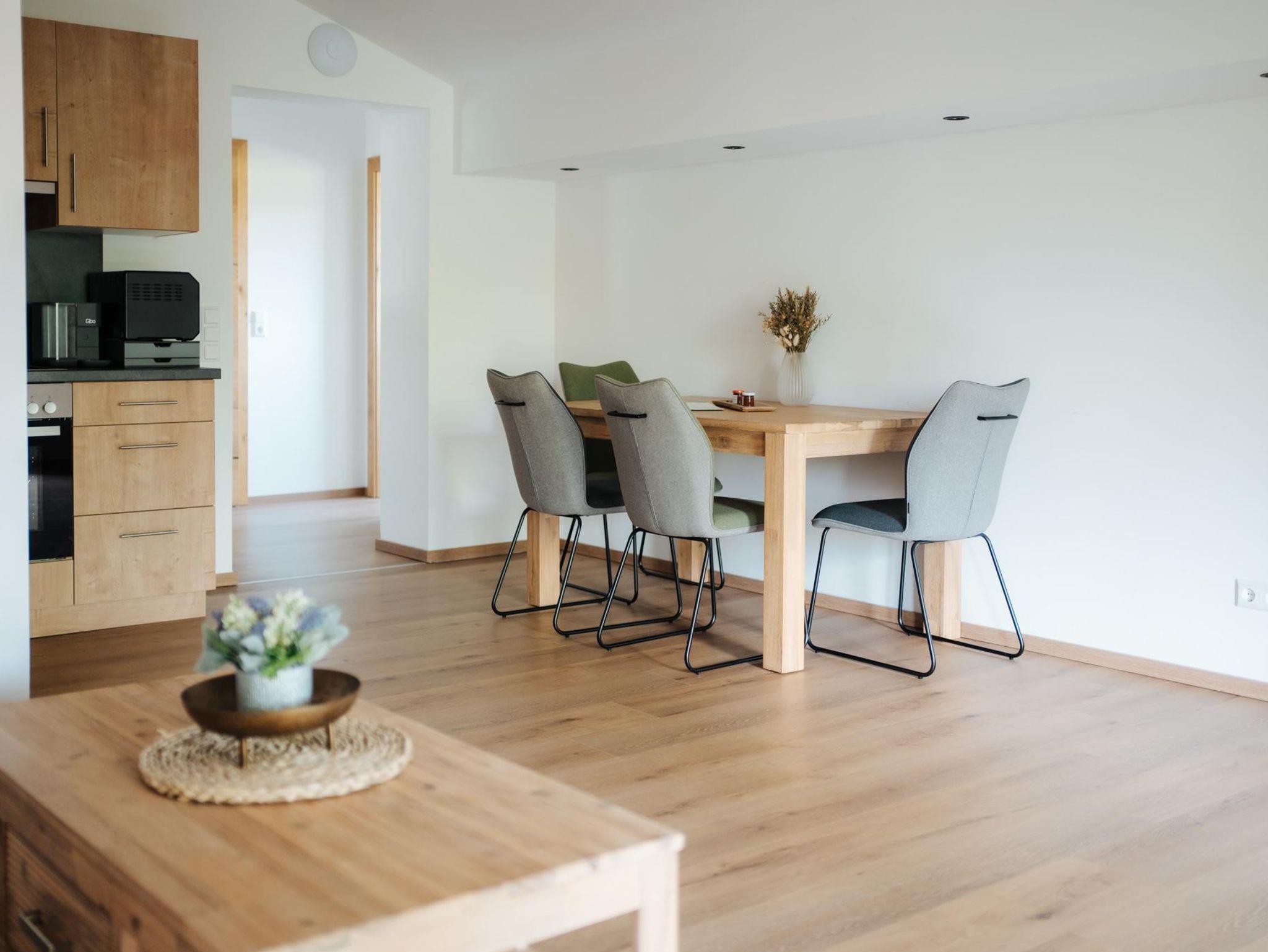 Gemütlich - Hochwertig - Hunde Willkommen Die Liebe zum Detail und eine hochwertige Ausstattung mit Vollholzmöbel prägen das Interieur der Villa Waidblick. Alle Appartements verfügen über eine voll ausgestattete Küche.