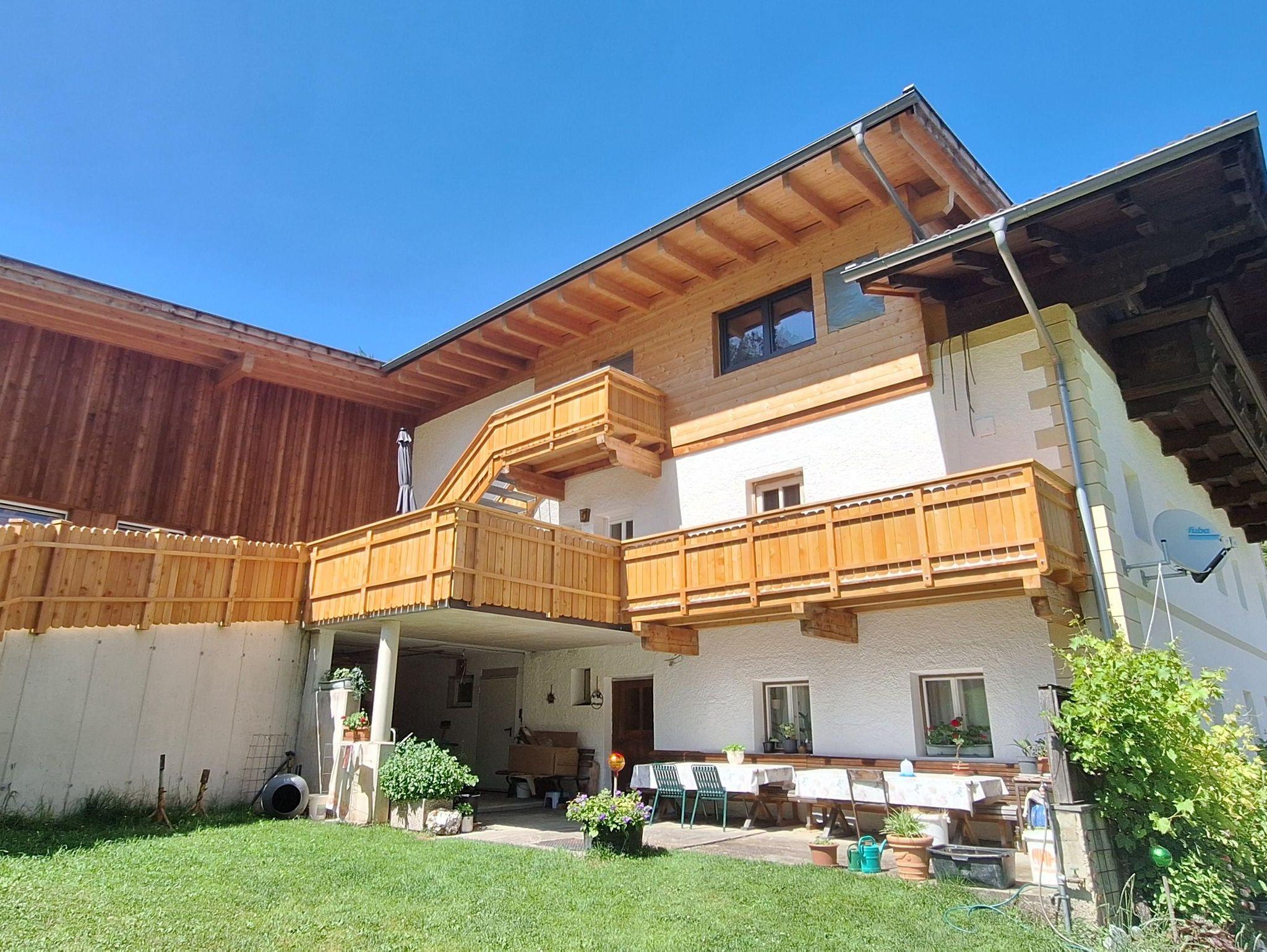 Am Balkon kann man den schönen Ausblick auf die Lienzer Dolomiten genießen .