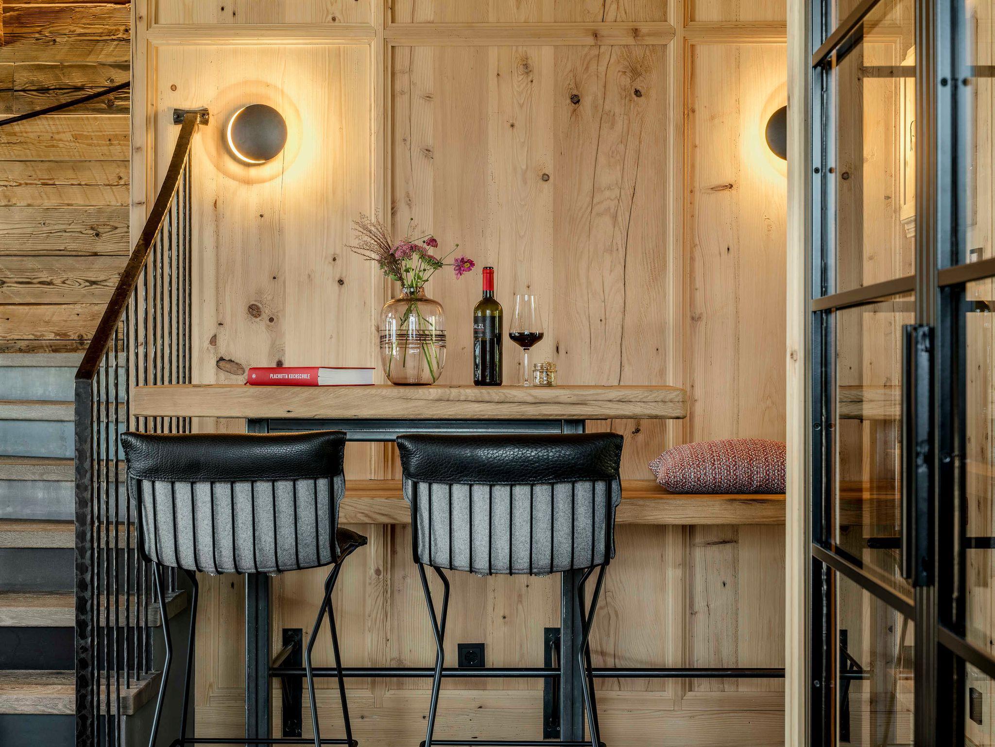 Murmeltiere und Langschläfer aufgepasst. Drei Doppelschlafzimmer mit Zirbenholzbetten sorgen für erholsamen Sommer- wie Winterschlaf. Eines davon im Obergeschoss mit hohem Sichtdachstuhl, Blick zu den Steinbergen, freistehender Badewanne und Regendusche. Zwei weitere Ruhepole finden sich im ersten Untergeschoss. Ein Masterbedroom mit großer Glasfront und Blick ins Tal, freistehender Badewanne und Regendusche. Sowie ein Schlafzimmer zur Terrasse mit großer Duschgrotte in schwarzen marokkanischen Fliesen.