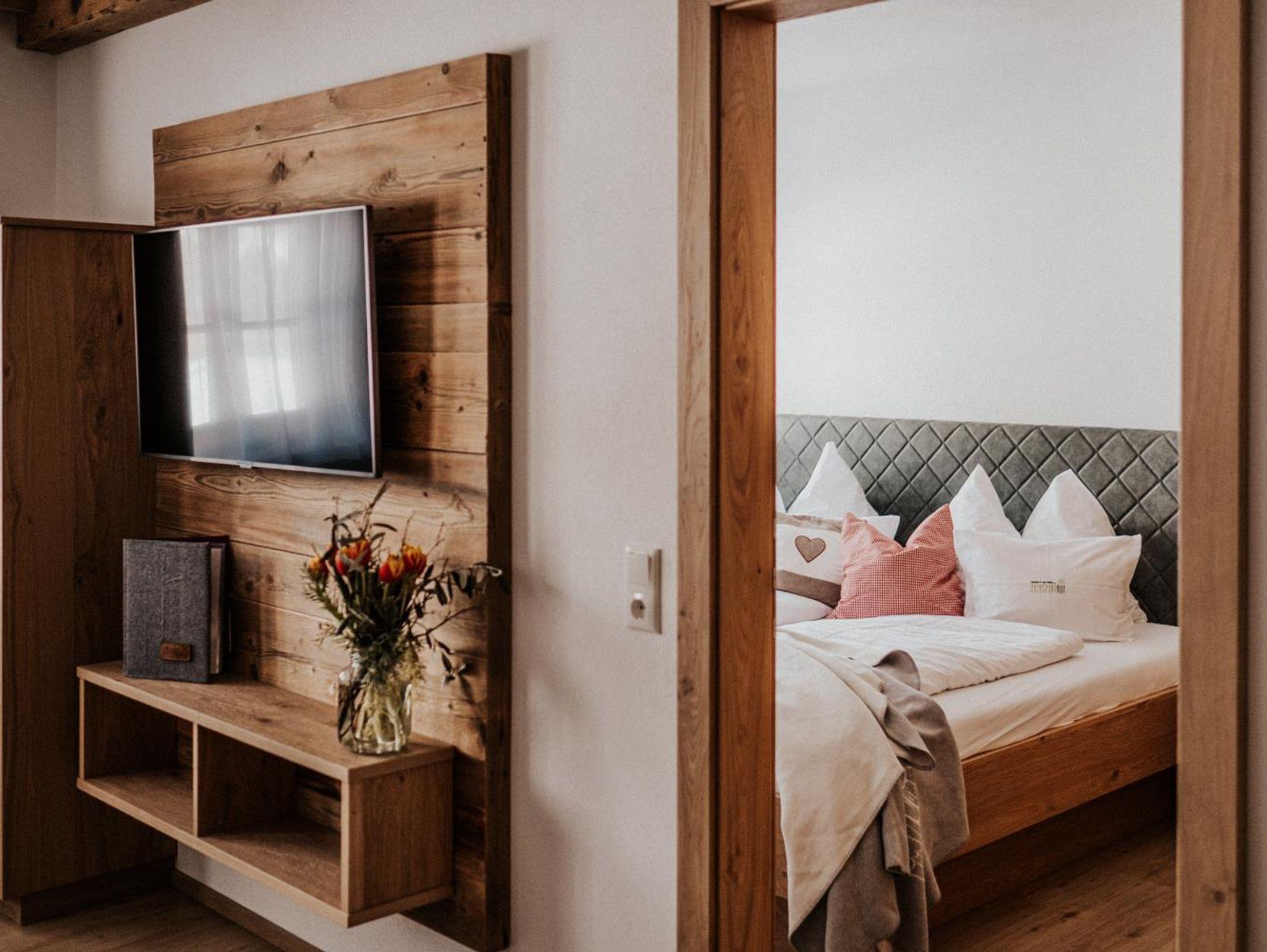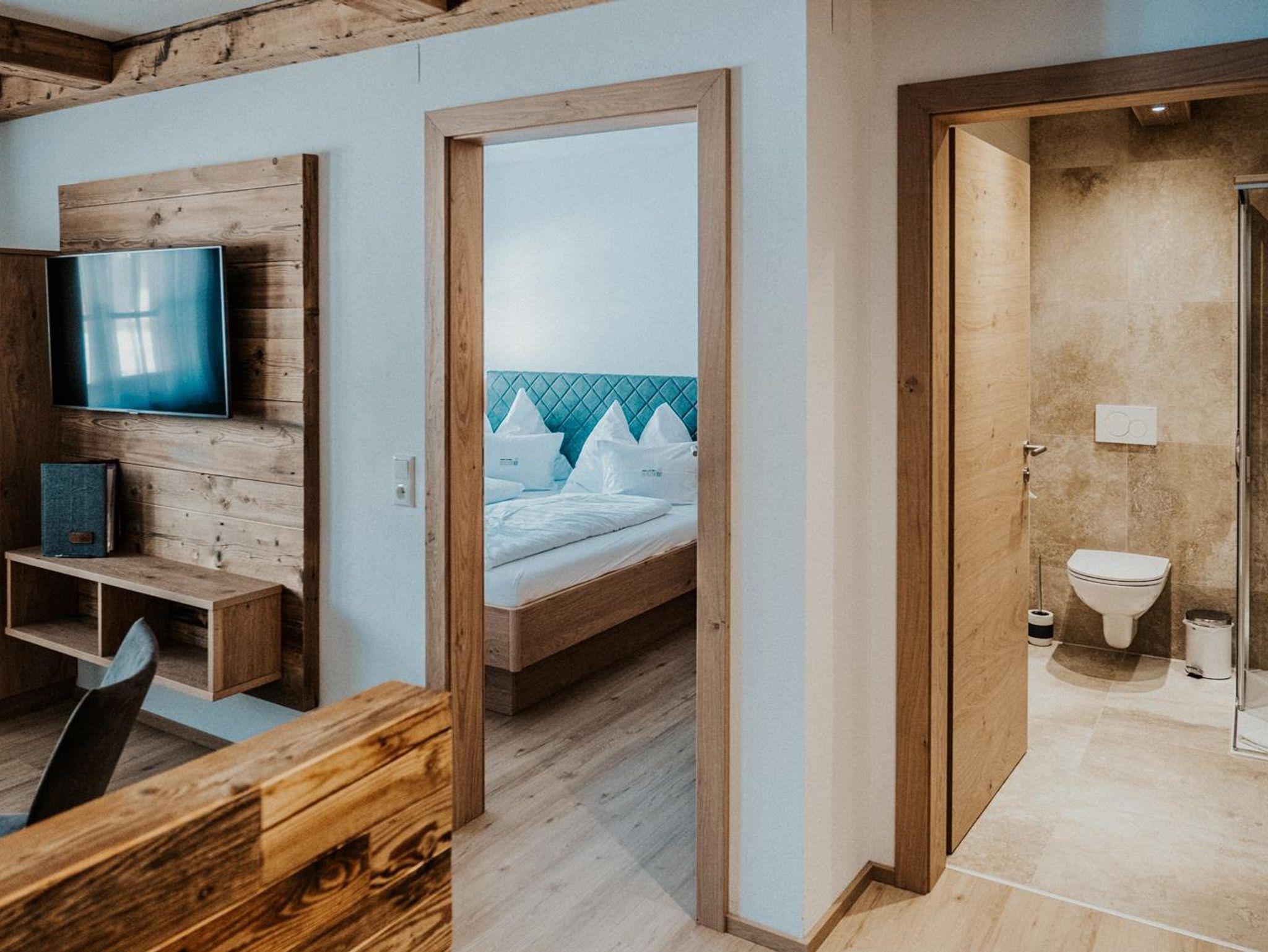 Allein, zu zweit, zu viert – unser „Bergblick“ passt sich wunderbar an Deine Reisegröße an. Das Appartement mit Aussicht auf die Leoganger Steinberge umfasst ein separates Schlafzimmer, ein Bad und eine vollausgestattete Küche mit Wohnbereich. Begleiten Dich Kinder, betten wir sie bequem auf der komfortablen Schlafcouch.