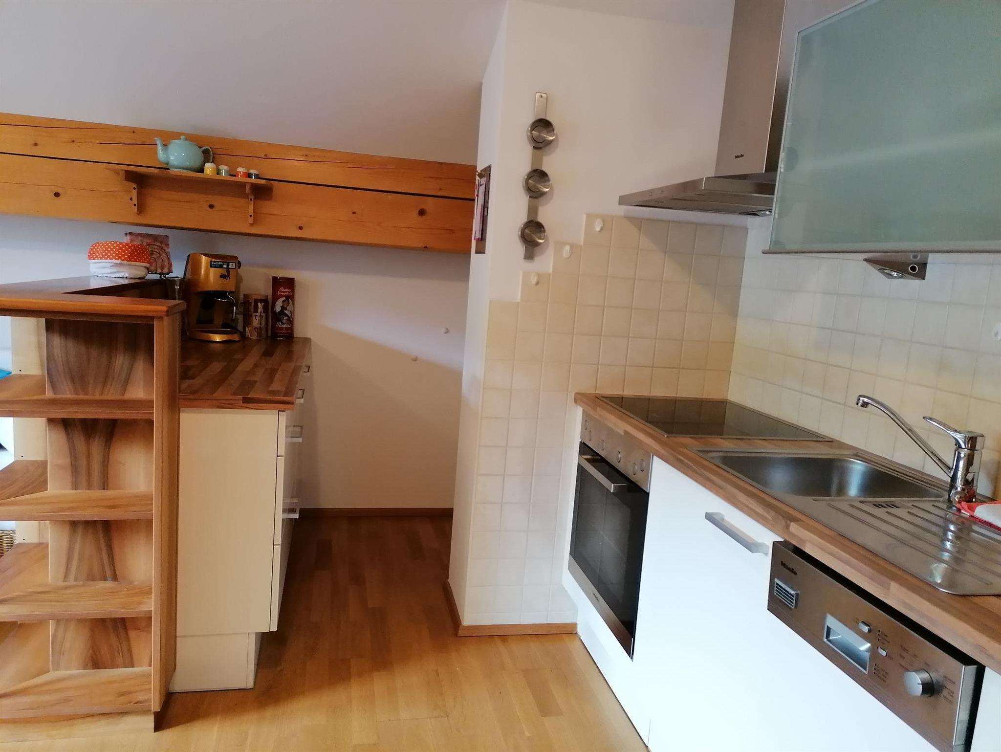 Gemütliche Wohnung im Dachgeschoß - bestehend aus: geräumigem Vorraum, Dusche/WC getrennt, Doppelzimmer, Wohnküche mit komplettt ausgestatteter Küchenecke, Essplatz sowie ausziehbarem Sofa; Balkon südseitig;
