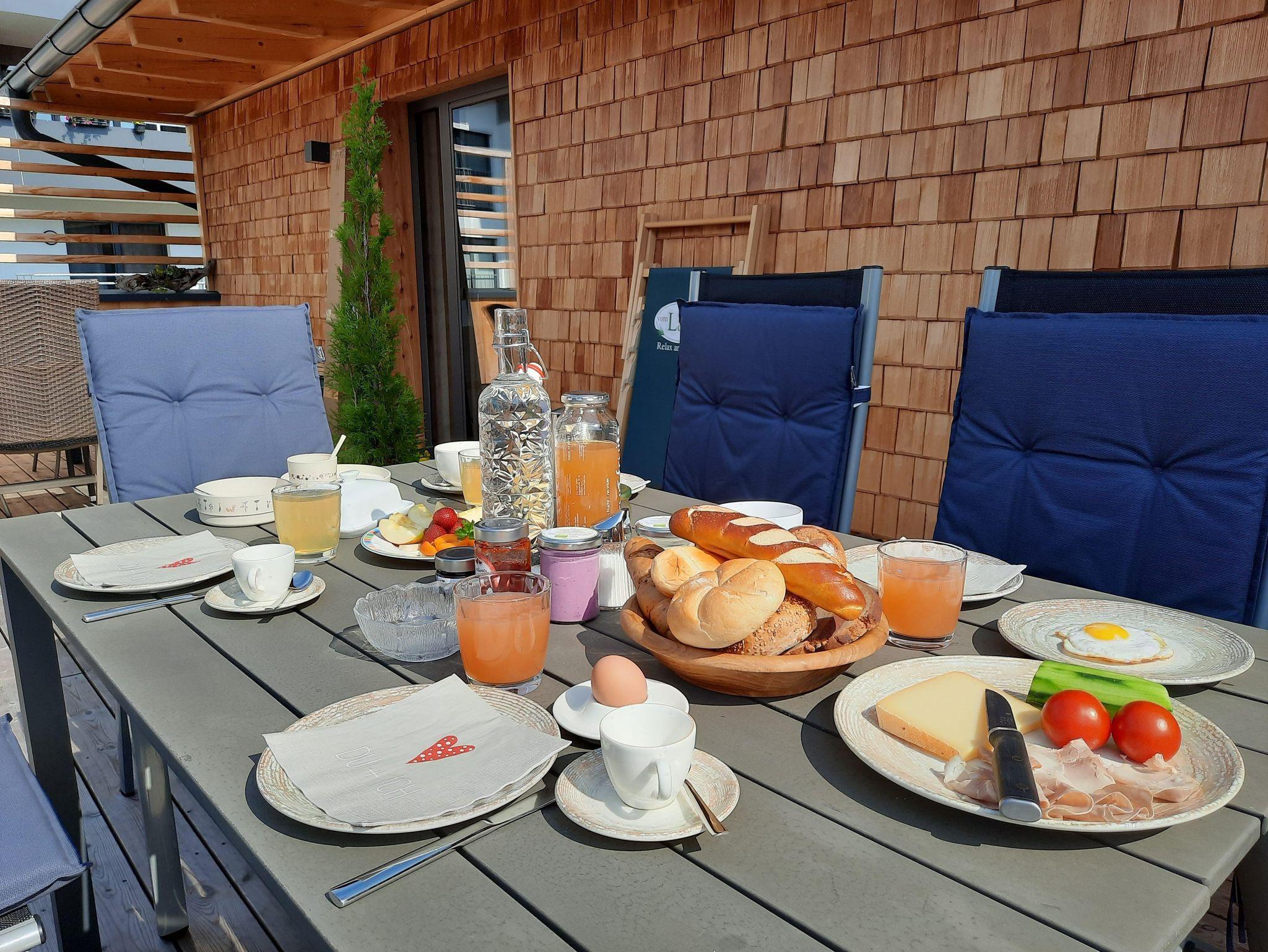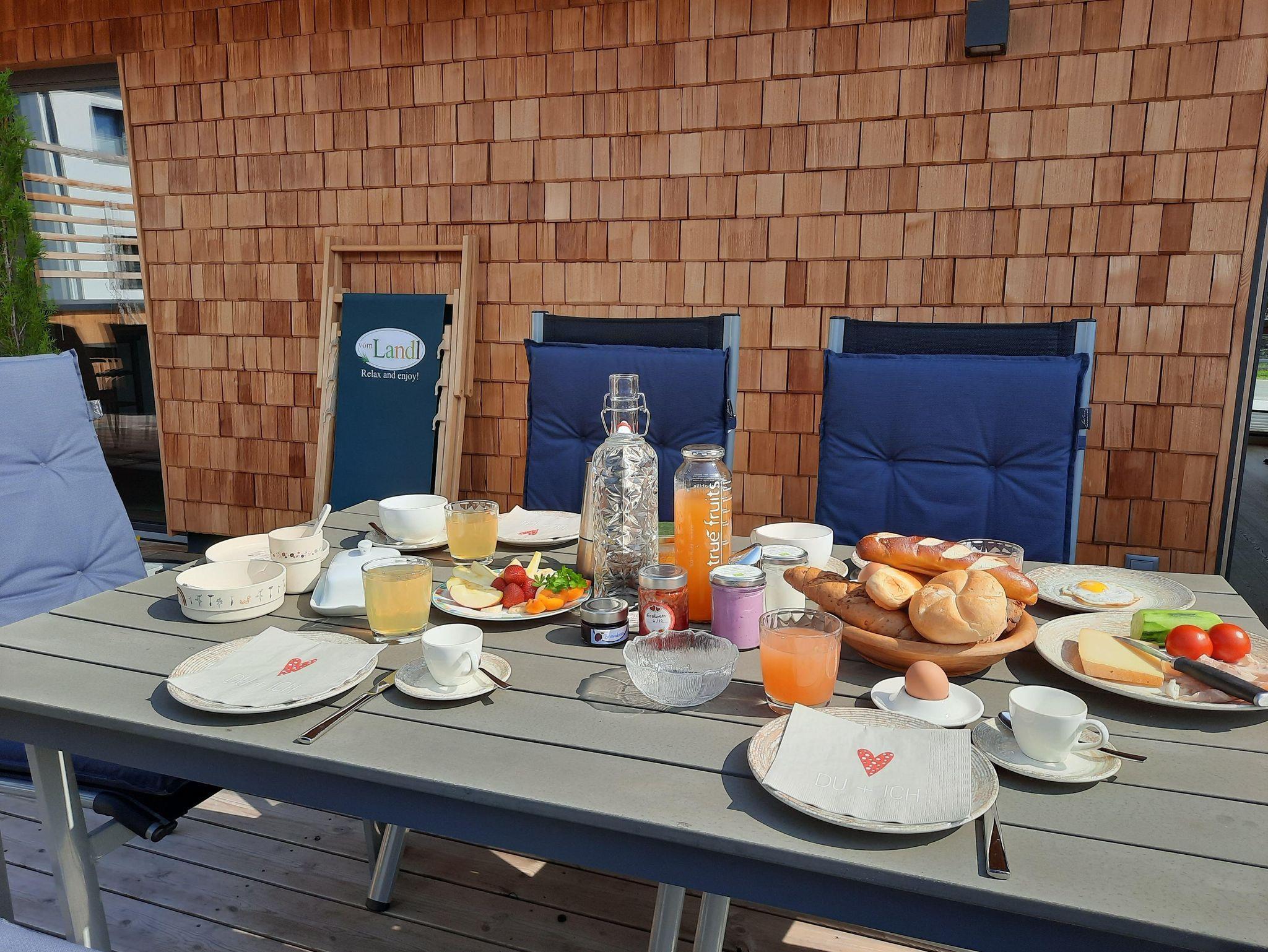 Die naturbelassene Fichtenholzdecke und ein gemütliches Ecksofa aus Naturleinen laden zum Chillen und Genießen des Ausblicks ein. Panoramafenster auf die Leoganger Steinberge. Eigene Sonnenterrasse mit Esstisch und Stühlen mit Blick auf die sanften Grasberge im Süden und Gartenbereich im Freien mit Liegestühlen.