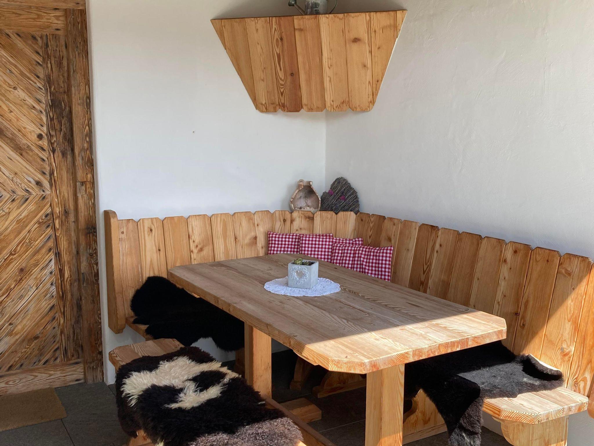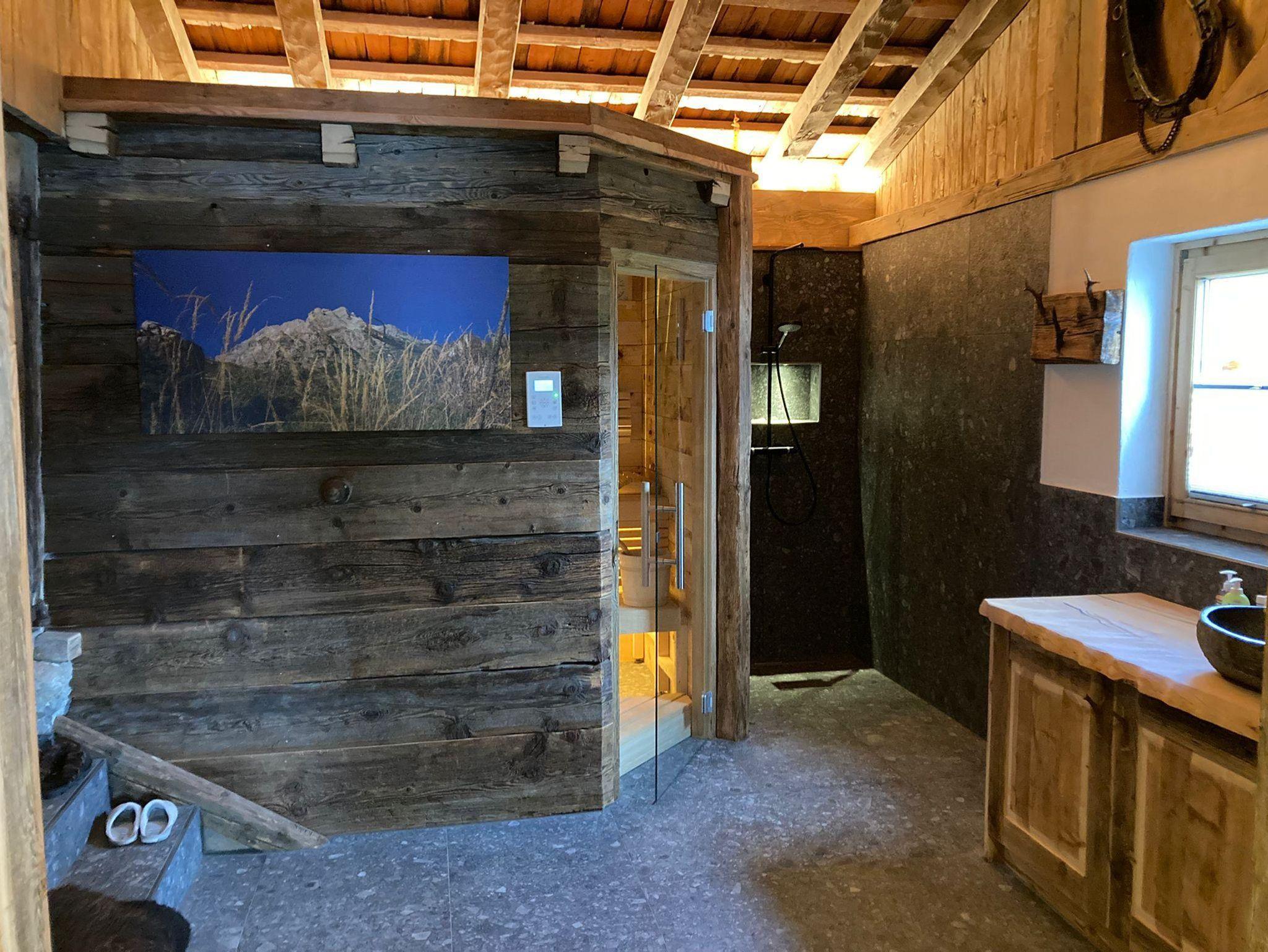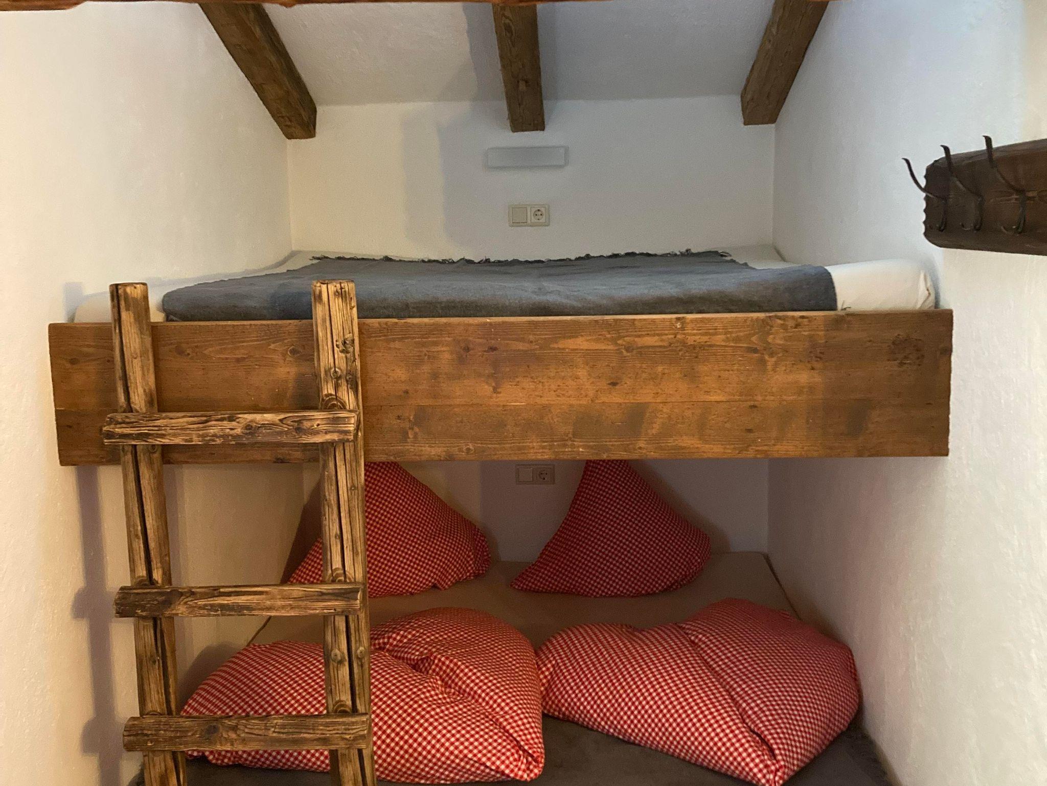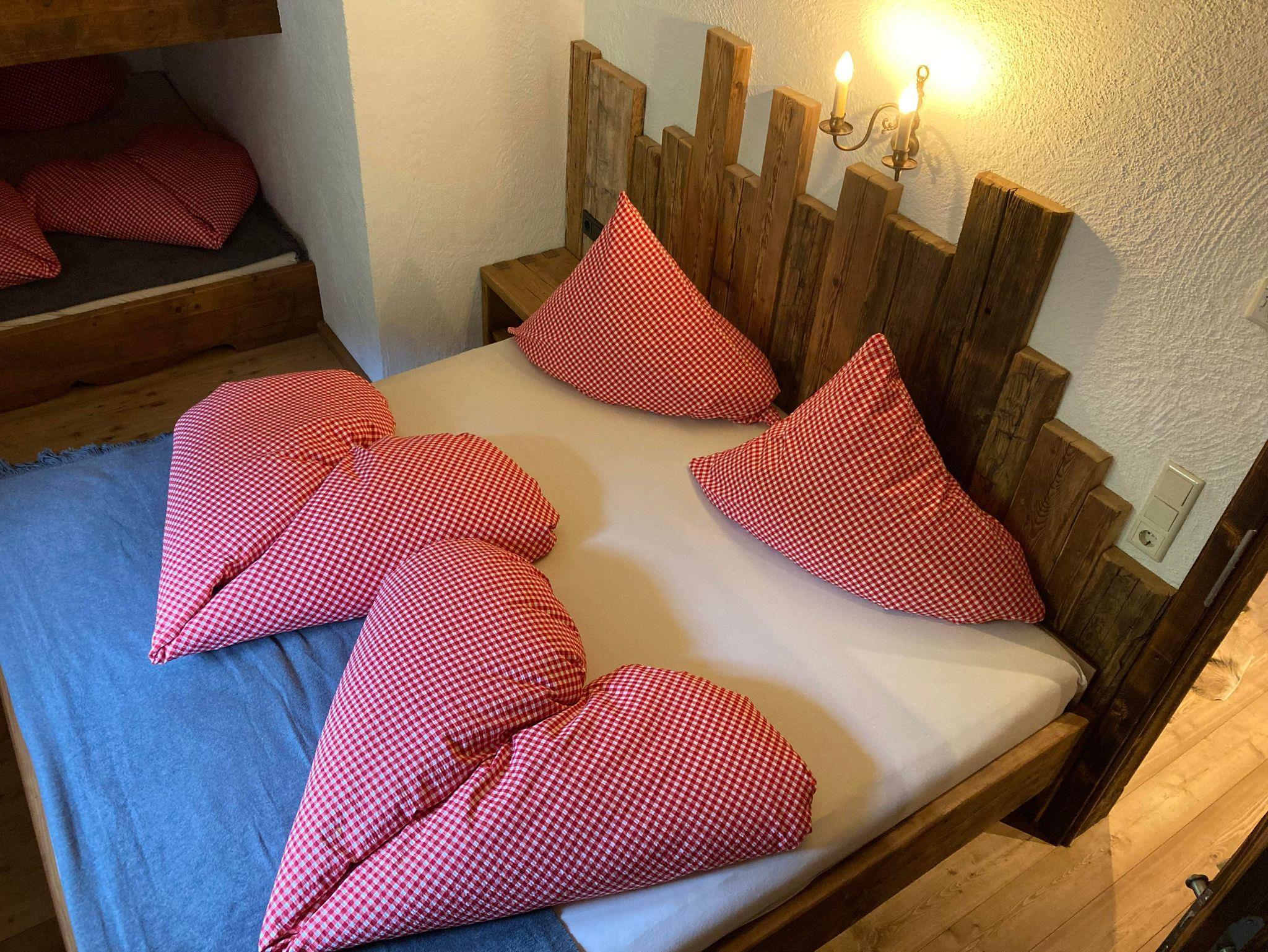 Das Almchalet bietet Platz für bis zu 8 Personen. Es besteht aus zwei Schlafzimmern, beide mit Doppelbett. Eines davon verfügt zusätzlich über ein Etagenbett für 4 Personen. Eine Küche mit Geschirrspüler und Herd sowie ein Wohnraum mit Kachelofen und Couch sind ebenfalls vorhanden. Das Highlight bietet der eigene Saunabereich mit seperater Dusche und WC.