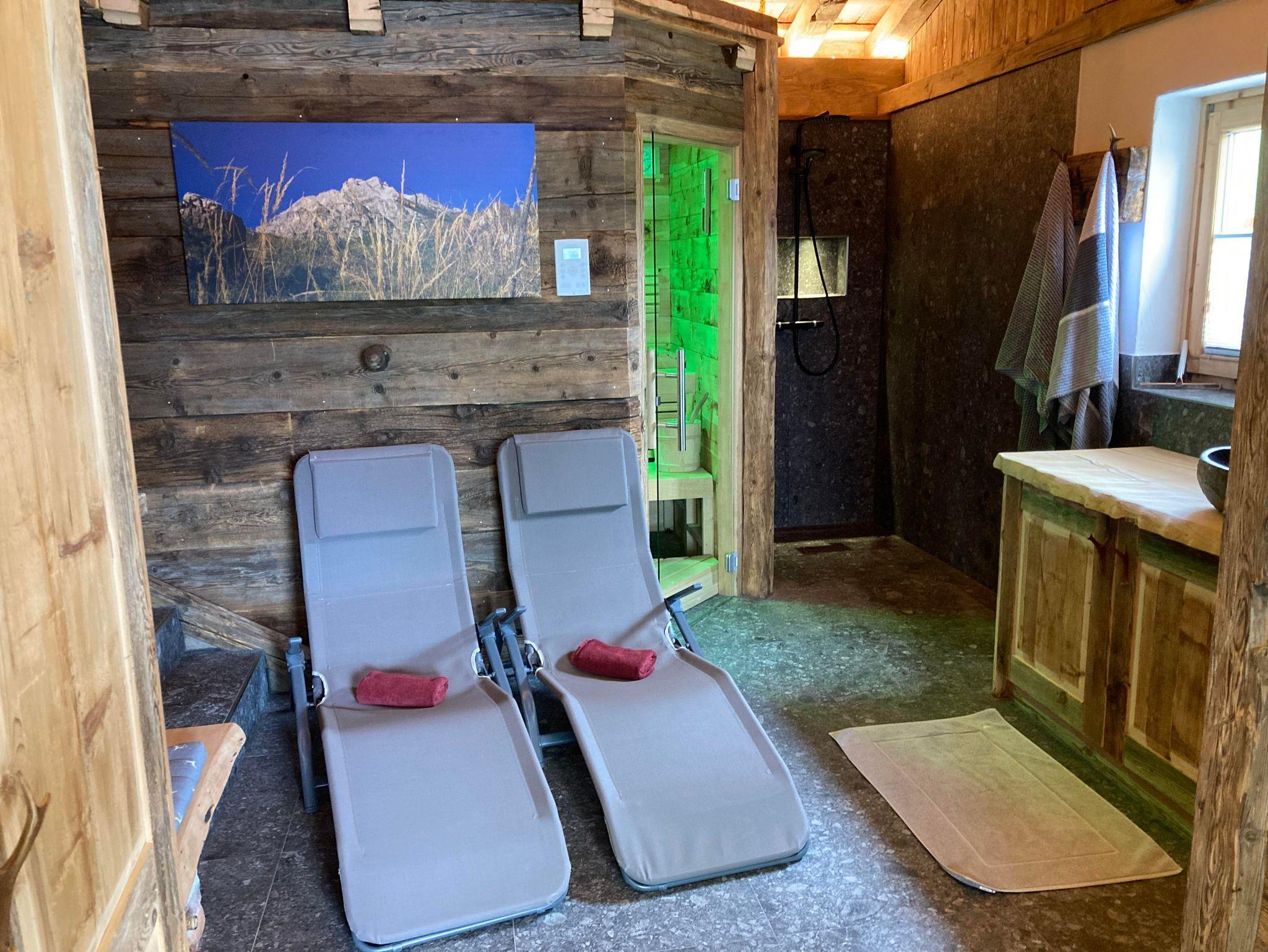 Nach einem aktiven Tag in den Bergen können Sie in die wohltuende Wärme der Sauna eintauchen oder es sich auf der Terrasse mit Liegestühlen gemütlich machen. Für Familien bieten wir ein Gitterbett / Babybett an und auch Haustiere (Aufpreis) sind willkommen, damit niemand ausgeschlossen wird.