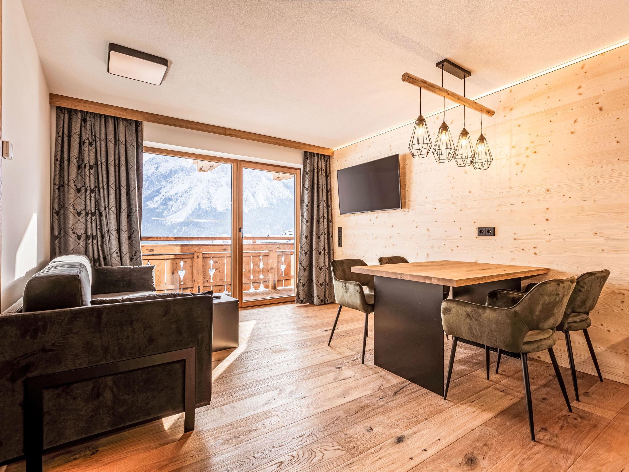 Lermoos: Located at the foot of the Zugspitze and on the ski slope, the sunny holiday apartments of the Zugspitz Suites Lermoos promise exclusive holiday moments in Tyrol cosy, comfortable apartment block "Zugspitz Suites by Alps Resorts". 100 m from the centre of Lermoos, directly by the skiing area. In the house: sauna, steam room, hot tub, relaxation room, spa area. Parking at the house. Supermarket 600 m, bathing lake "Heiterwangersee" 15 km. Golf course (18 hole) 2.4 km, skisport facilities 1 km, ski rental 1 km, ski school 1 km, cross country ski track 1 km. Nearby attractions: Garmisch Partenkirchen 20 km. Well-known ski regions can easily be reached: Zugspitz Arena, Grubigsteinbahn 1 km. Well-known lakes can easily be reached: Heiterwangersee 15 km. Hiking paths: Zugspitze, Zugspitzarena. The photo is just an example.