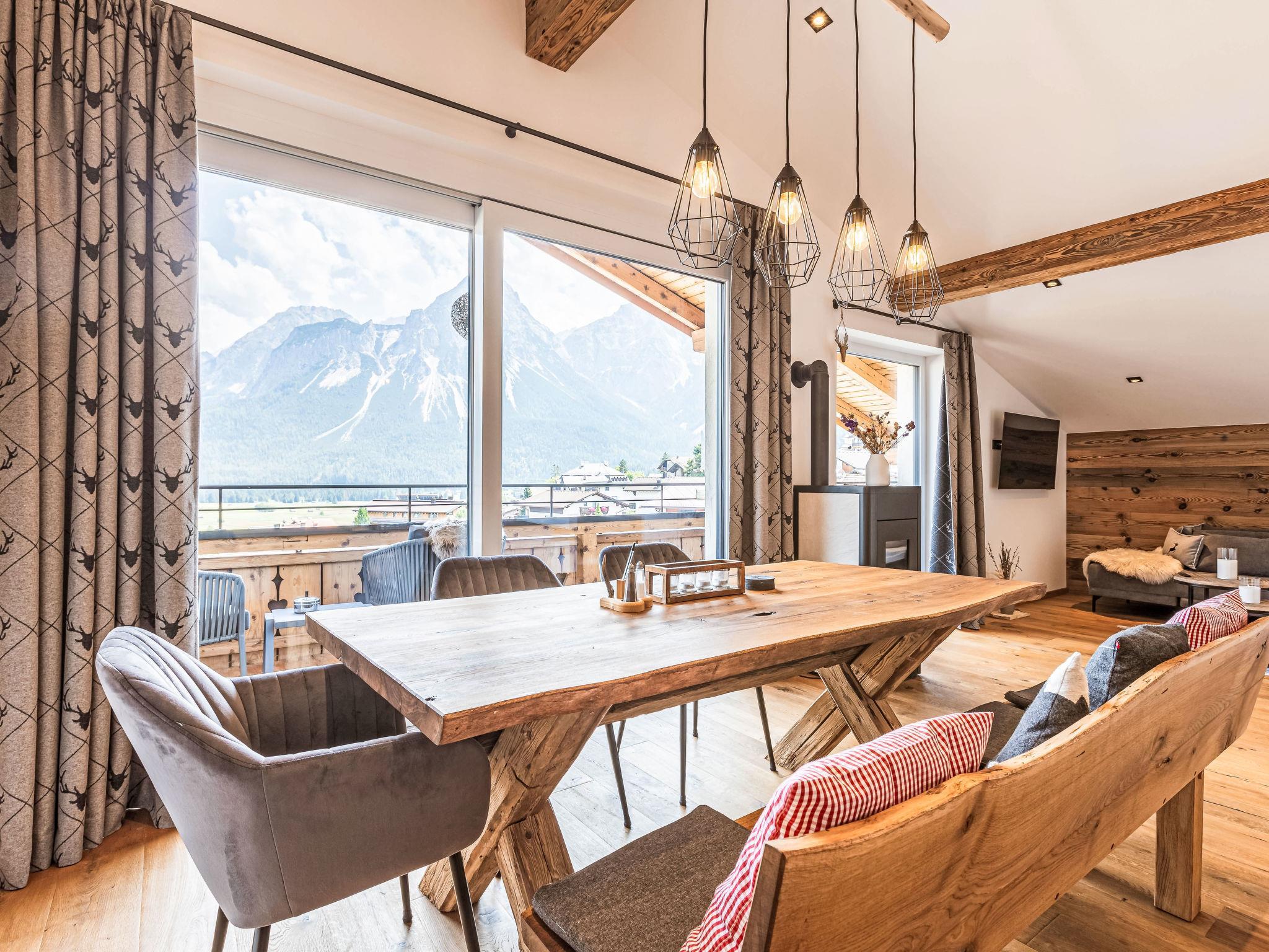 Lermoos: Located at the foot of the Zugspitze and on the ski slope, the sunny holiday apartments of the Zugspitz Suites Lermoos promise exclusive holiday moments in Tyrol cosy, comfortable apartment block "Zugspitz Suites by Alps Resorts". 100 m from the centre of Lermoos, directly by the skiing area. In the house: sauna, steam room, hot tub, relaxation room, spa area. Parking at the house. Supermarket 600 m, bathing lake "Heiterwangersee" 15 km. Golf course (18 hole) 2.4 km, skisport facilities 1 km, ski rental 1 km, ski school 1 km, cross country ski track 1 km. Nearby attractions: Garmisch Partenkirchen 20 km. Well-known ski regions can easily be reached: Zugspitz Arena, Grubigsteinbahn 1 km. Well-known lakes can easily be reached: Heiterwangersee 15 km. Hiking paths: Zugspitze, Zugspitzarena. The photo is just an example.