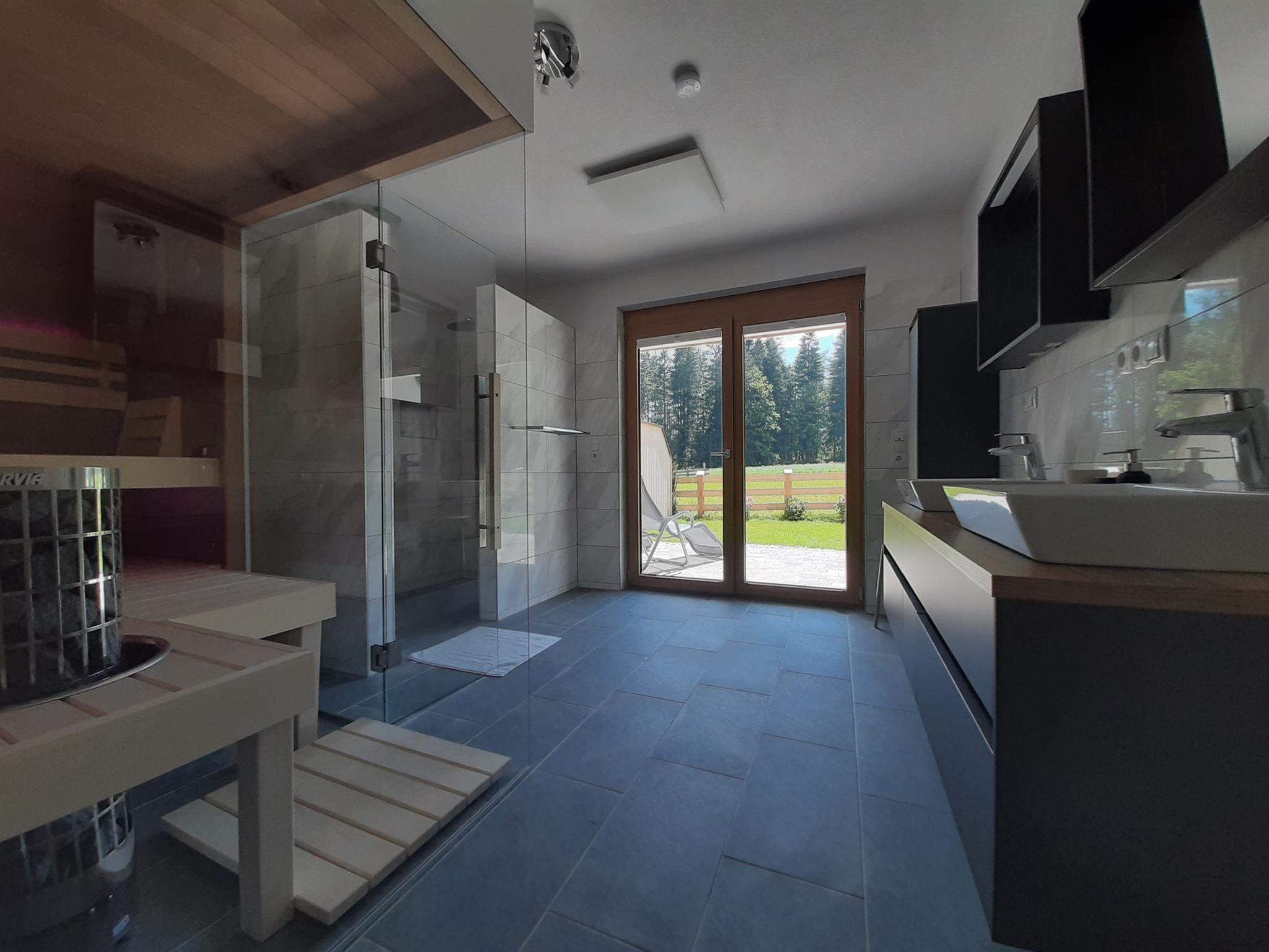 Neben zwei großzügigen Schlafzimmern ist im Erdgeschoss zusätzlich ein separates WC sowie der schöne Wellnessbereich untergebracht. Dieser umfasst neben der privaten Sauna, die nach erlebnisreichen Tagen auf der Piste oder in den Bergen für Entspannung und Wohlbefinden sorgt.