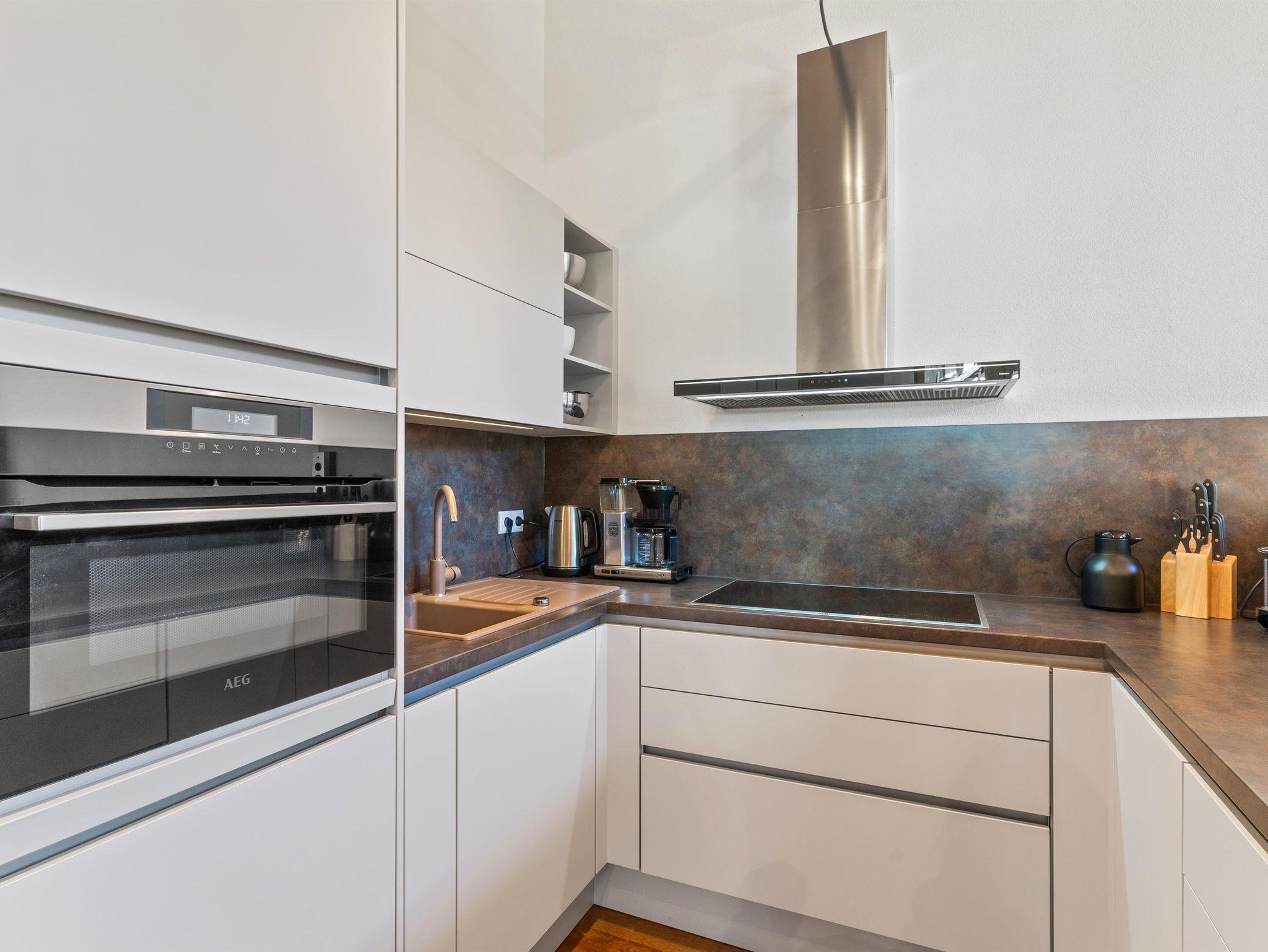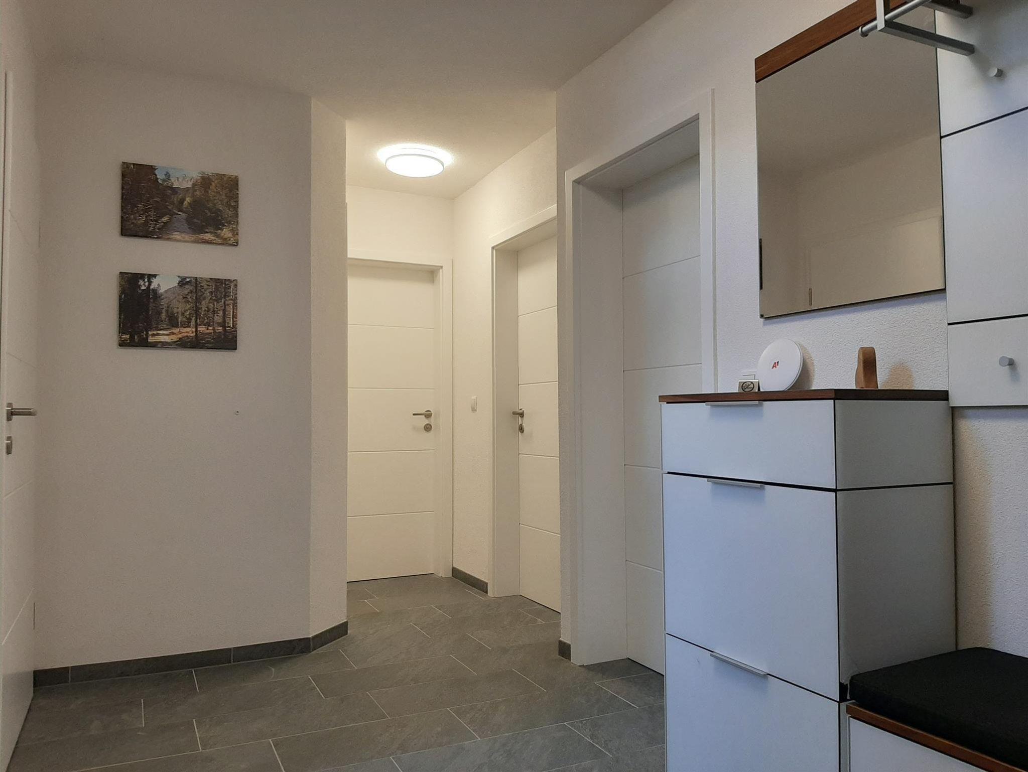 Im Herzstück der Wohnung, befindet sich ein Schlafzimmer für 4 Personen, ein Badezimmer sowie ein geräumiges Wohnzimmer mit voll ausgestatteter Wohnküche. Der Balkon bietet einen wundervollen Ausblick über die angrenzenden Felder.
